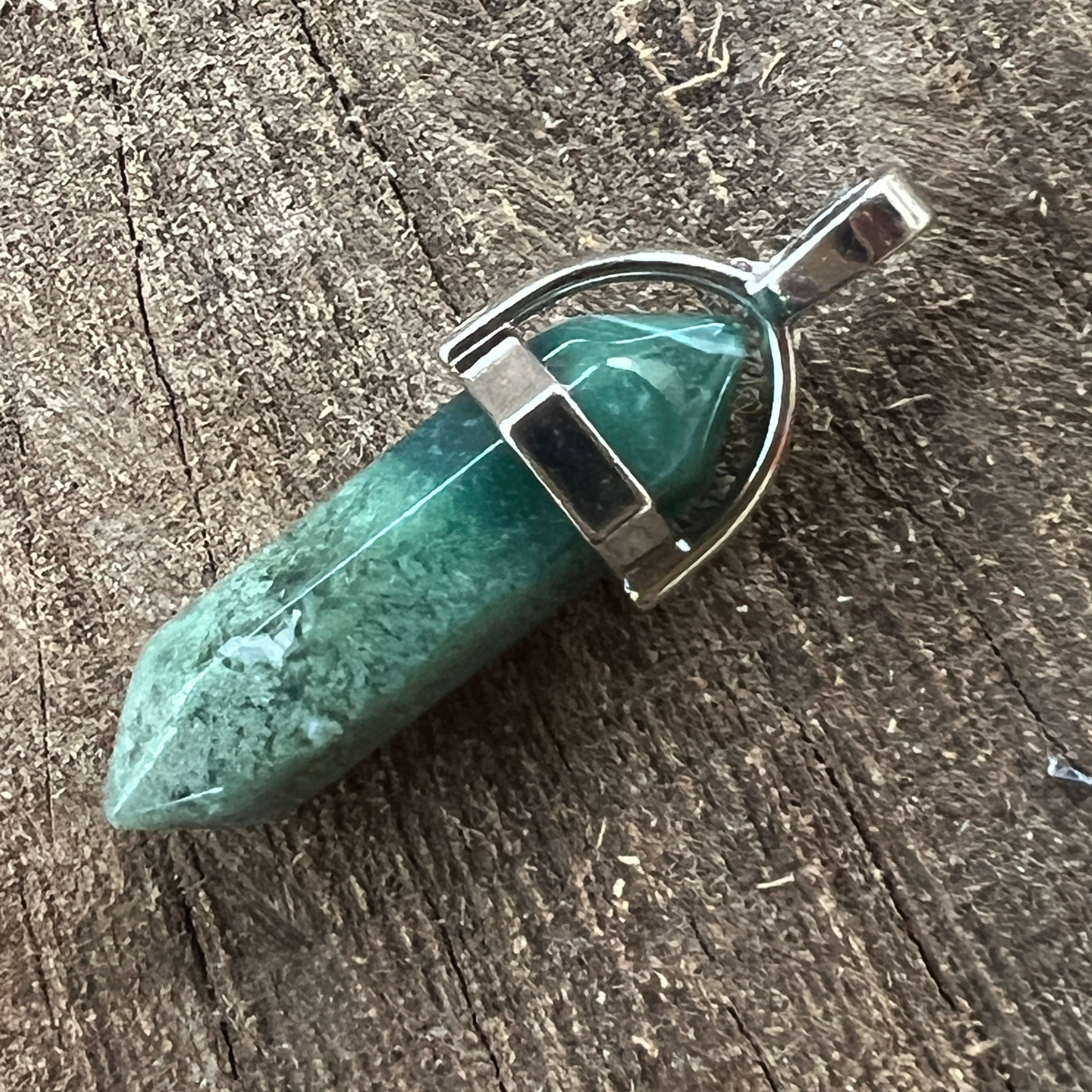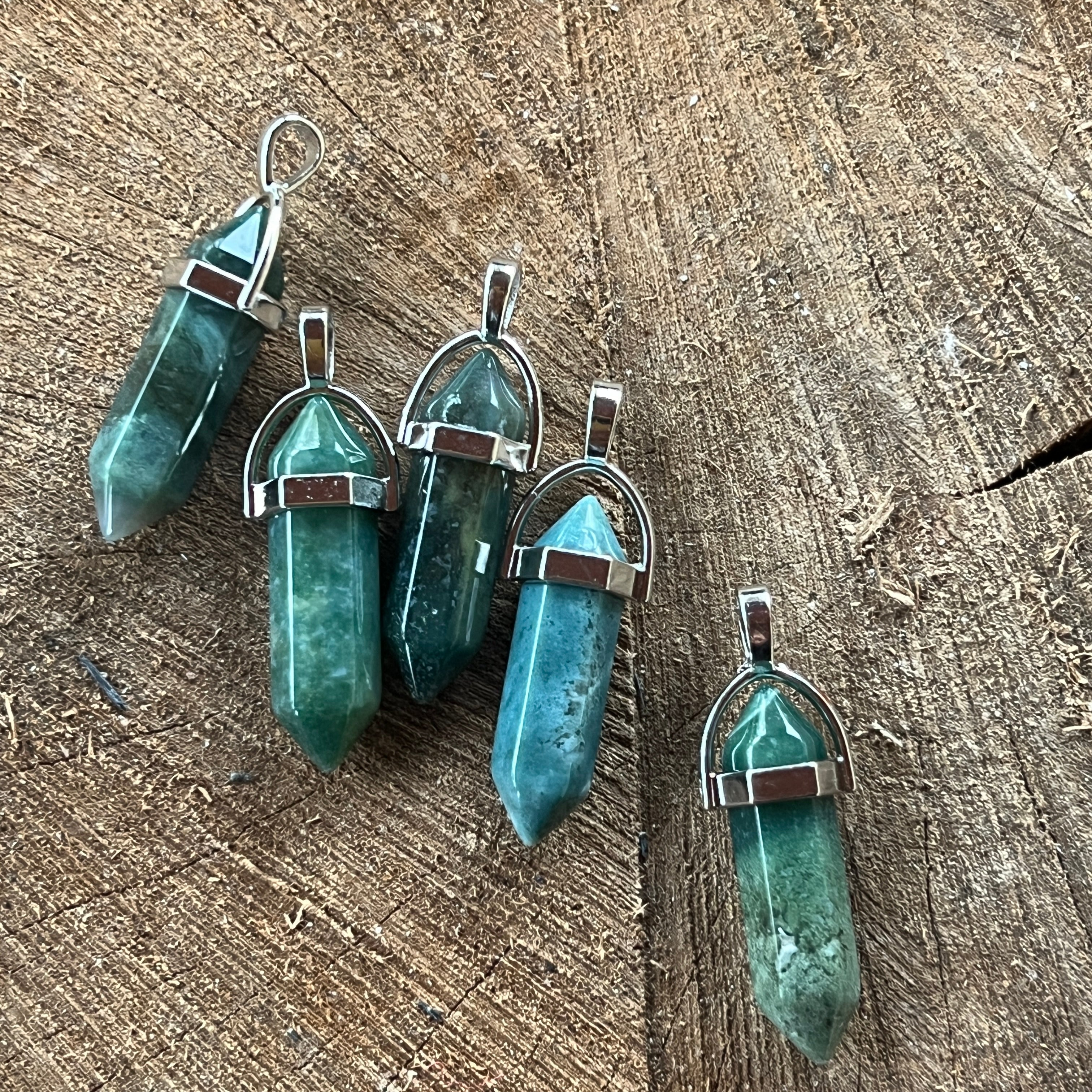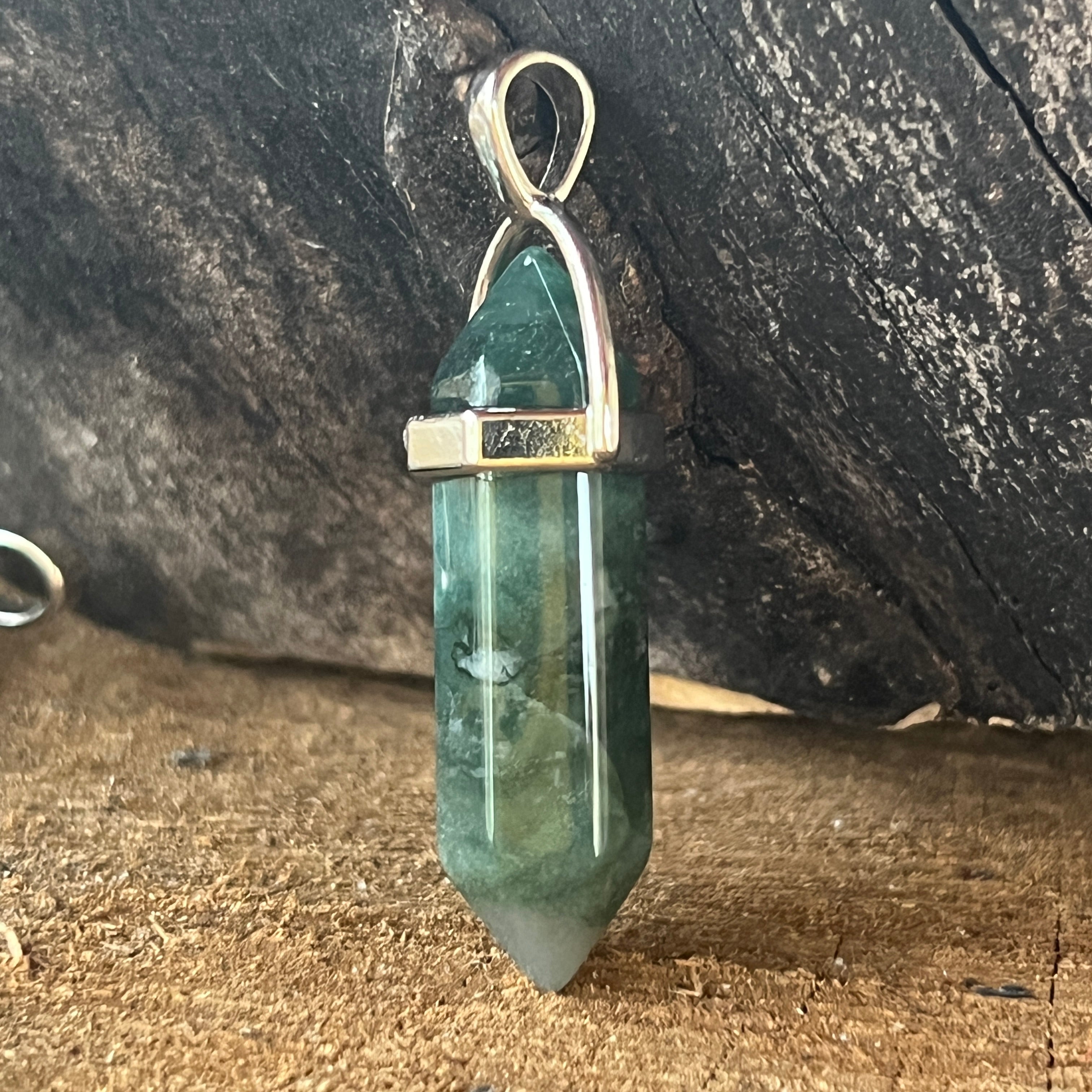 Moss achát medál dupla csúcs vogel, méret: 3 cm