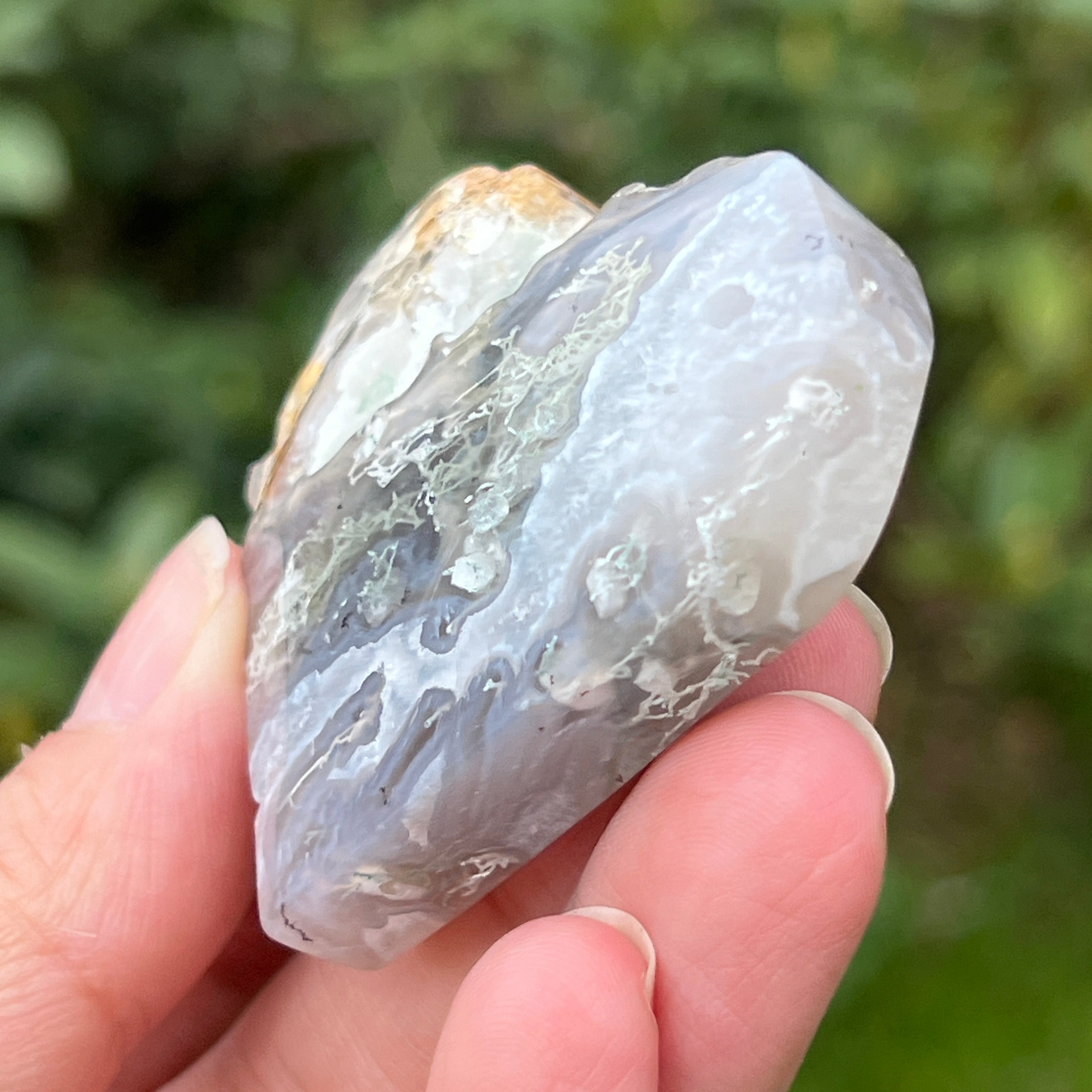 A moha/fa achát sikeresen beilleszthető a ház dekorációjába, a kisugárzó energia a stabilitásé.