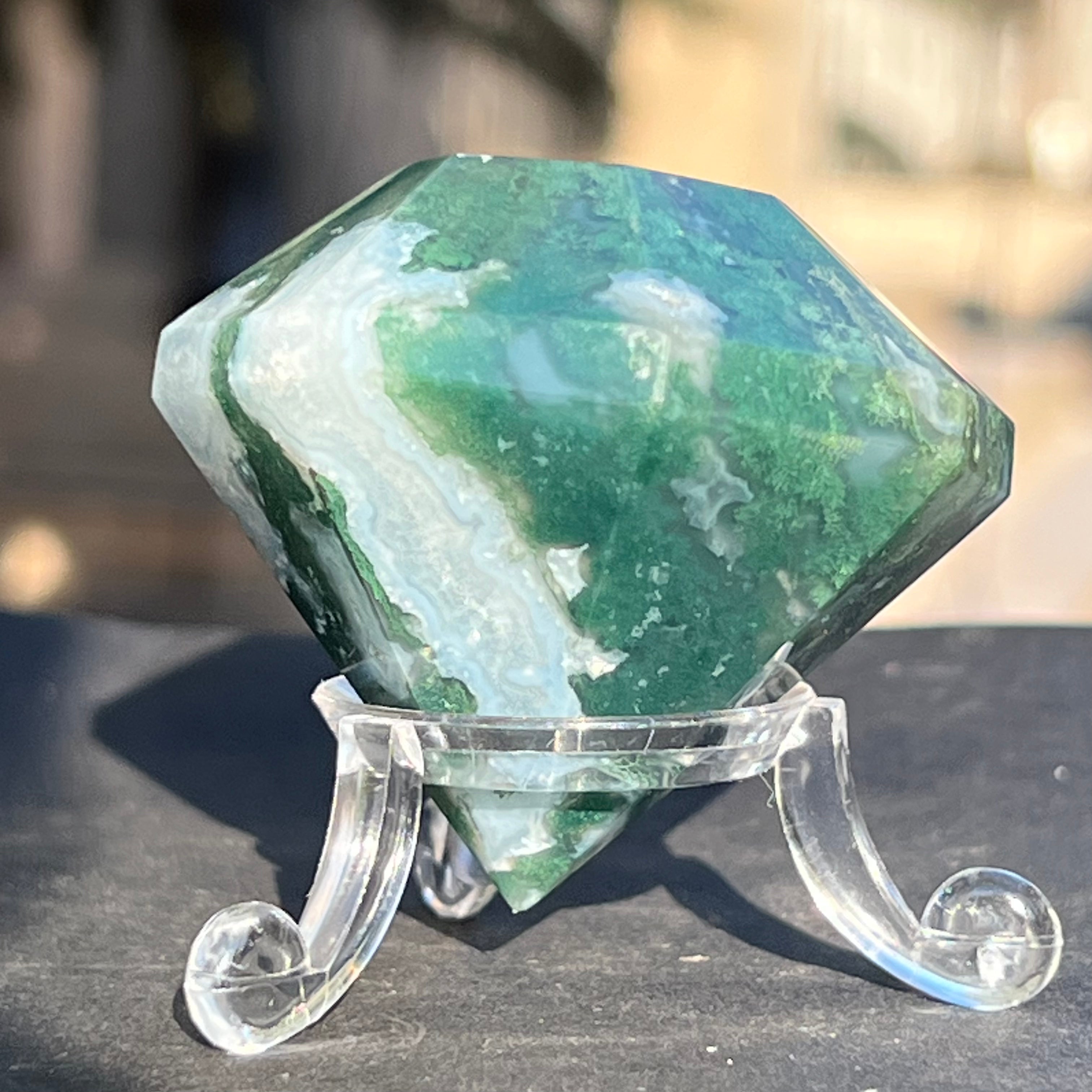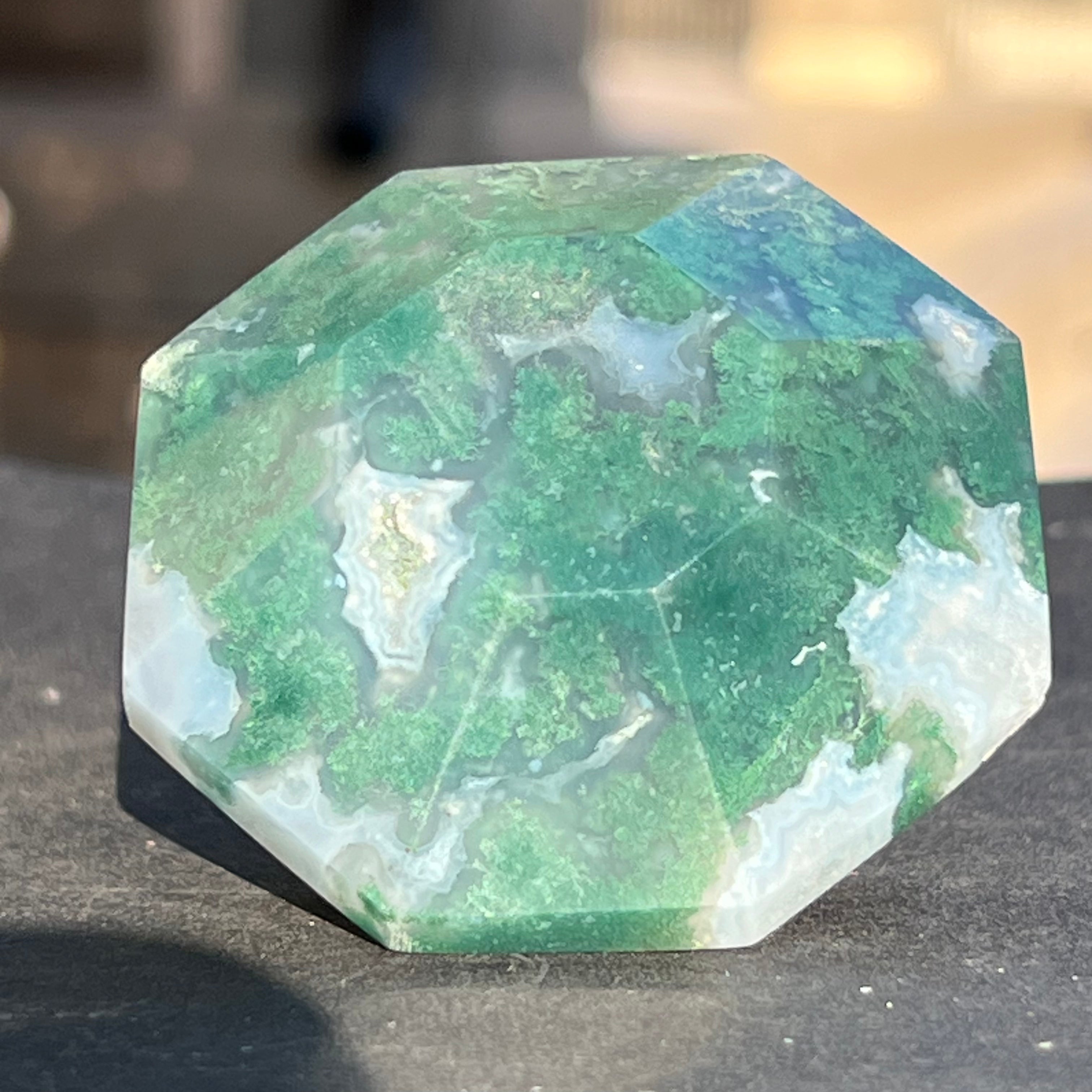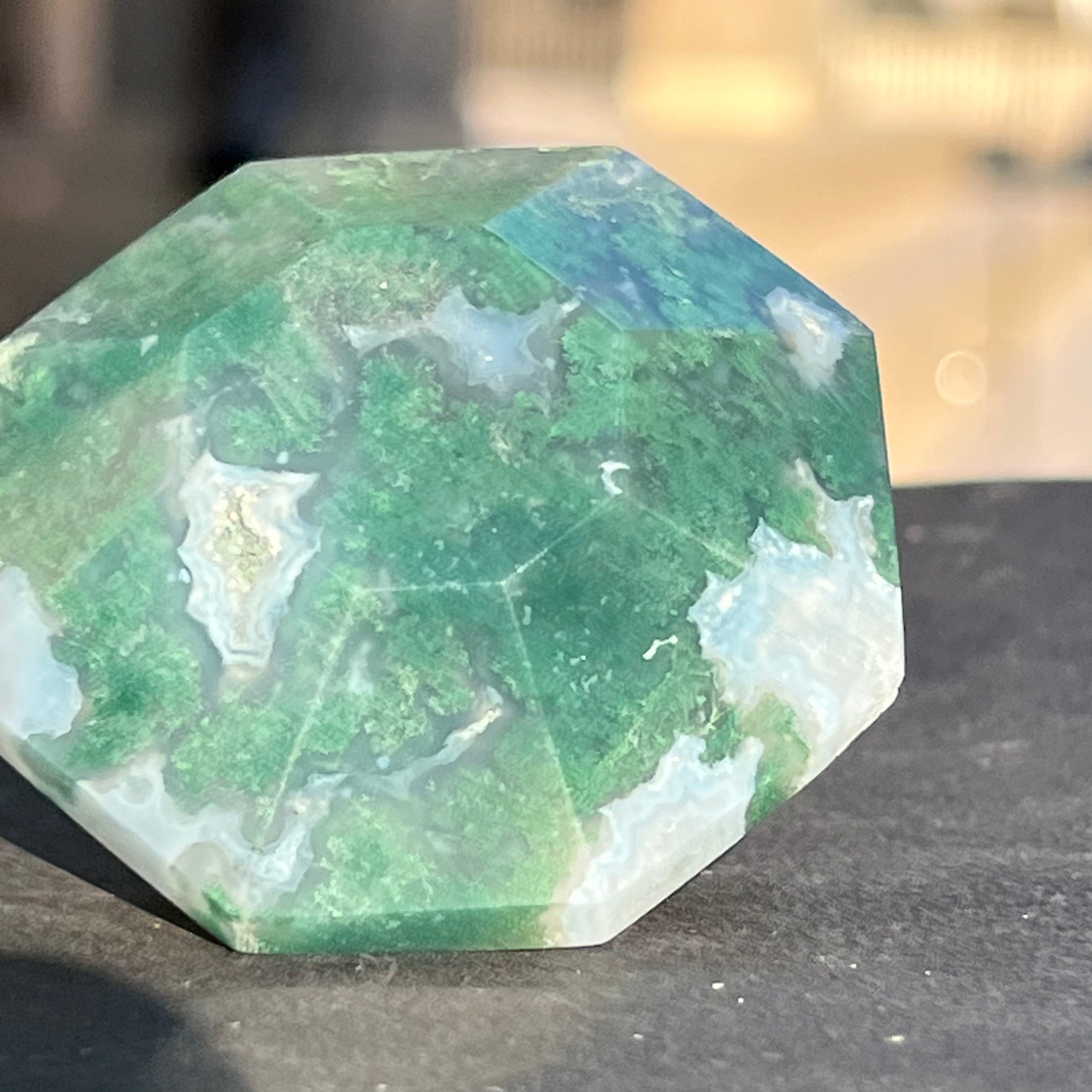 A moha/ágak achát sikeresen beilleszthető az otthon dekorációjába, az általa kibocsátott energia stabilitást sugároz.