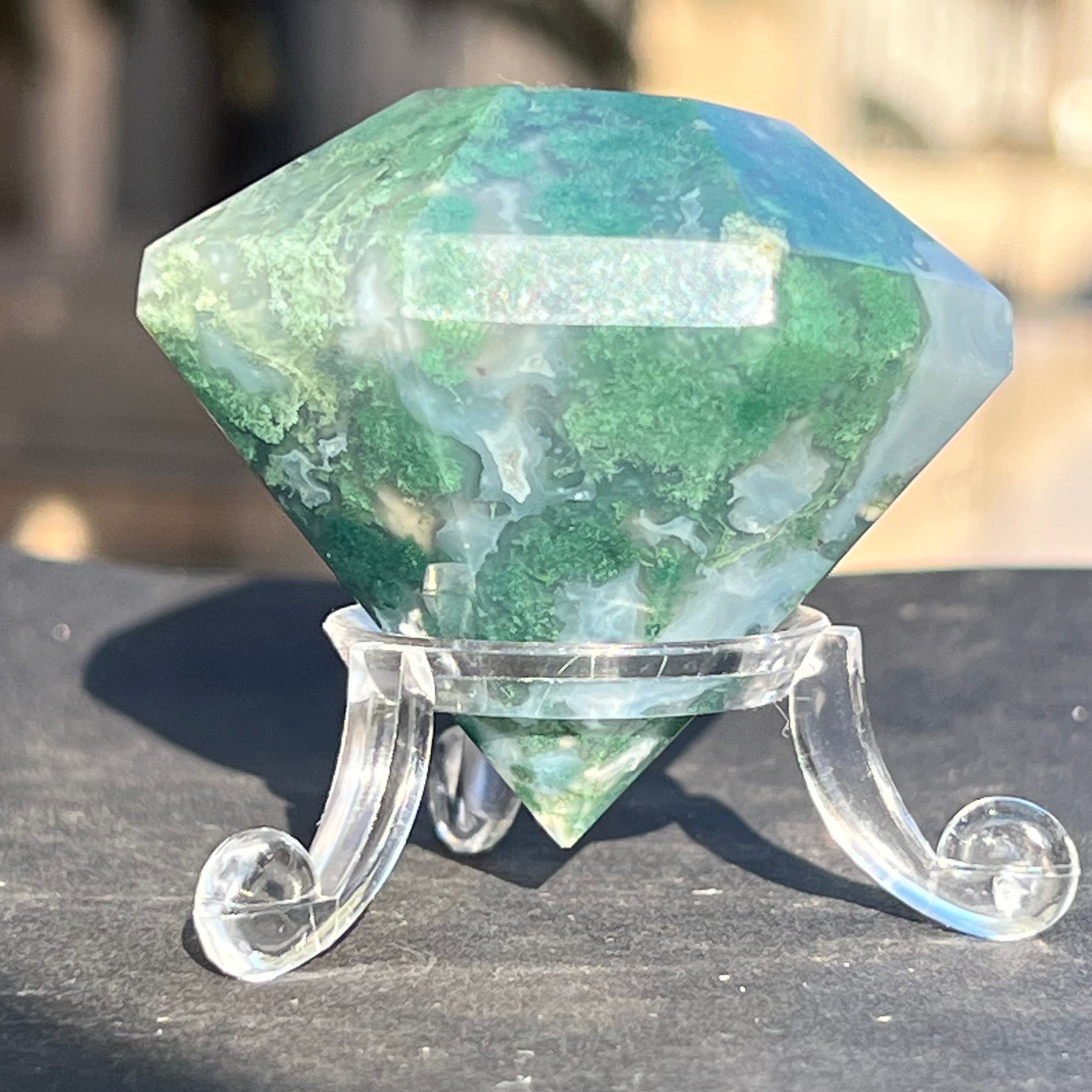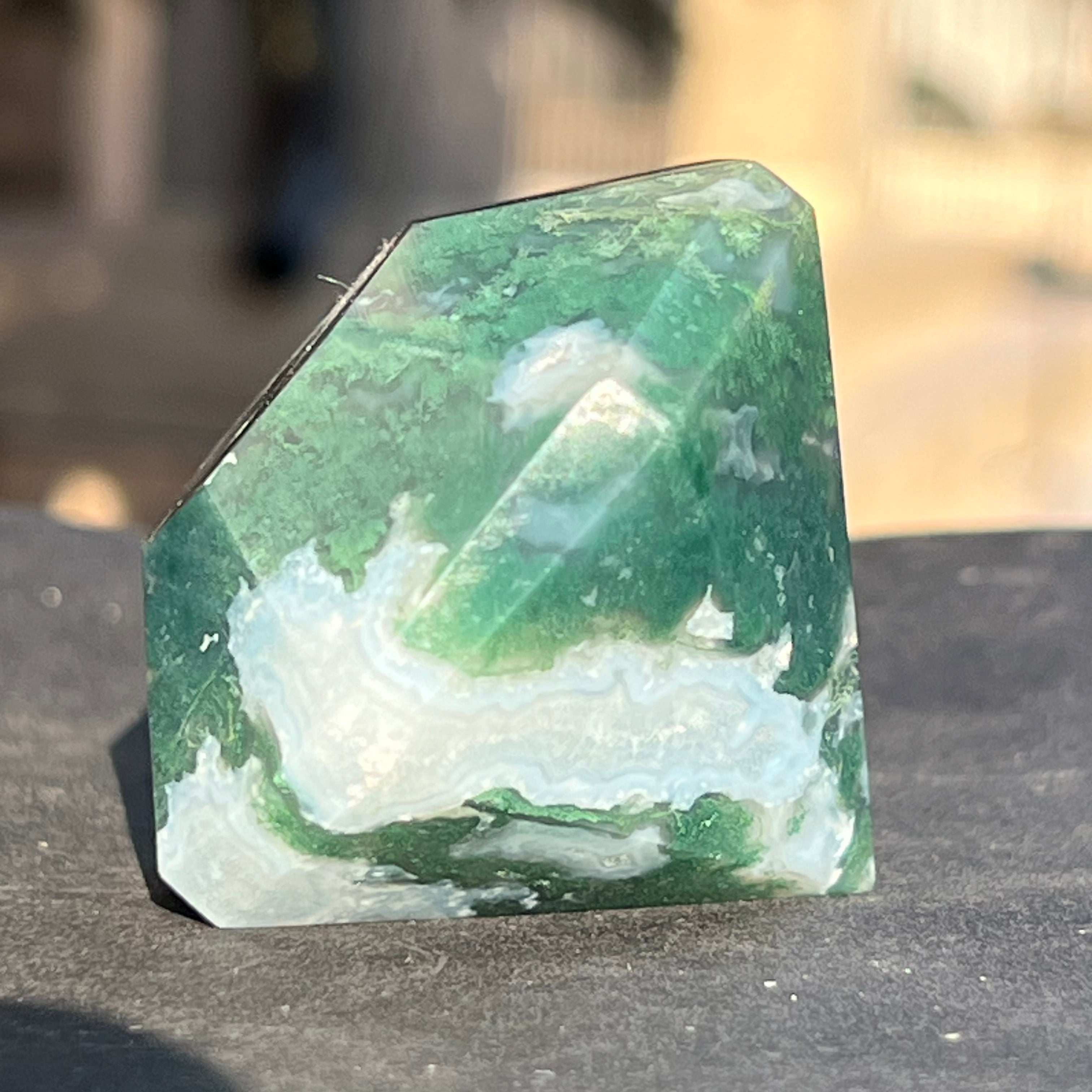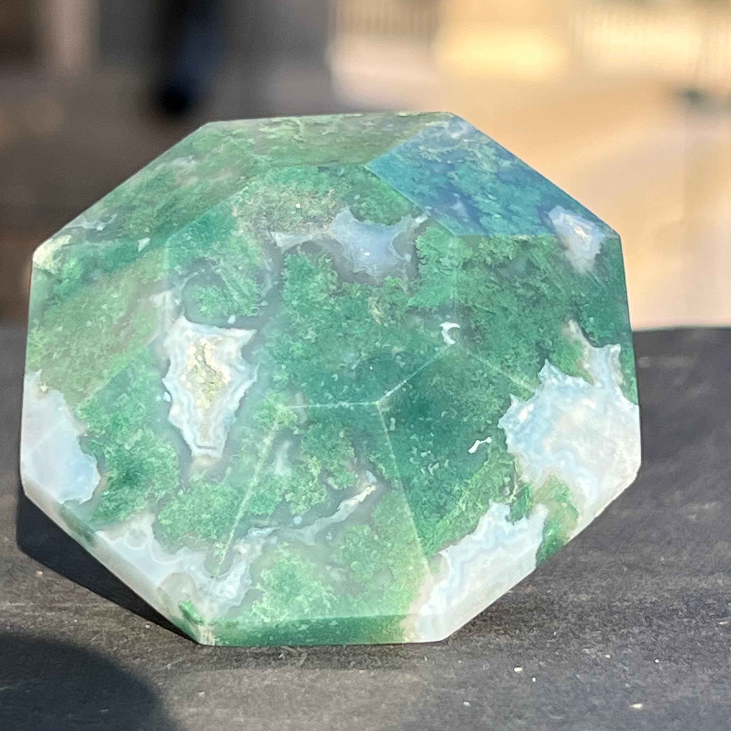 A moha/ágak achát sikeresen beilleszthető az otthon dekorációjába, az általa kibocsátott energia stabilitást sugároz.