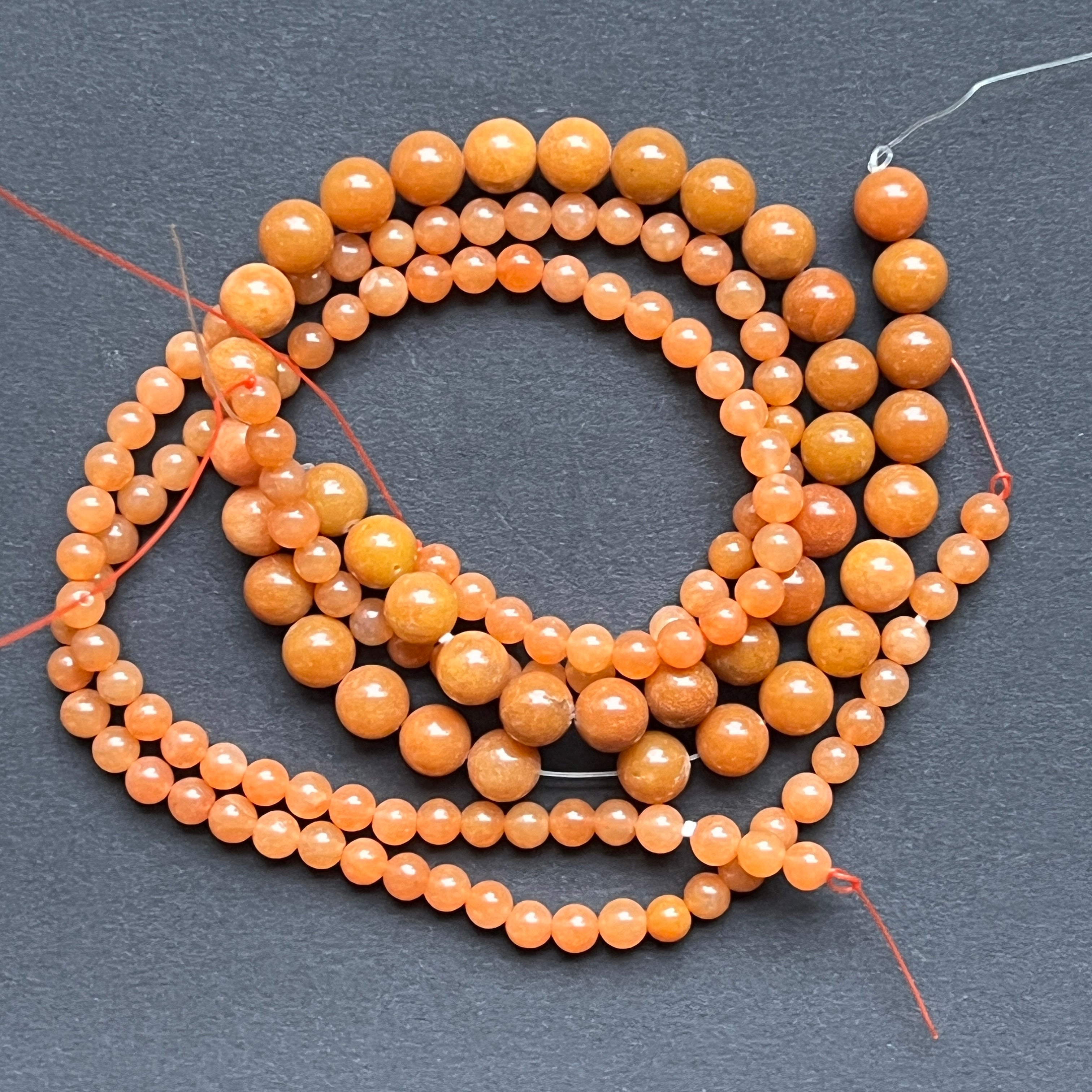 Narancs AVENTURIN füzér, amely természetes gömb alakú gyöngyökből áll, tökéletes nyakláncokhoz, karkötőkhöz vagy egyéb kézműves ékszerekhez.