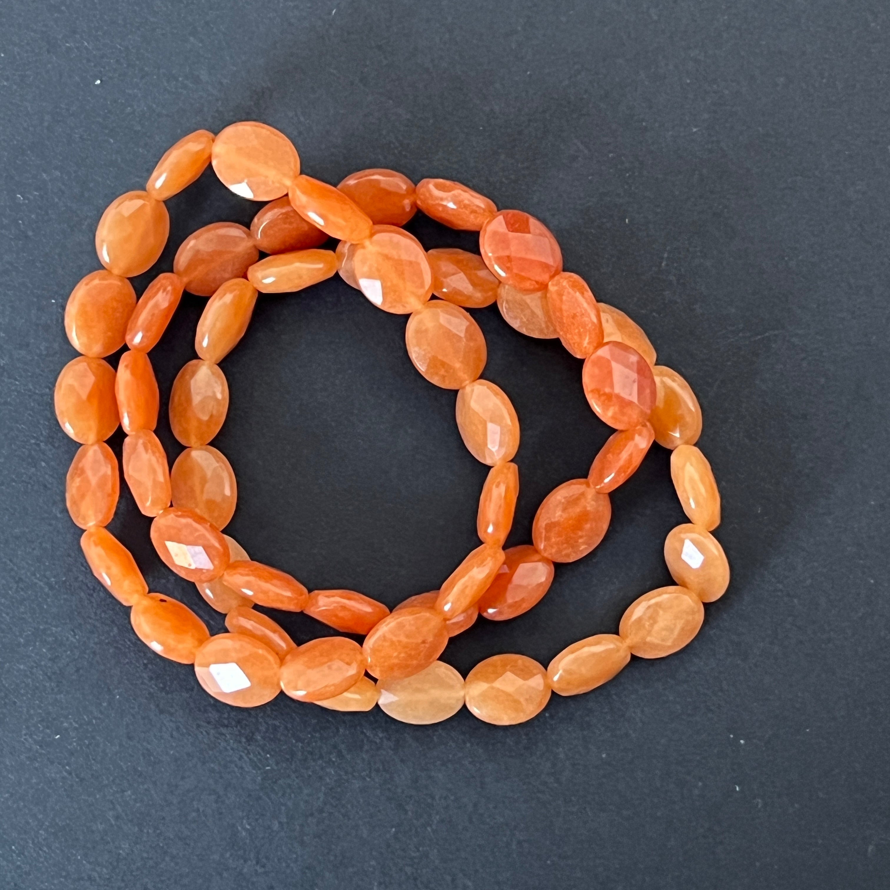 Narancssárga aventurin színű, fazettált karkötő, ovális korong gyöngyökkel 8–9 x 9–10 mm