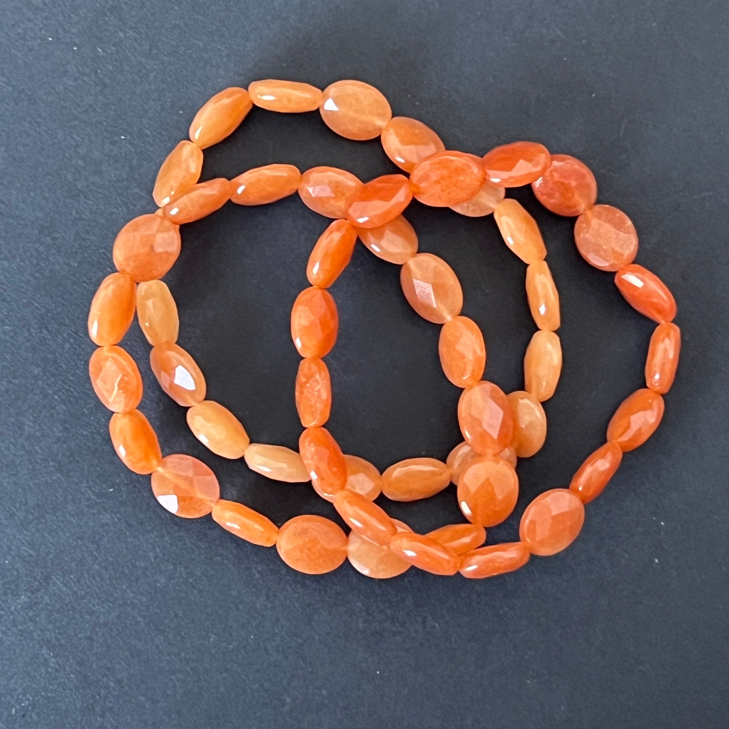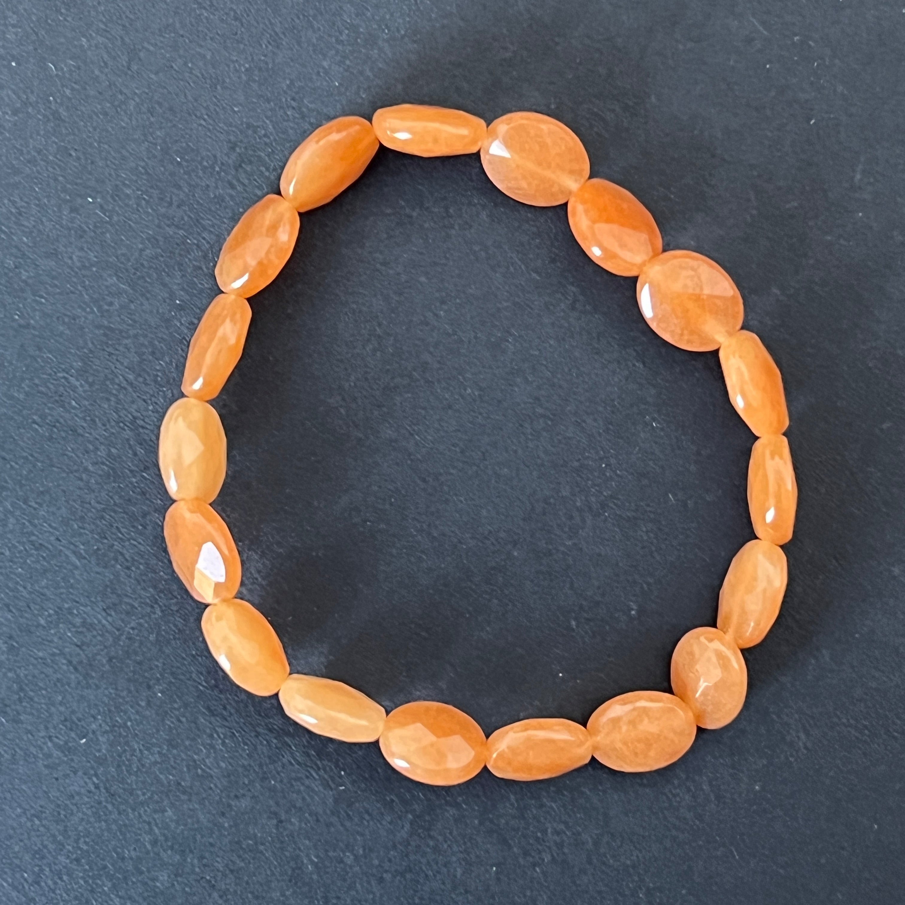 Vélemények - Narancssárga aventurin színű, fazettált karkötő, ovális korong gyöngyökkel 8–9 x 9–10 mm