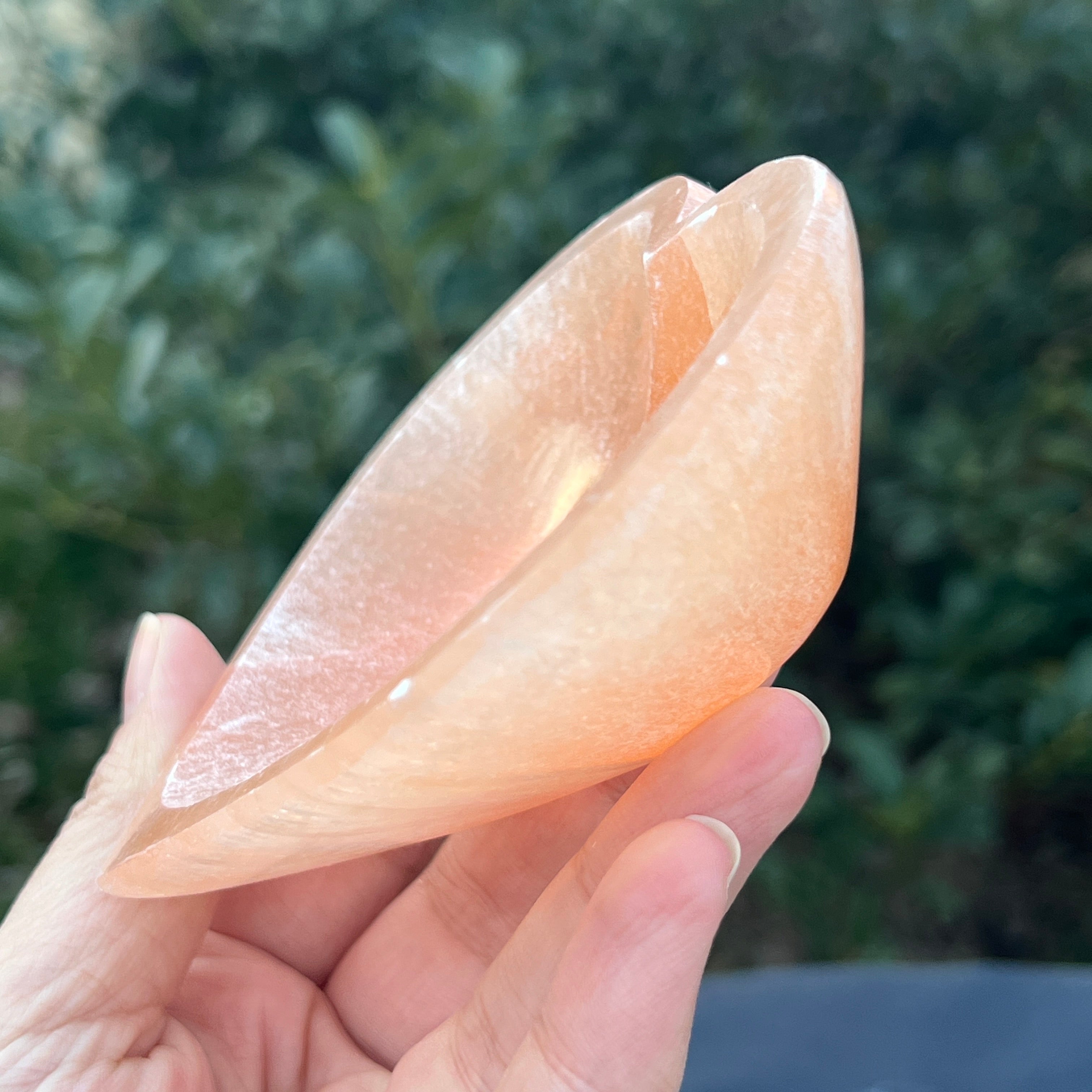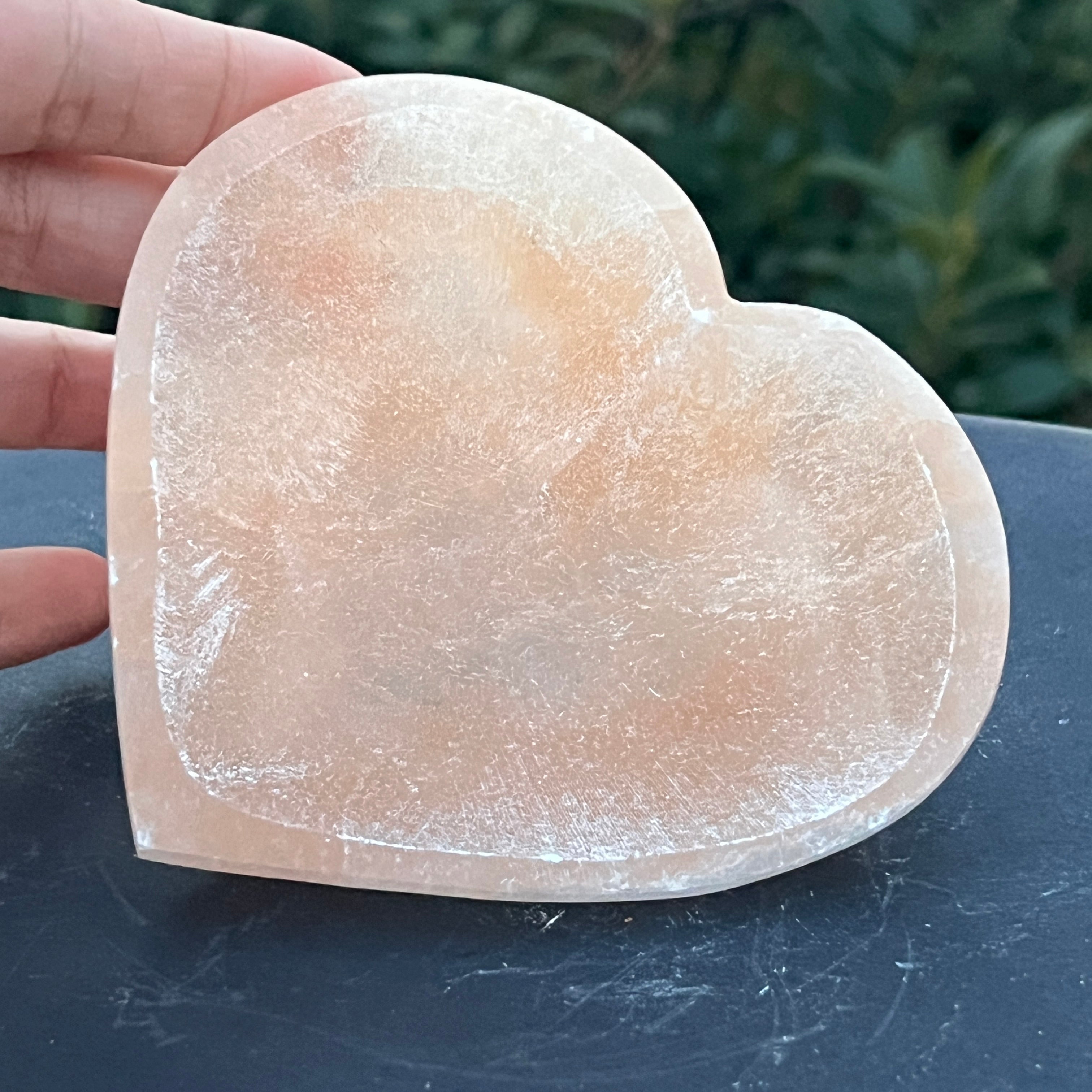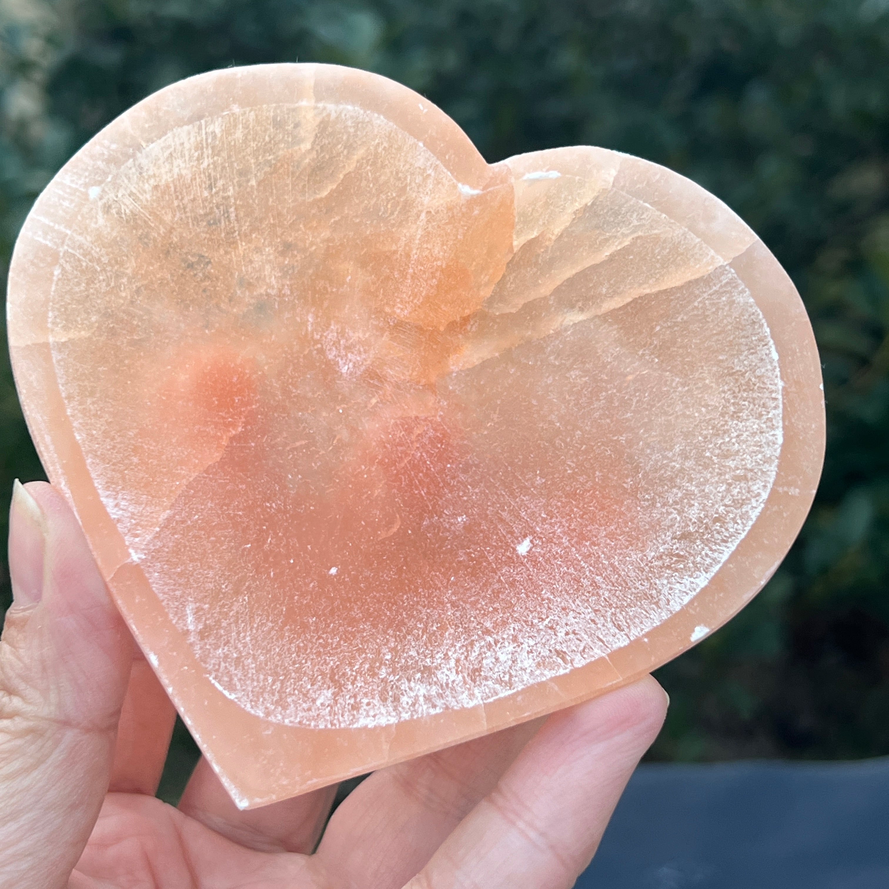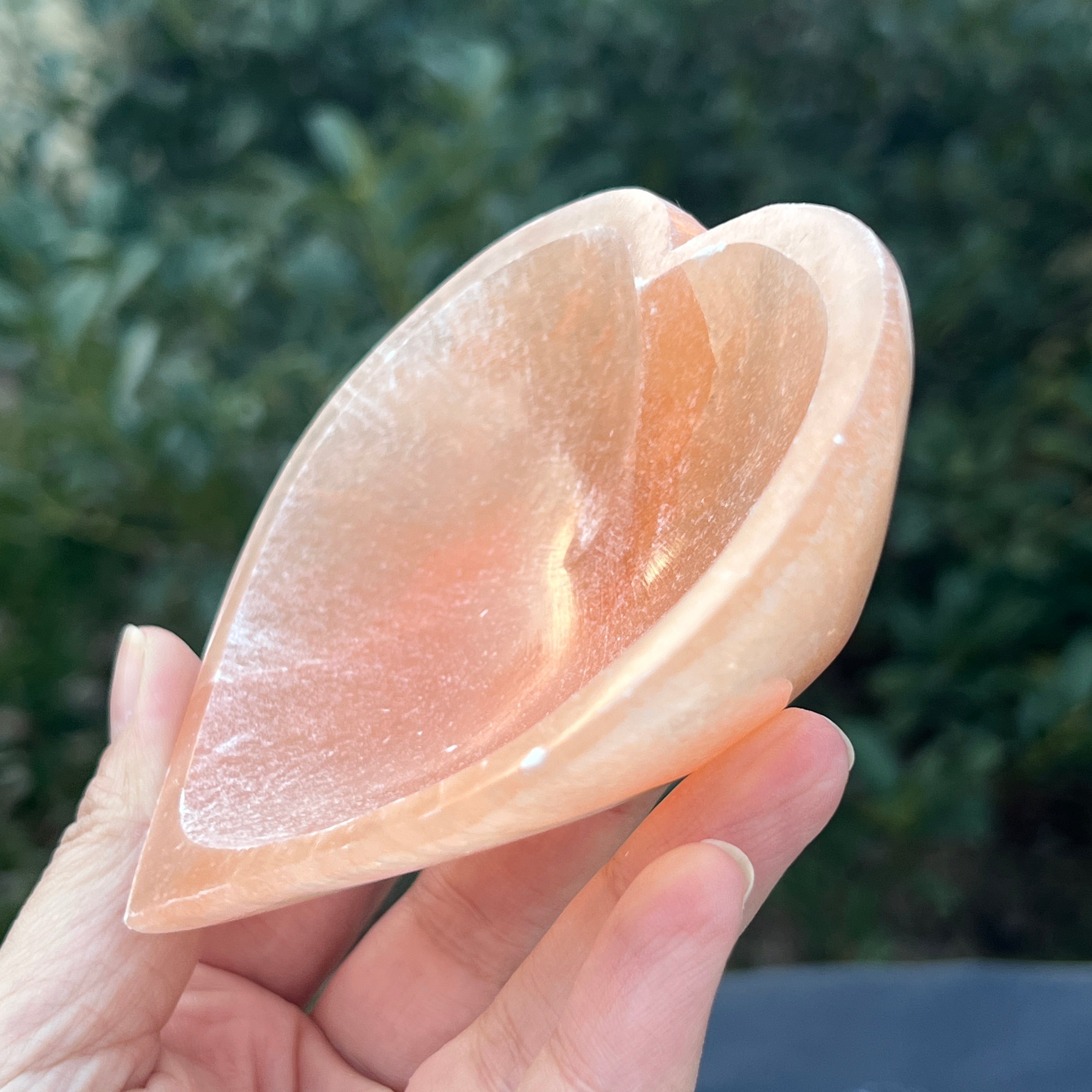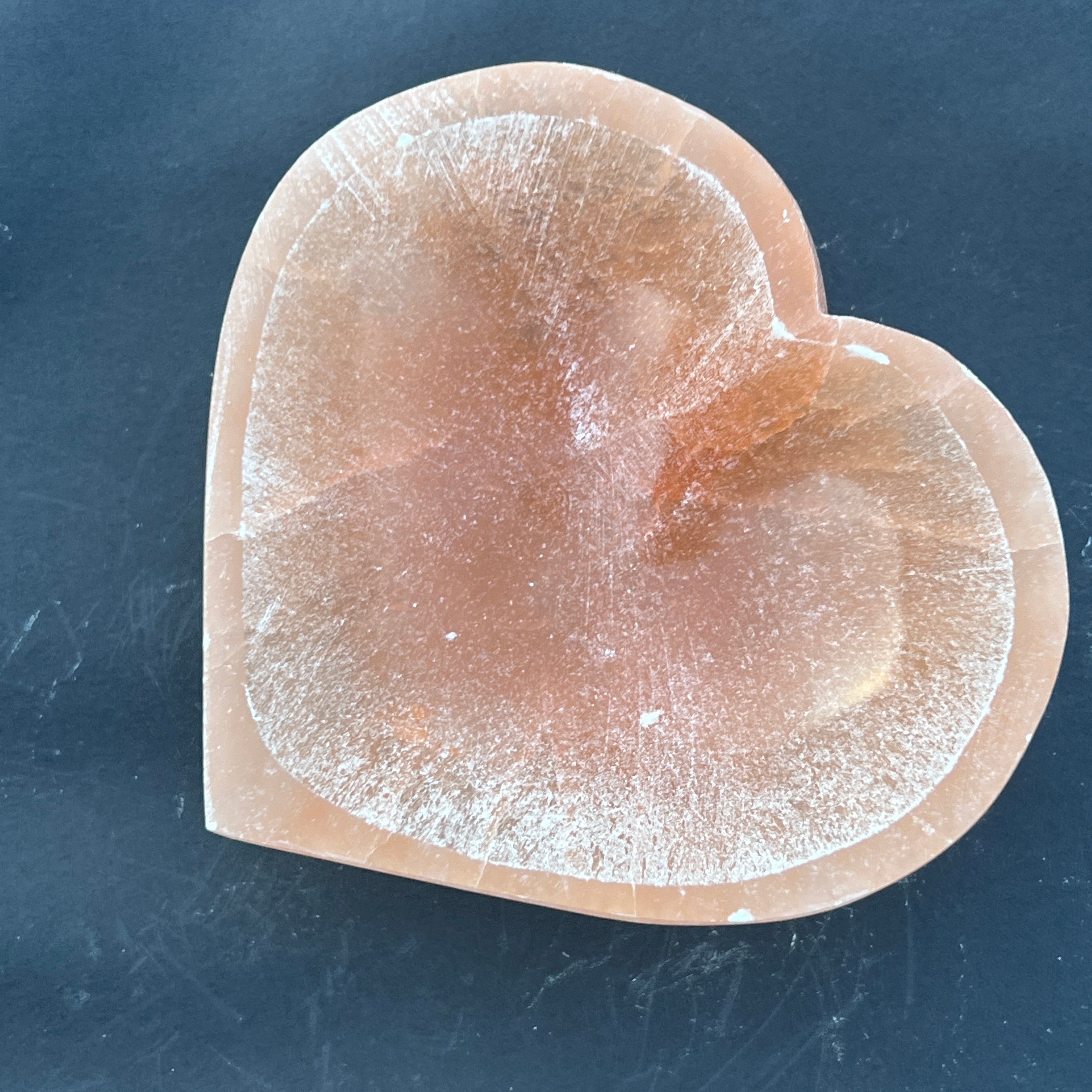 Narancssárga szelenit szív tál, mérete: 10 cm