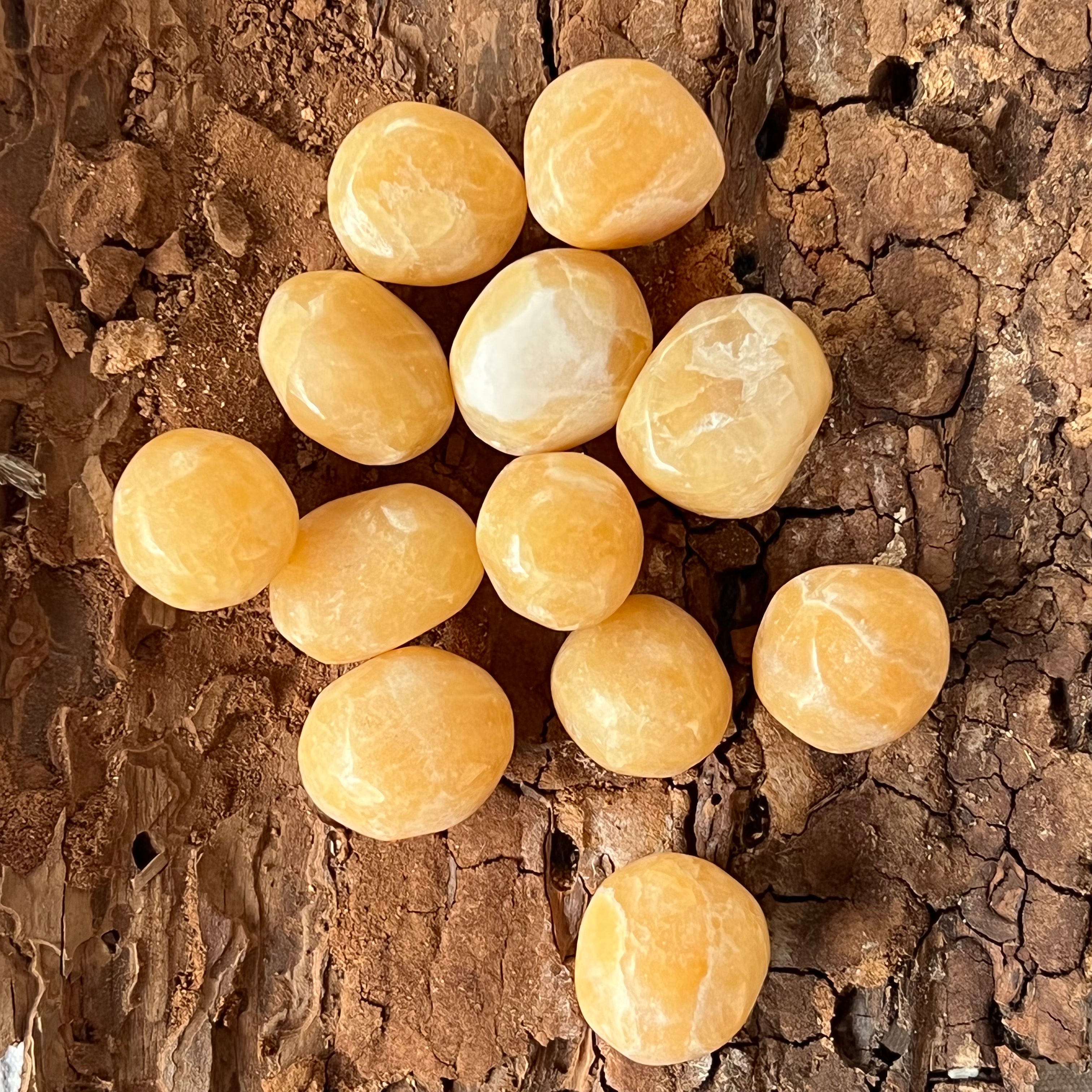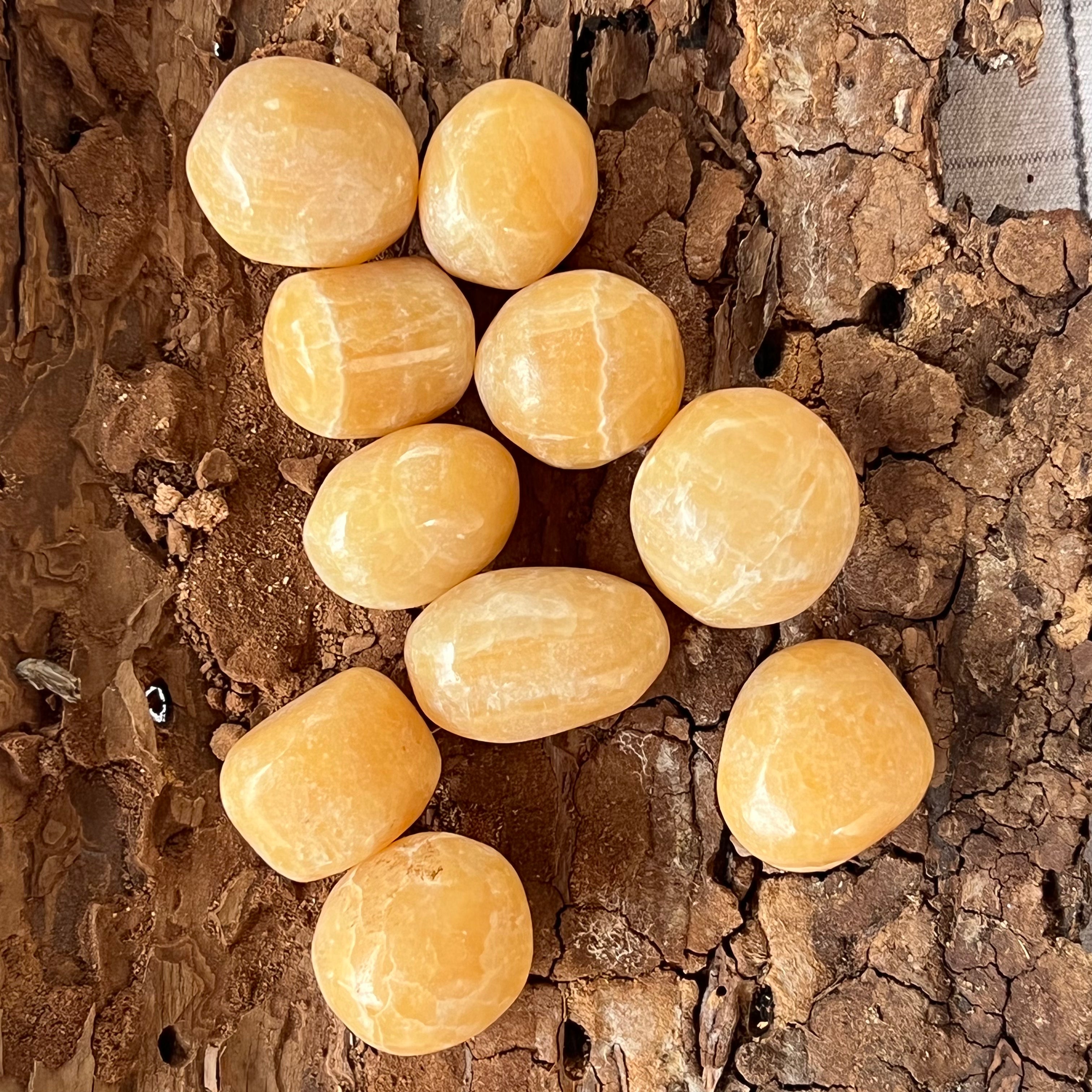 Narancssárga zebra kalcit, mini csiszolt kő, mérete 1,5–3,5 cm között. Az ár a kő méretétől függ, kérjük válassza ki a kívánt méretet. Az ár egy darabra vonatkozik.