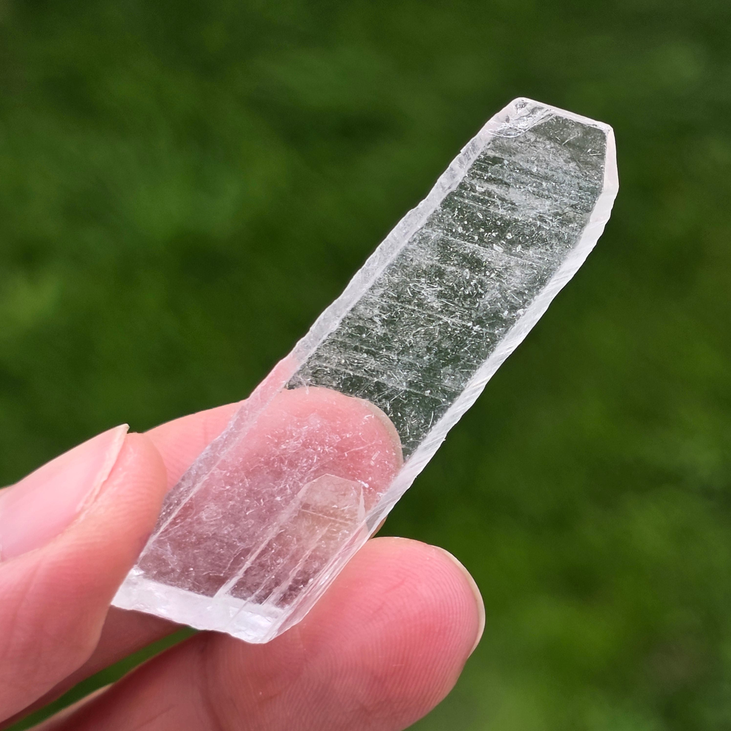 A kristályokat formában mutatják be prizmás, vékony, éles végű, nagy átlátszóságú és diszkrét, szinte üveges fényű. Megnyúlt alakjuk és növekedési módja minden példánynak légies karaktert ad, vizuálisan törékeny, de ásványtanilag jól meghatározott. A letisztult és egységes megjelenés miatt ezek a darabok nagyra értékelik a gyűjtői vitrinekben.