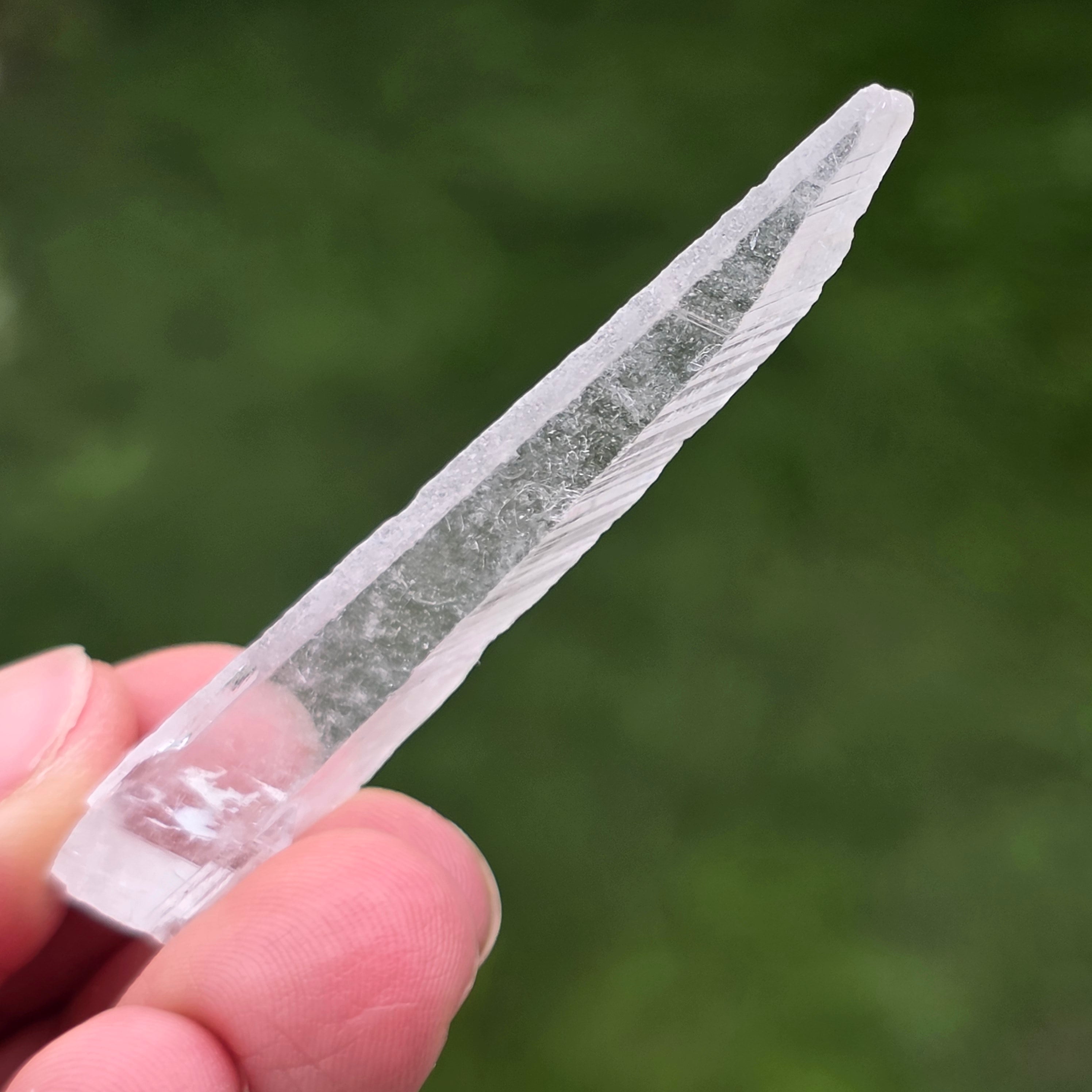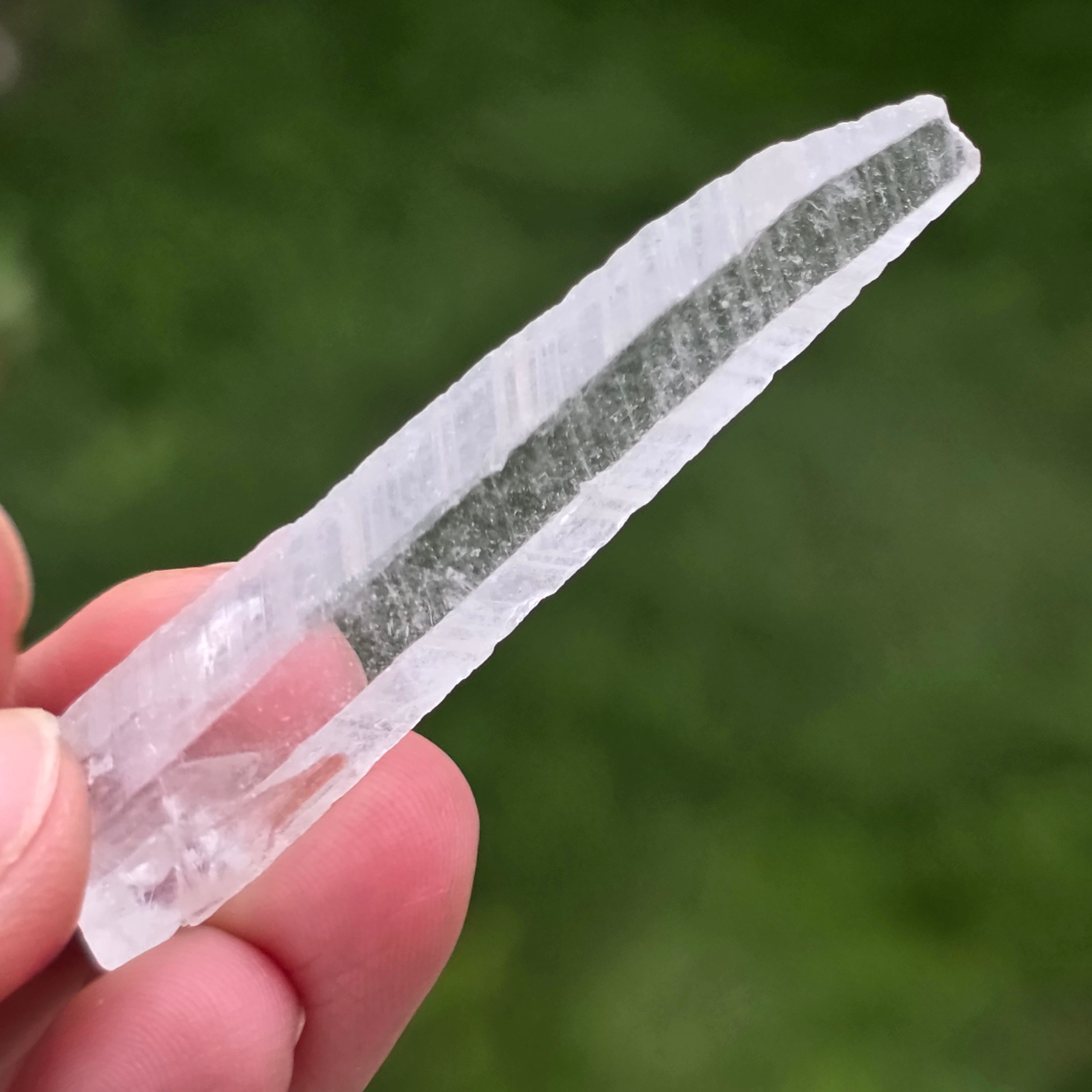 A kristályok prizmatikus, vékony formában, tiszta végekkeljelentkeznek, magas átlátszósággal és finom, majdnem üvegszerű fényességgel. Megnyúlt formájuk és növekedési módjuk minden példányt légies, vizuálisan törékeny, de mineralógiailag jól meghatározott jelleggel ruház fel. Tisztaságuk és egyenletes megjelenésük miatt ezek a darabok rendkívül értékesek a gyűjtővitrinekben.