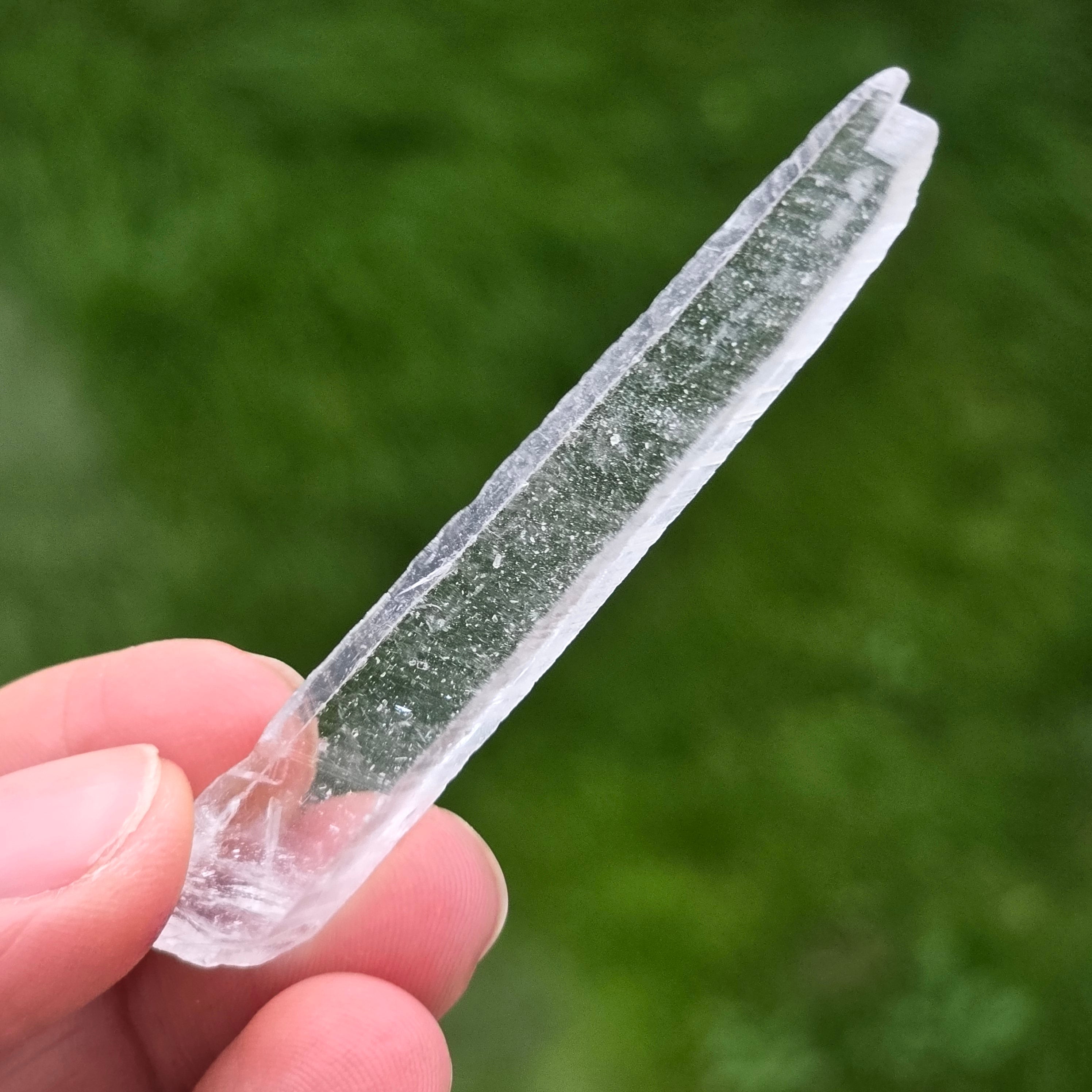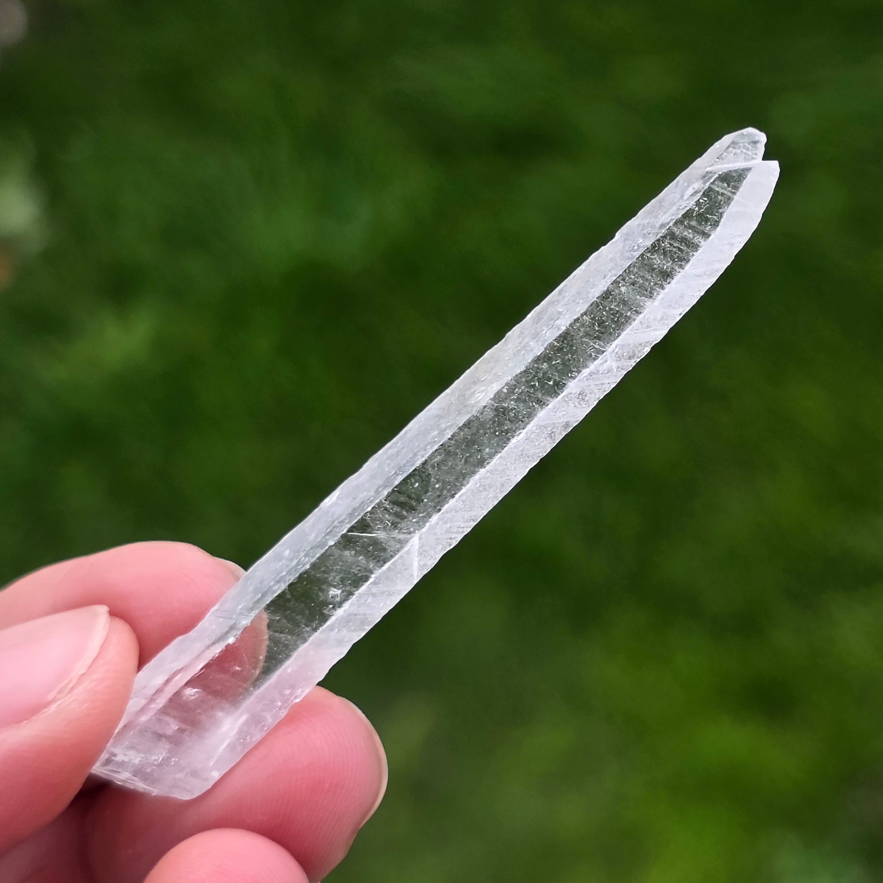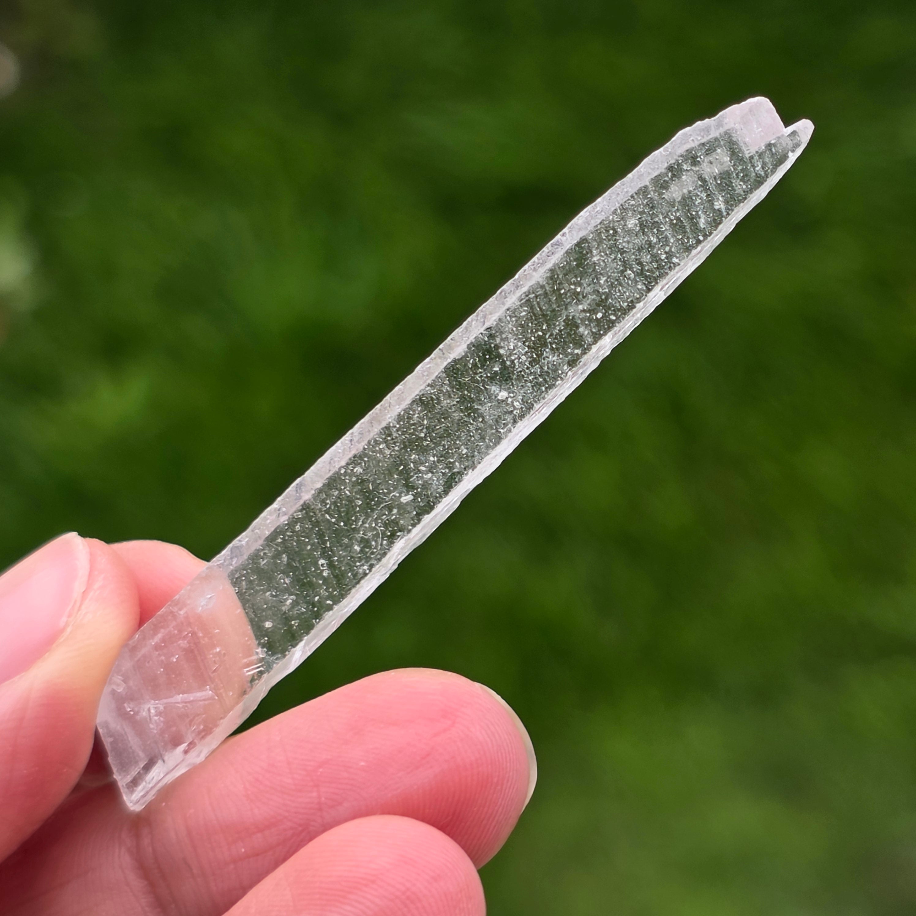 A kristályok vékony prizmás formában, tiszta csúcsokkaljelentkeznek, magas átlátszósággal és finom, szinte üveges fényű felülettel. Megnyúlt formájuk és növekedési módjuk levegős, vizuálisan törékeny, de ásványtani szempontból jól körülhatárolt jelleget ad minden példánynak. Tiszta és egységes megjelenésük miatt ezek a darabok rendkívül értékesek a gyűjteményi vitrineken.