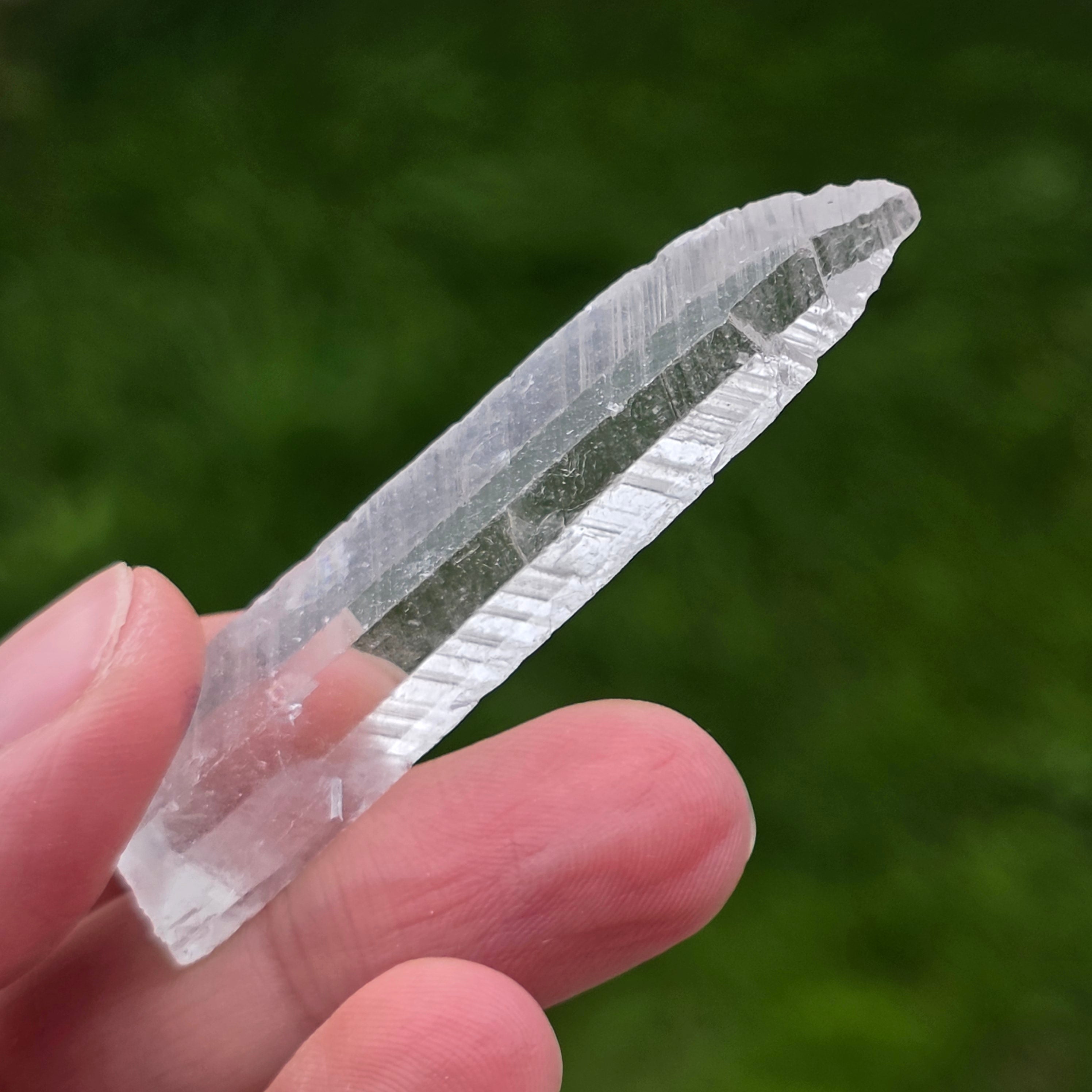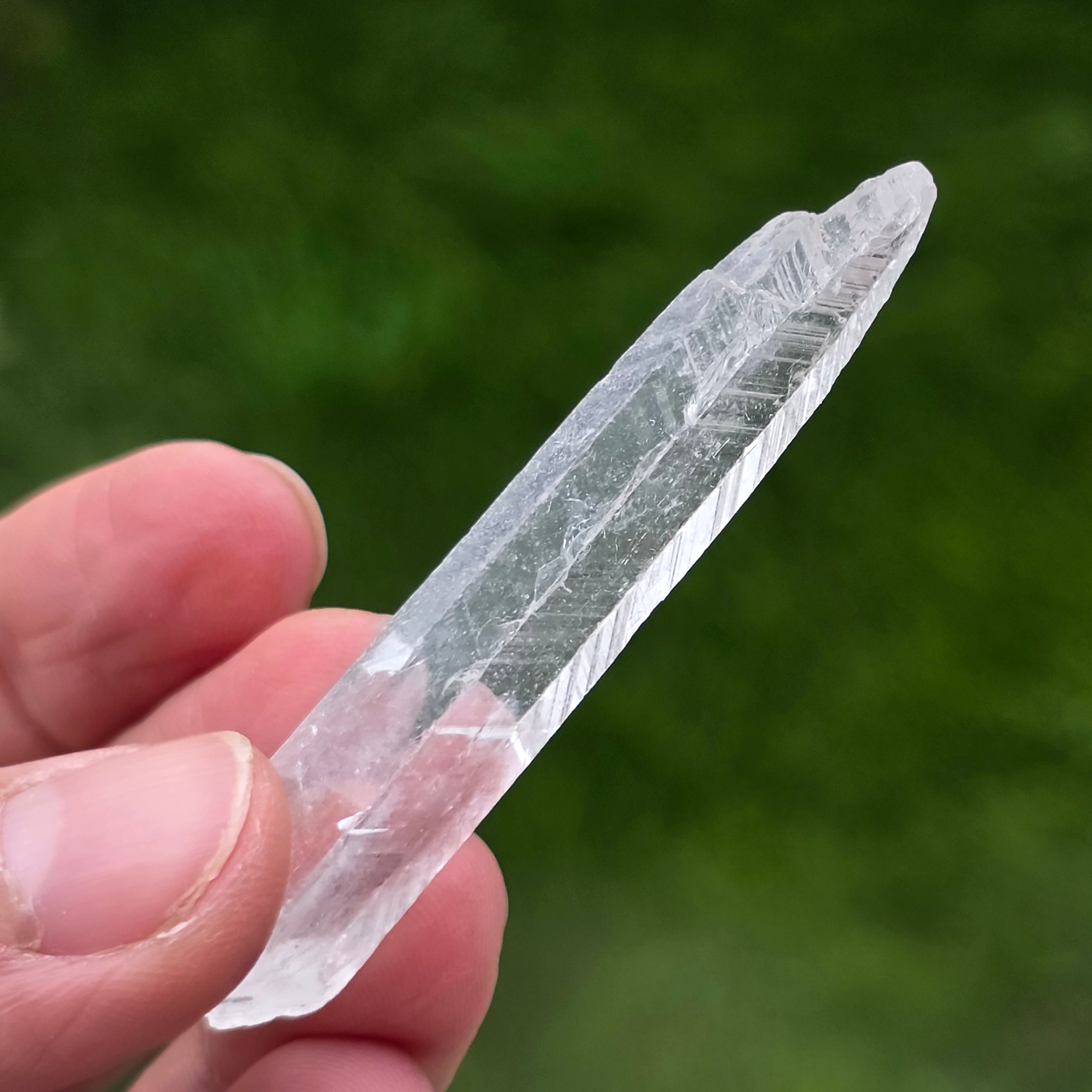 A kristályok prizmás, vékony formában, tiszta végződésekkeljelennek meg, magas átlátszósággal és finom, majdnem üveges fényű felülettel. Hosszúkás formájuk és növekedési módjuk minden példányt légies, vizuálisan törékeny, de ásványtani szempontból jól definiált karakterrel ruház fel. Tiszta és egységes megjelenésük miatt ezek a darabok rendkívül értékesek a gyűjteményi vitrinekben.