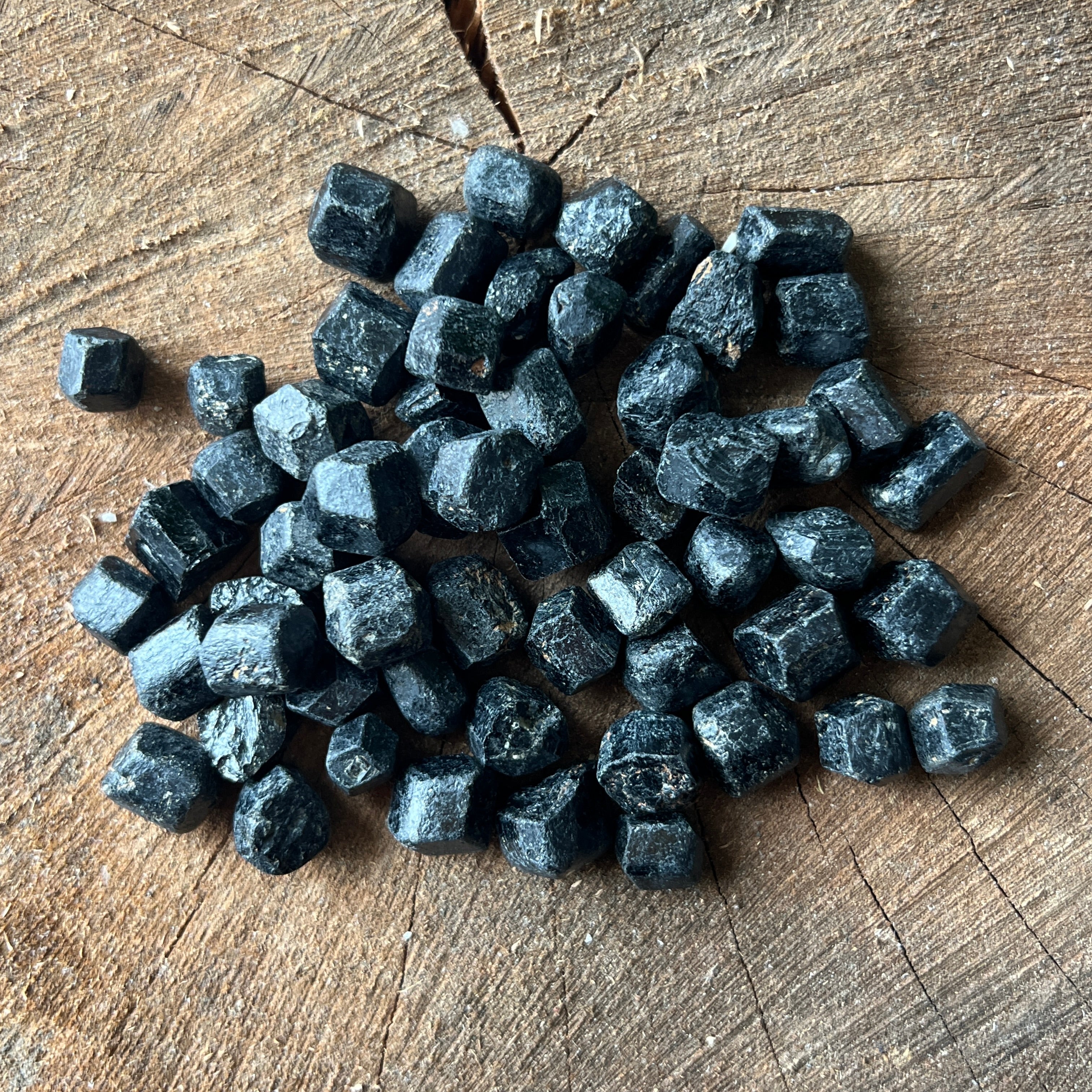 Nyers fekete turmalin Dél-Afrikából, méretei 0,5-2,5 cm között, kérjük válassza ki a kívánt méretet.