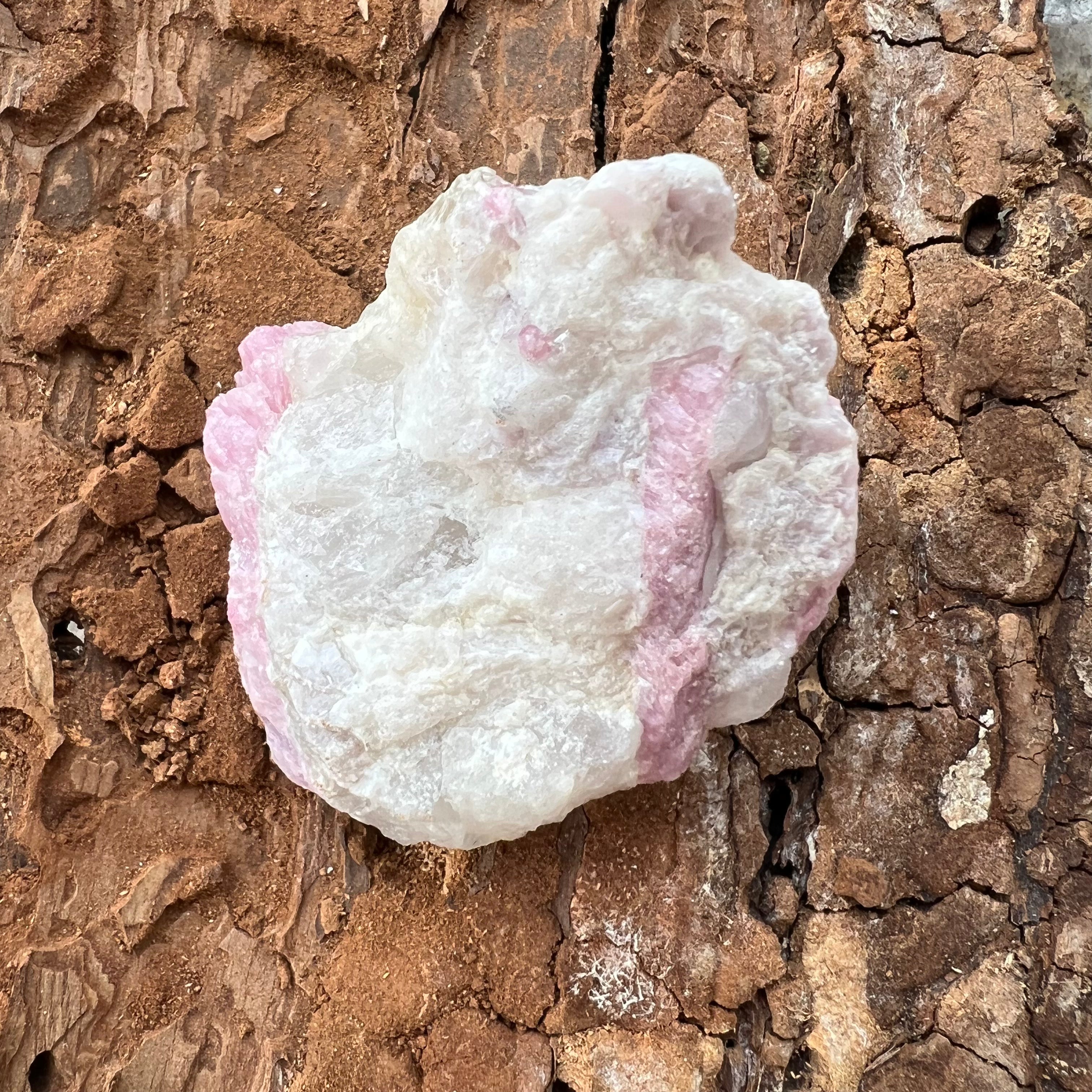 A rózsaszín turmalint a szív energiájával társítják, és úgy tartják, hogy nyugtató, érzelmi gyógyító hatása van, elősegíti az önszeretetet és a harmonikus kapcsolatokat.