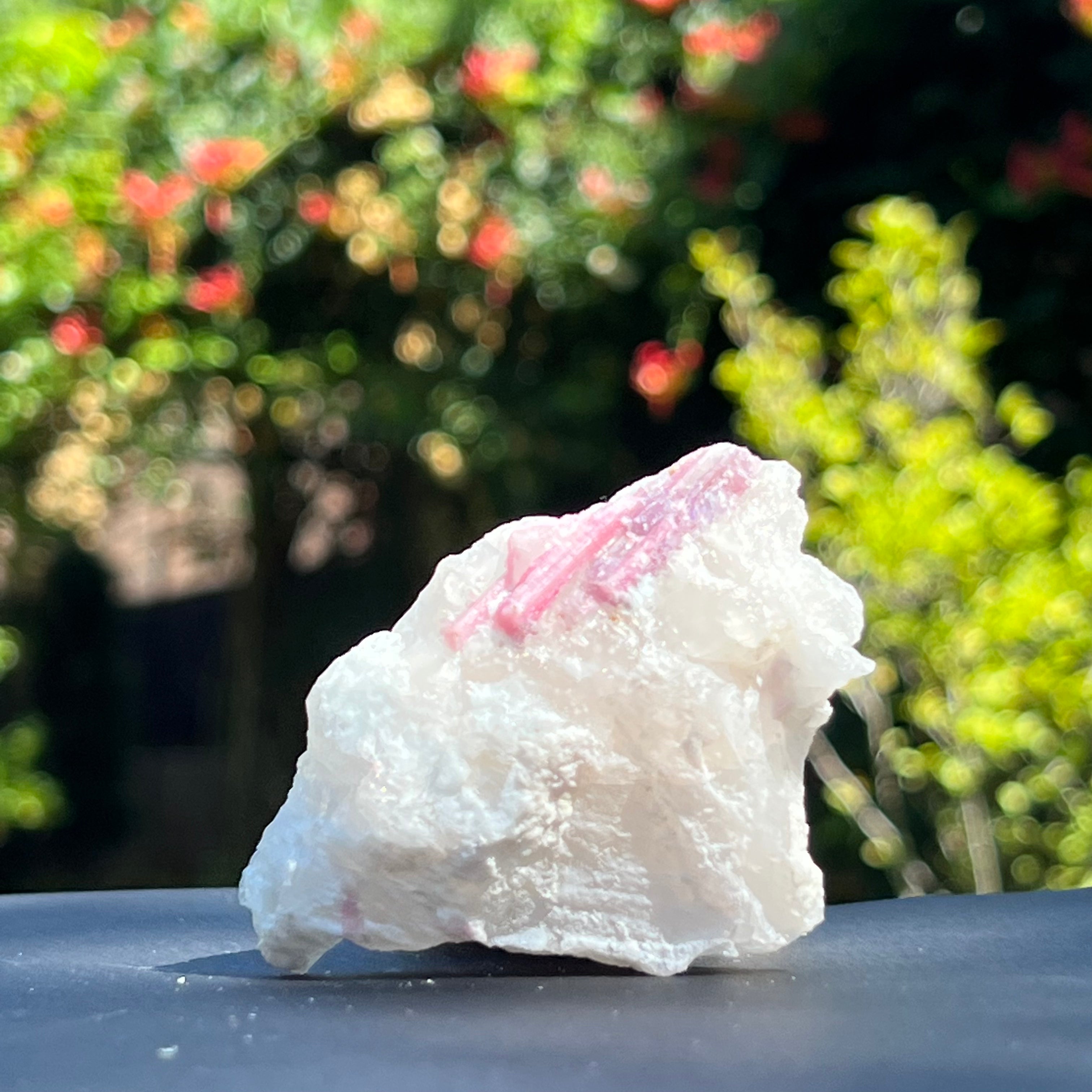 A rózsaszín turmalint a szív energiájával társítják, és úgy tartják, hogy nyugtató, érzelmi gyógyító hatása van, elősegíti az önszeretetet és a harmonikus kapcsolatokat.