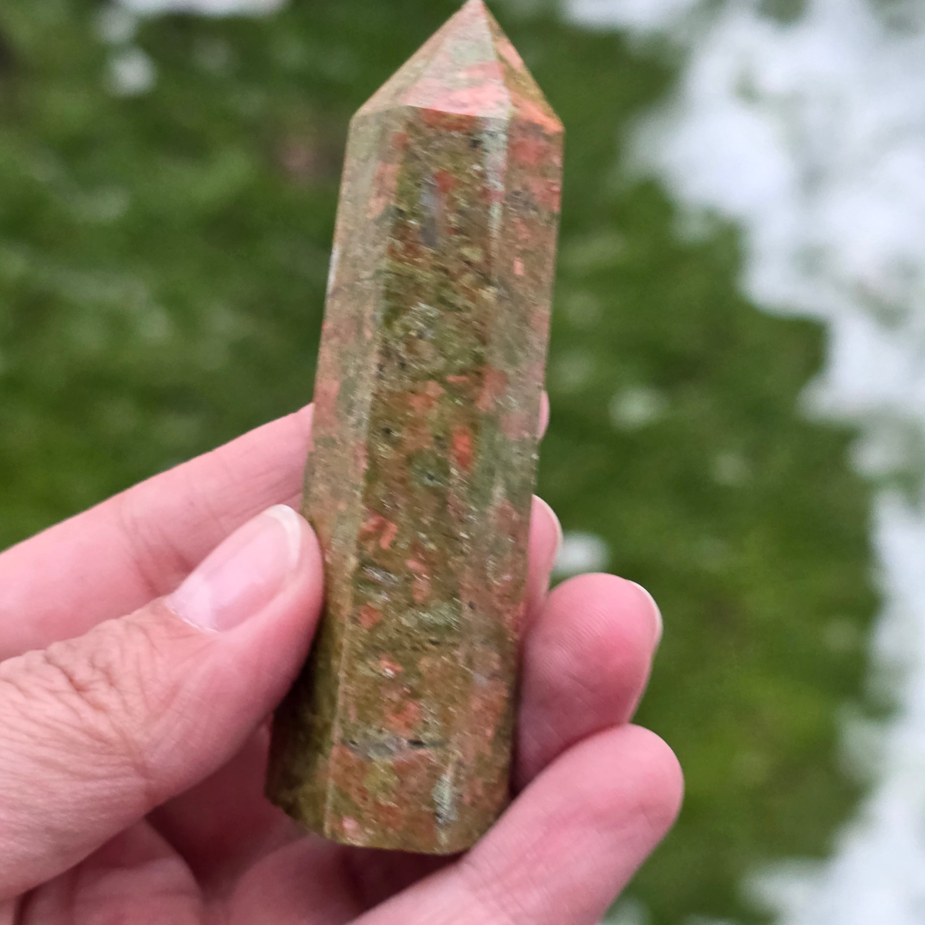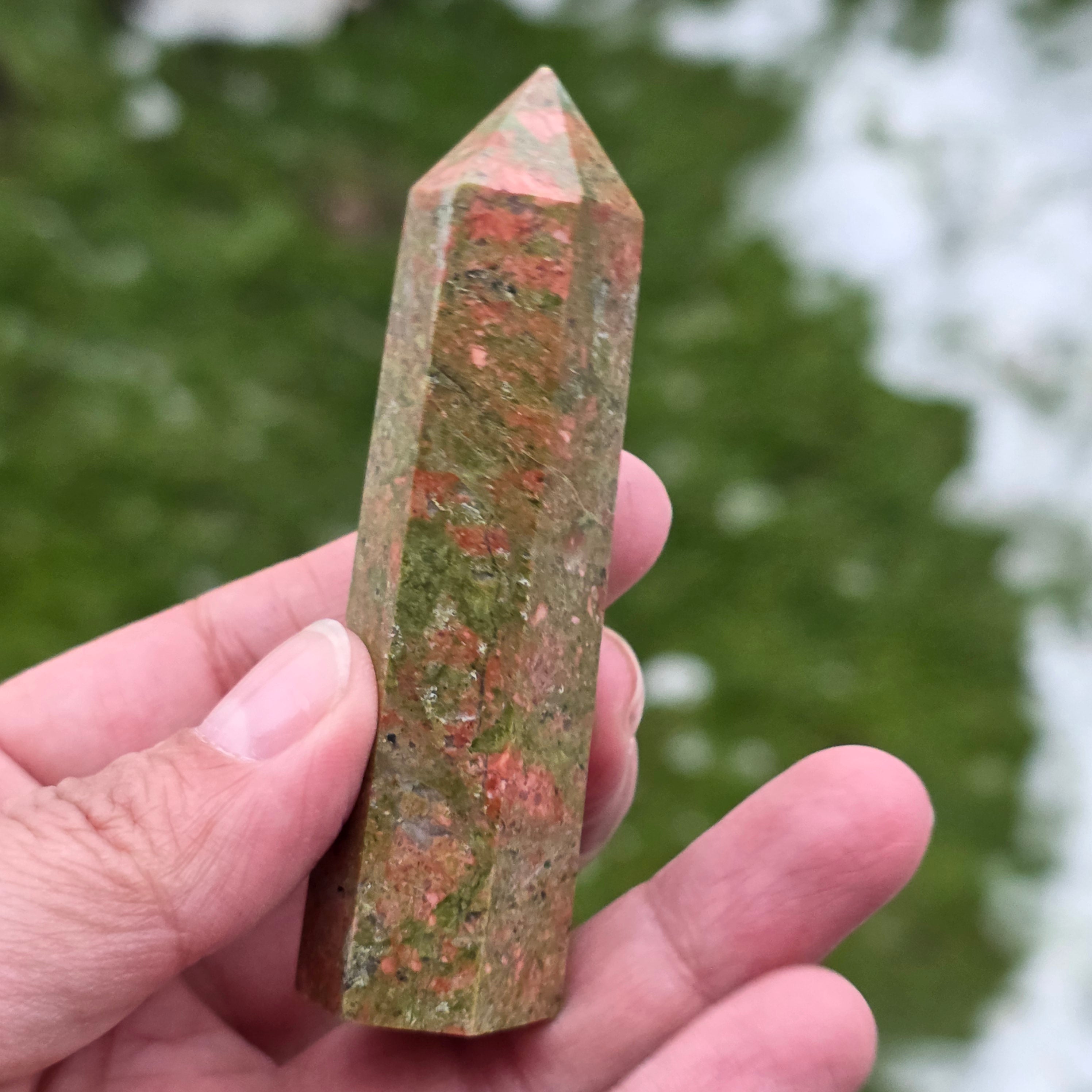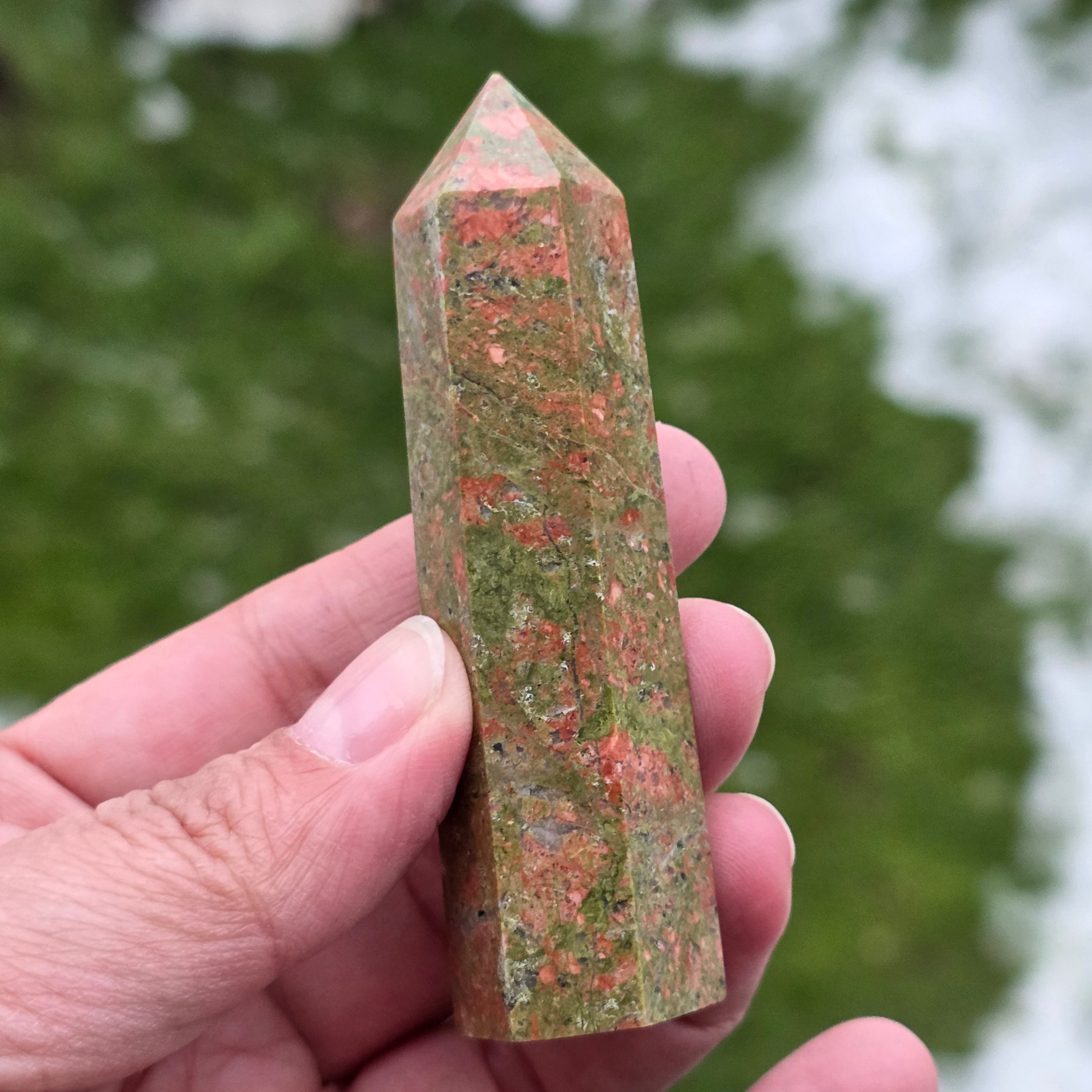 Az unakit egy féldrágakő, amely hasadékfoltból, epidotból, kvarcból és mikából áll.