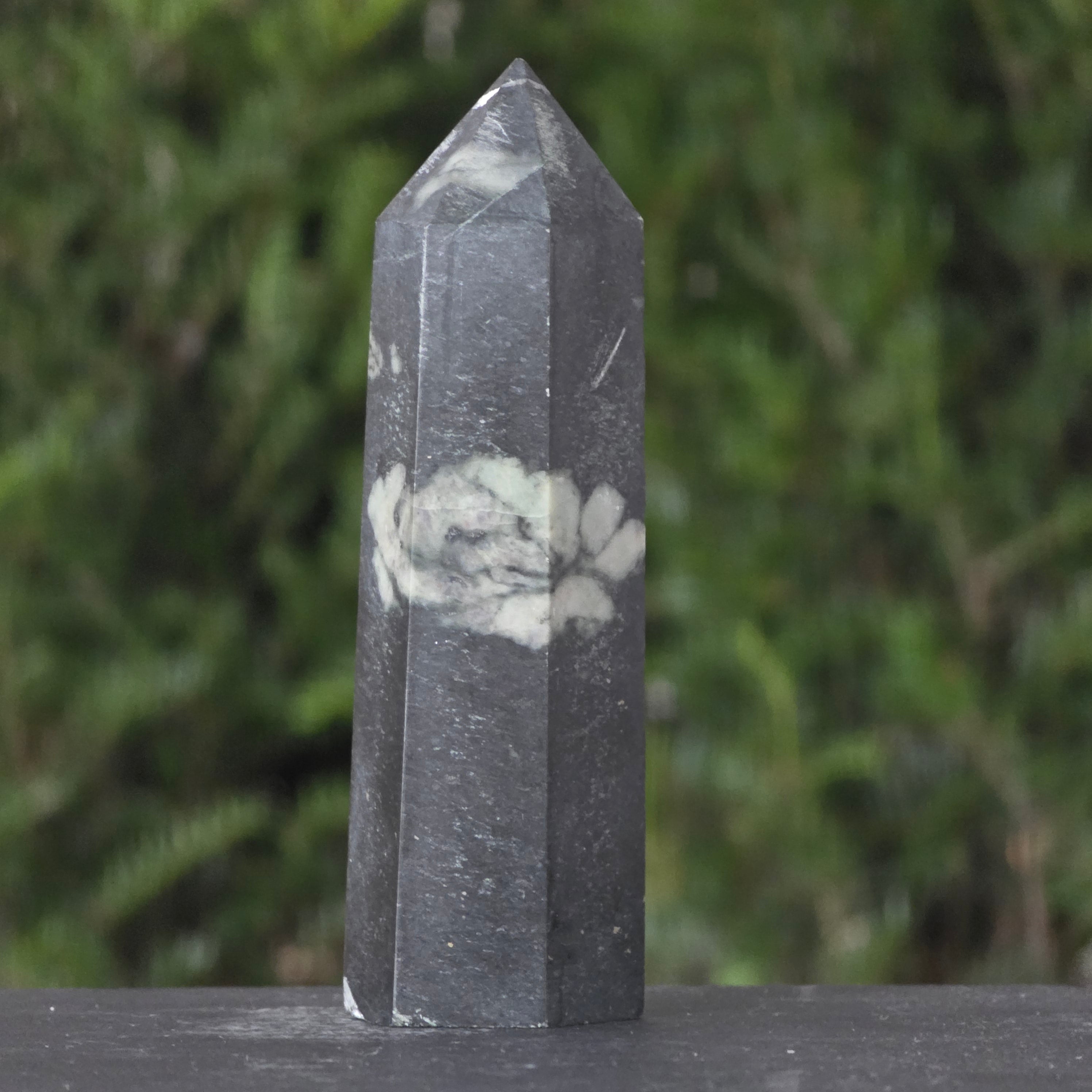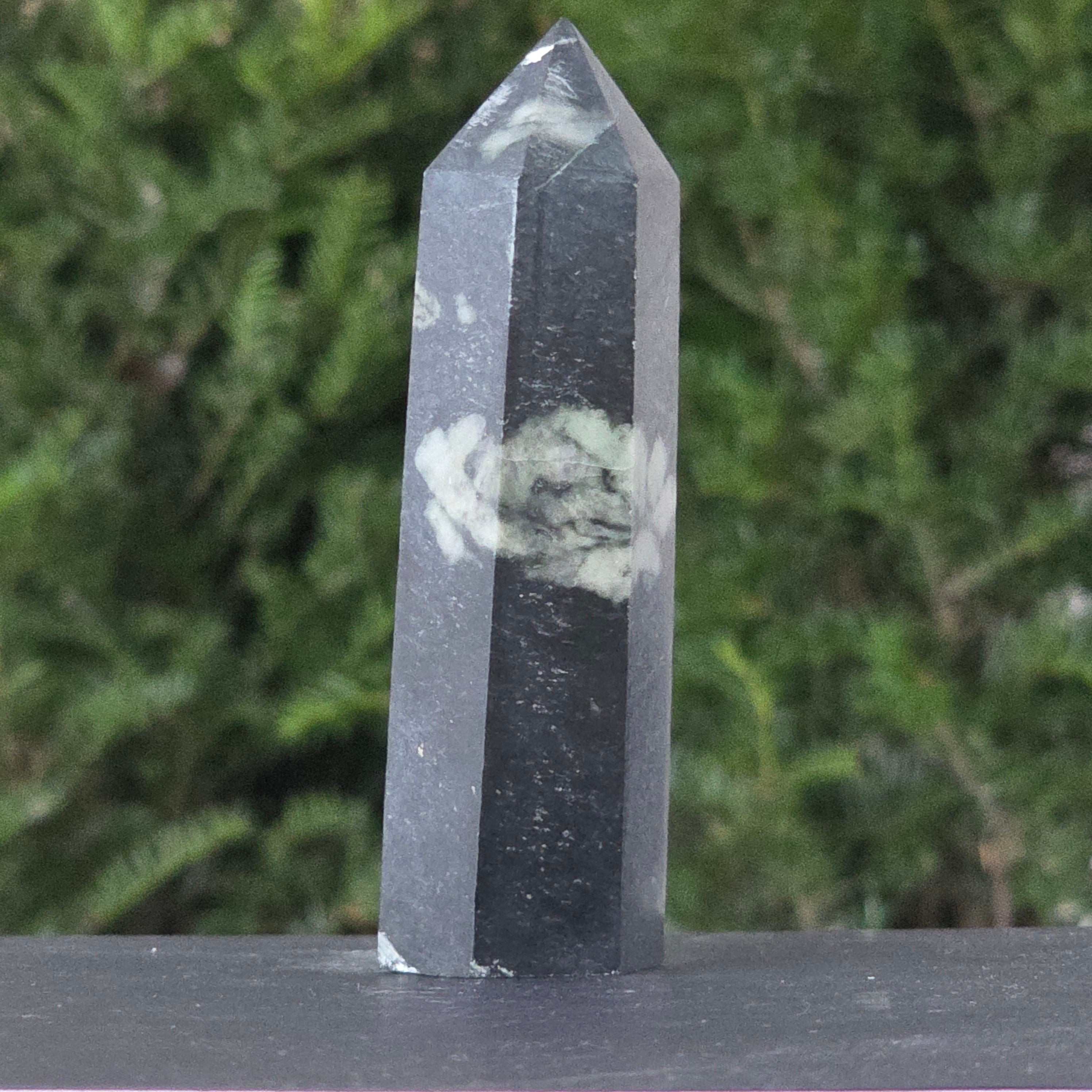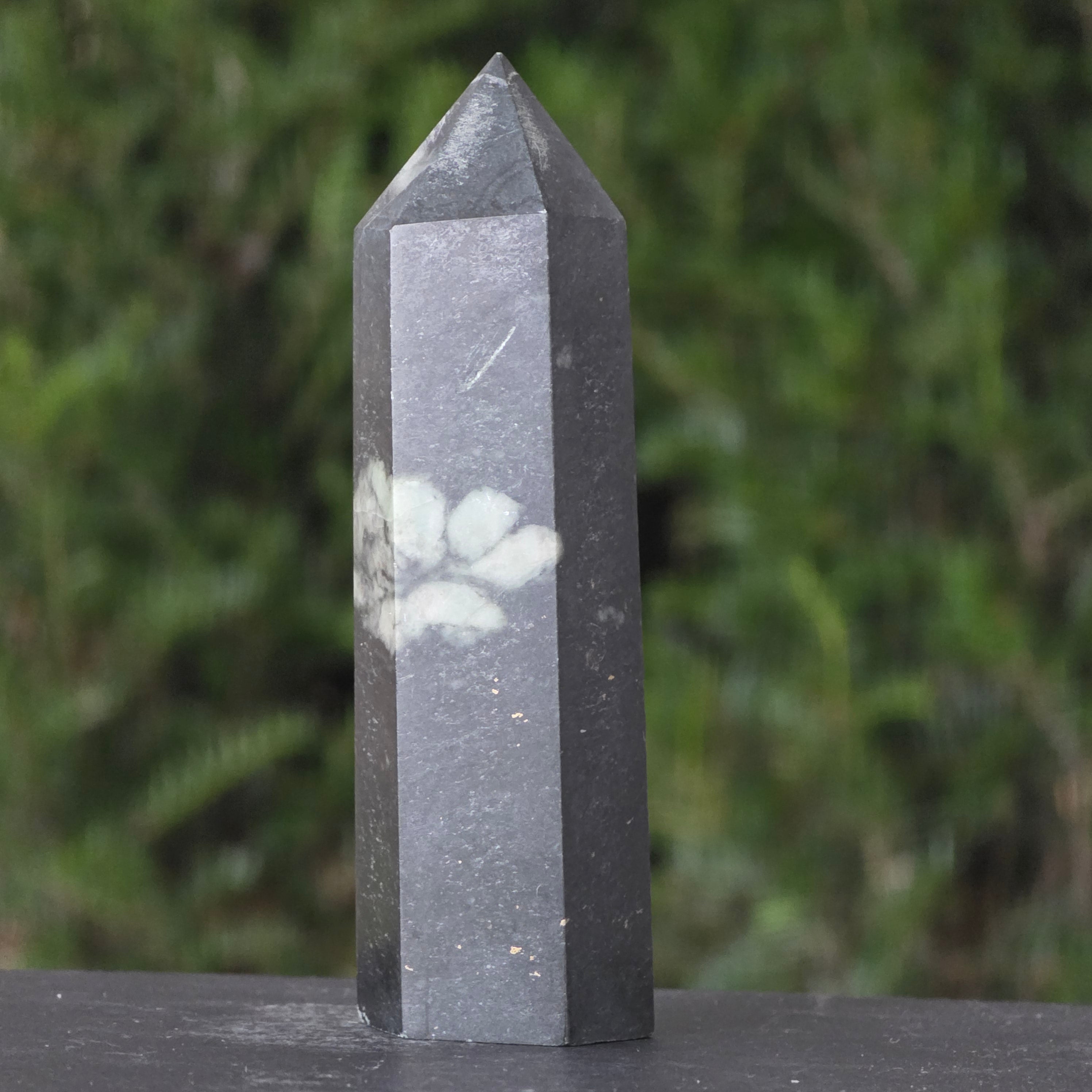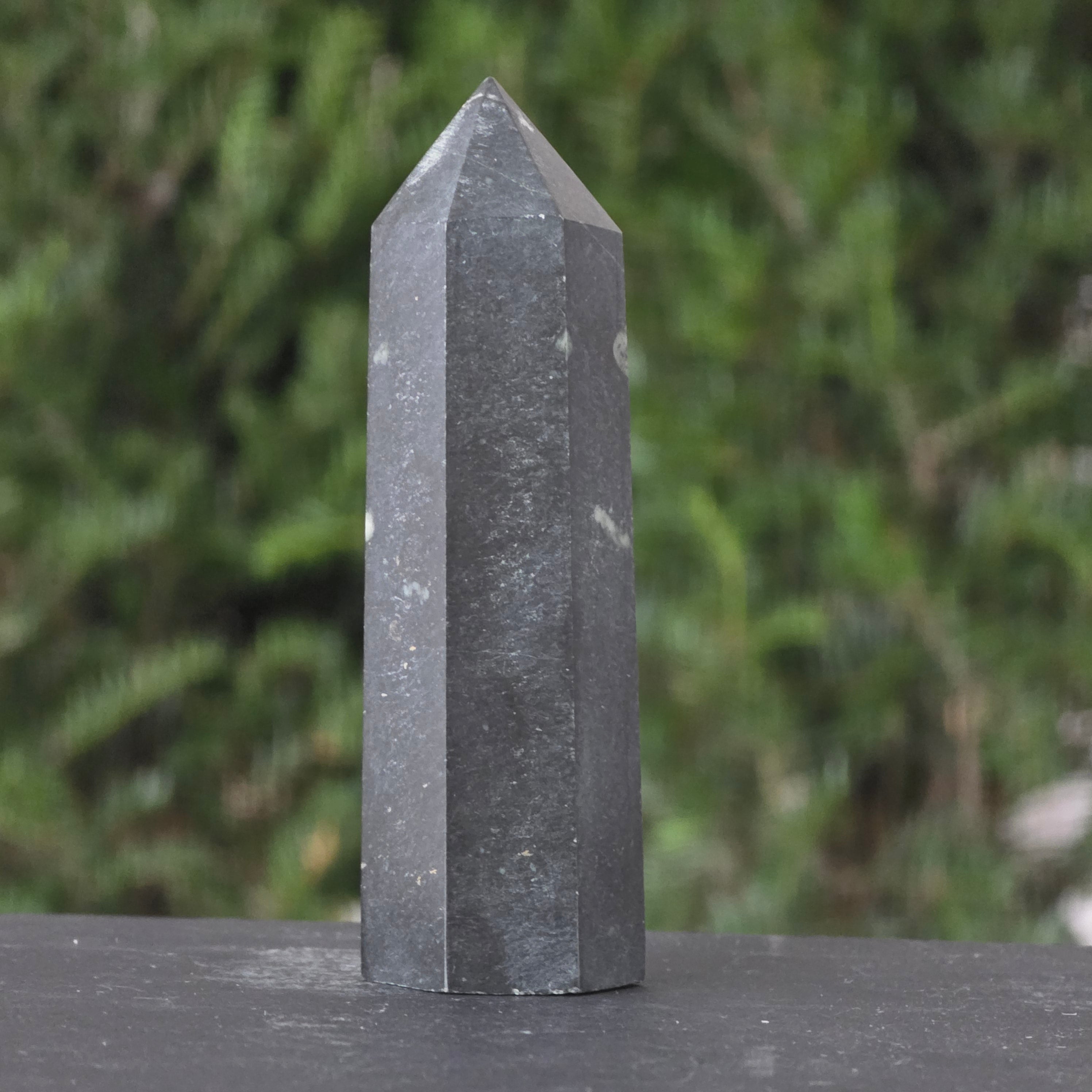 Formája obeliszk, a spirituális felemelkedés szimbóluma, felerősíti a kő energiáját, és azt a tisztánlátás, bátorság és beteljesülés felé irányítja.
