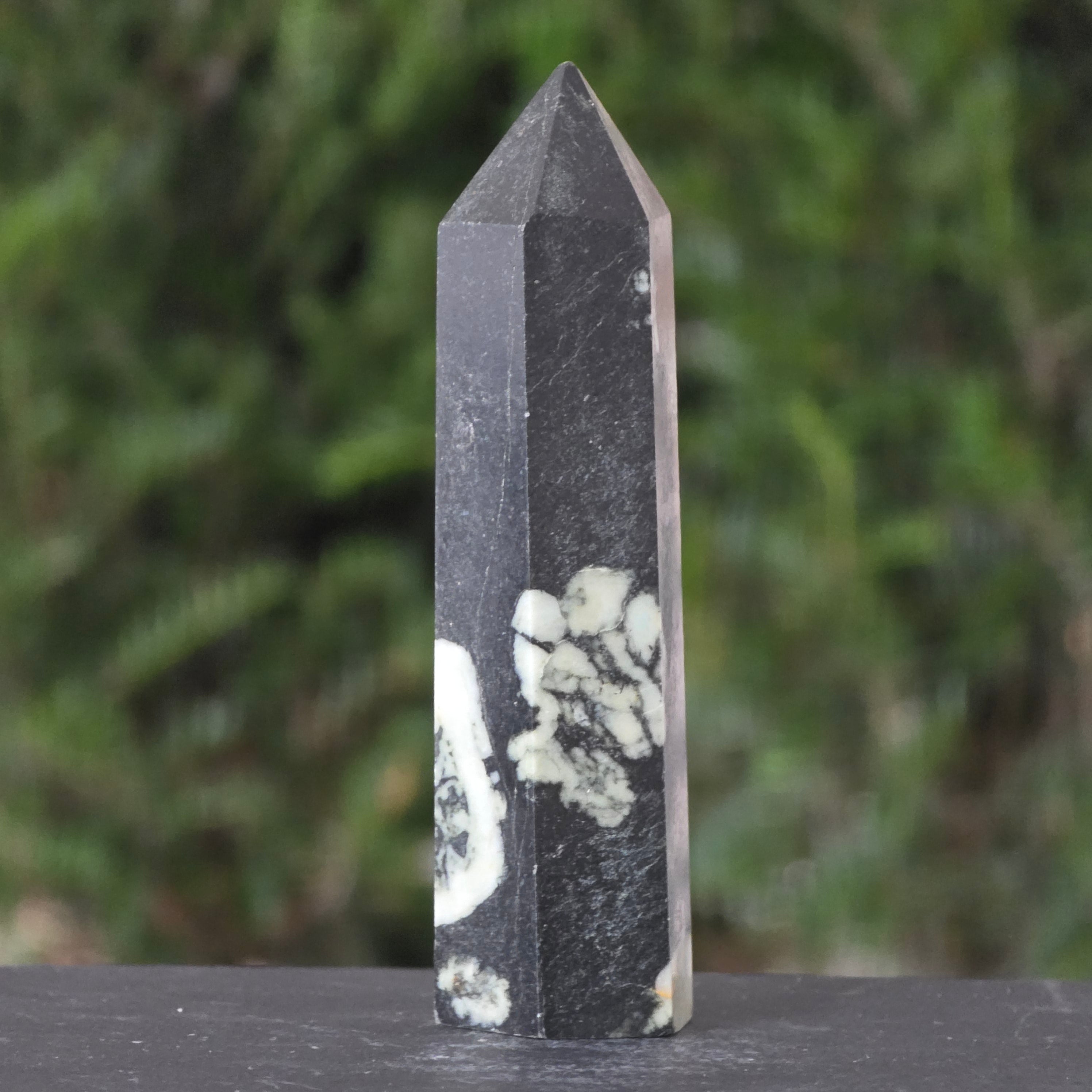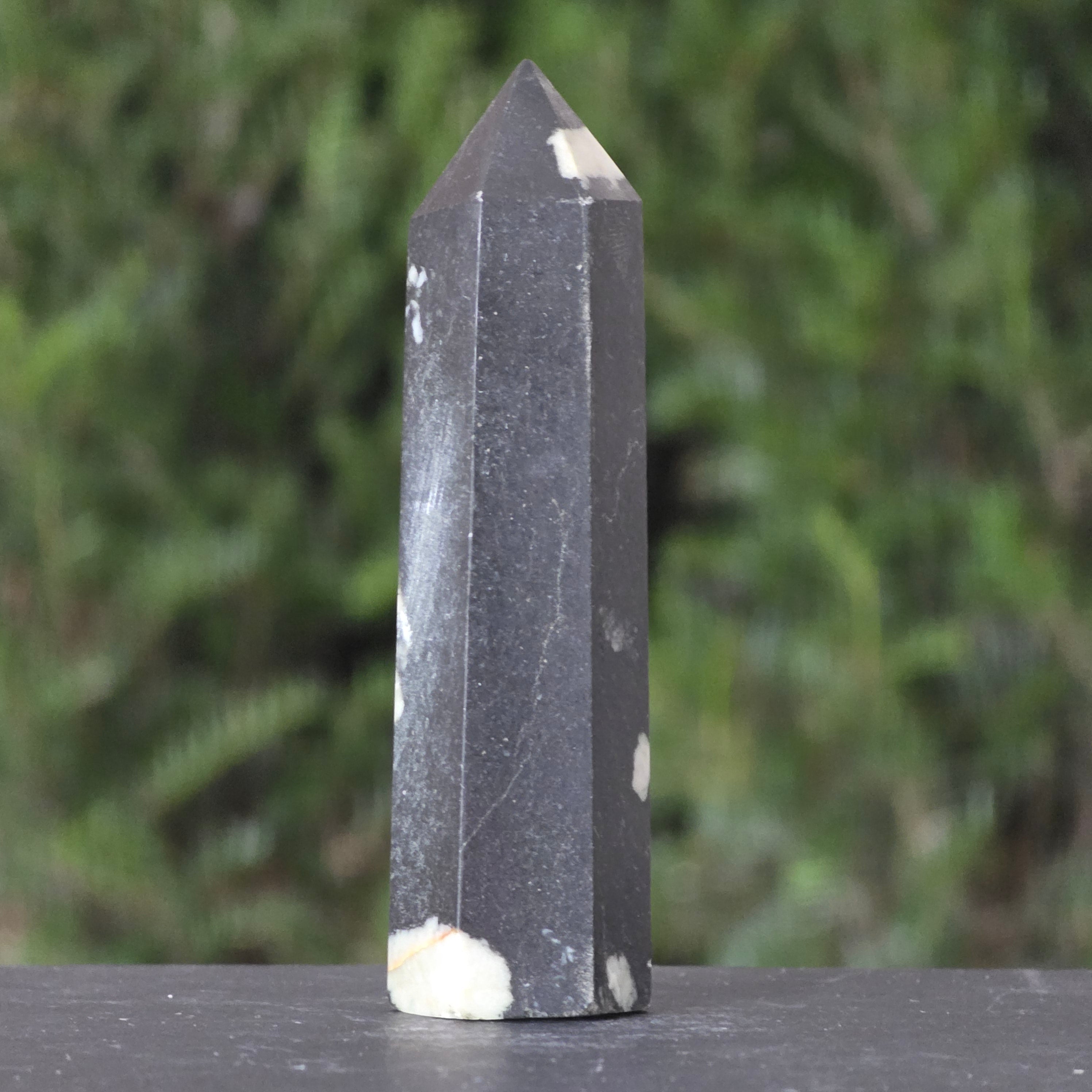 Formája obeliszk, a spirituális felemelkedés szimbóluma, felerősíti a kő energiáját, és azt a tisztánlátás, bátorság és beteljesülés felé irányítja.