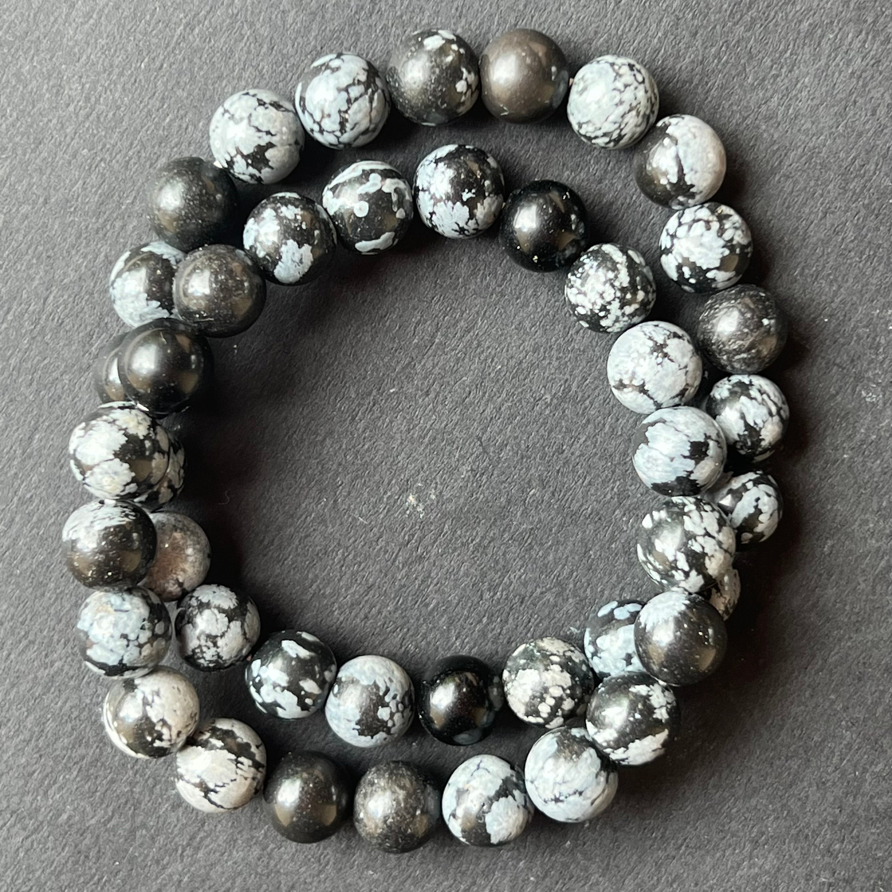Descriere - Obisidian karkötő hópelyhe 8mm