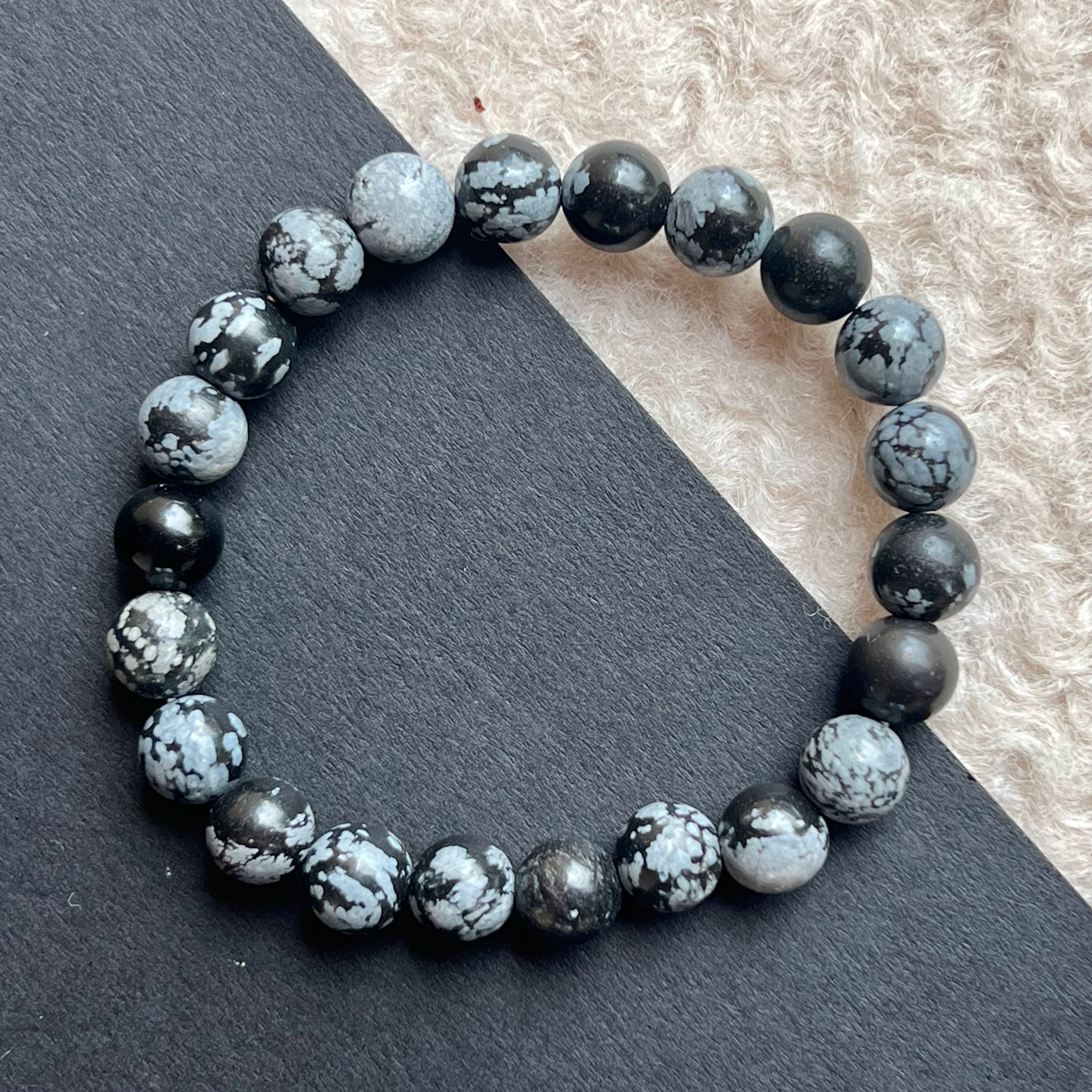Obisidian karkötő hópelyhe 8mm
