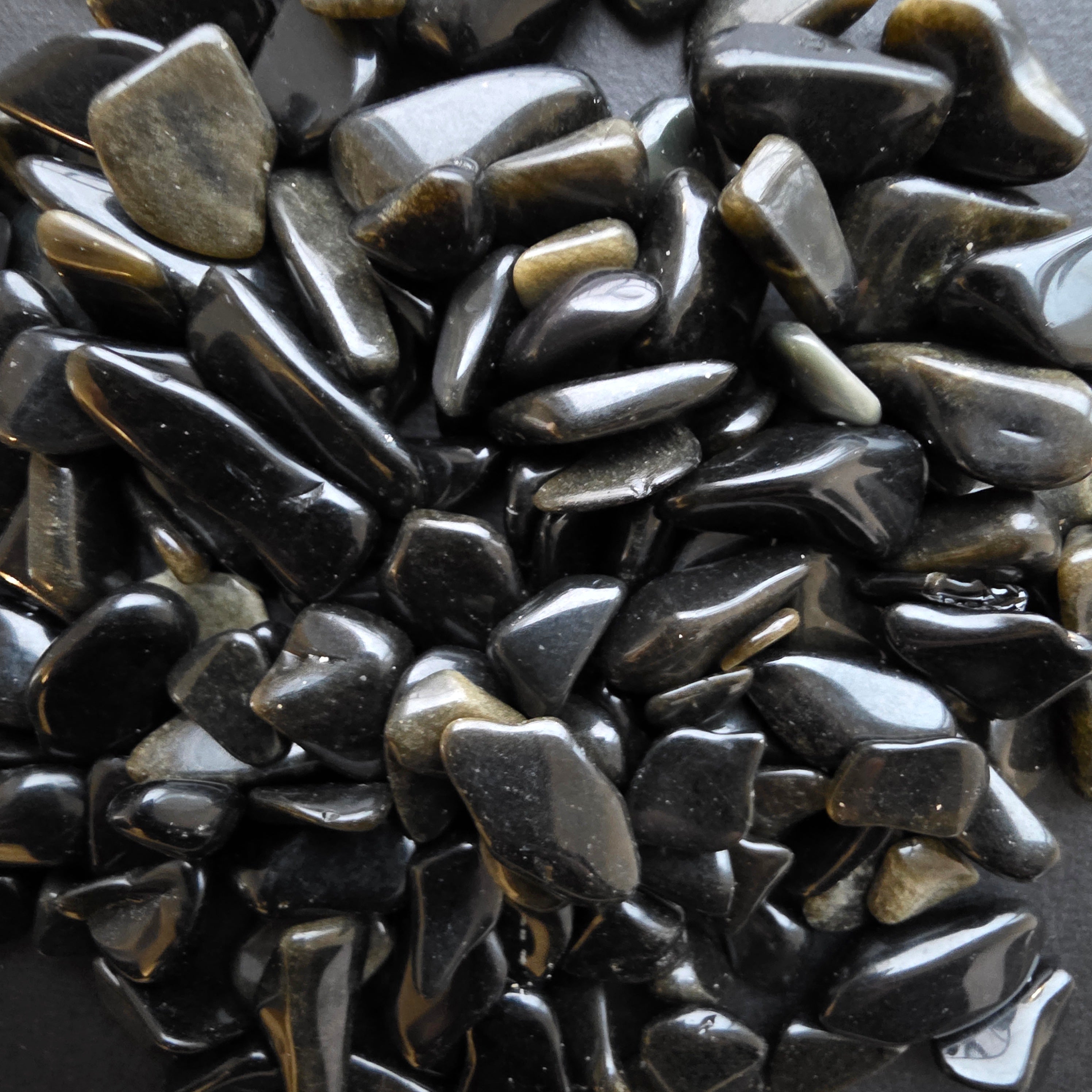 Az obszidián, a tűz és a hirtelen lehűlés által létrejött vulkáni üveg, megőrzi intenzív és titokzatos lényegét ezekben a chipekben. Túlnyomórészt fekete árnyalatai, néha üveges visszatükröződésekkel vagy füstös foltokkal, mély és tömör vizuális keveréket alkotnak, ahogy azt egy közvetlenül a Föld energiájából született kőtől várnánk.