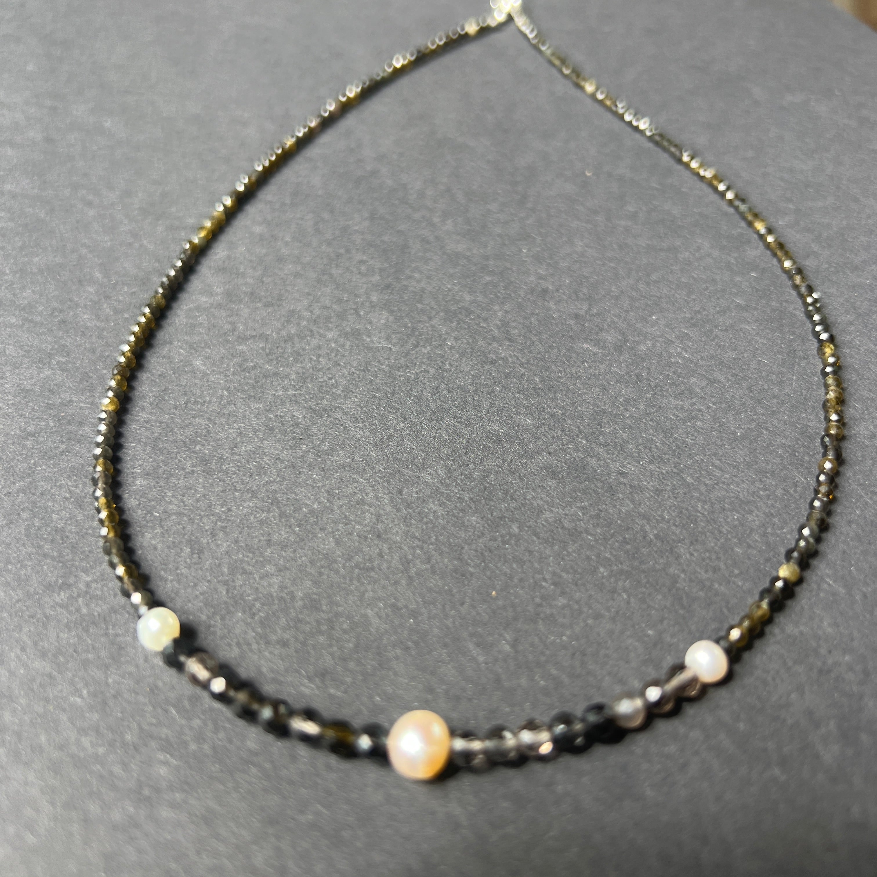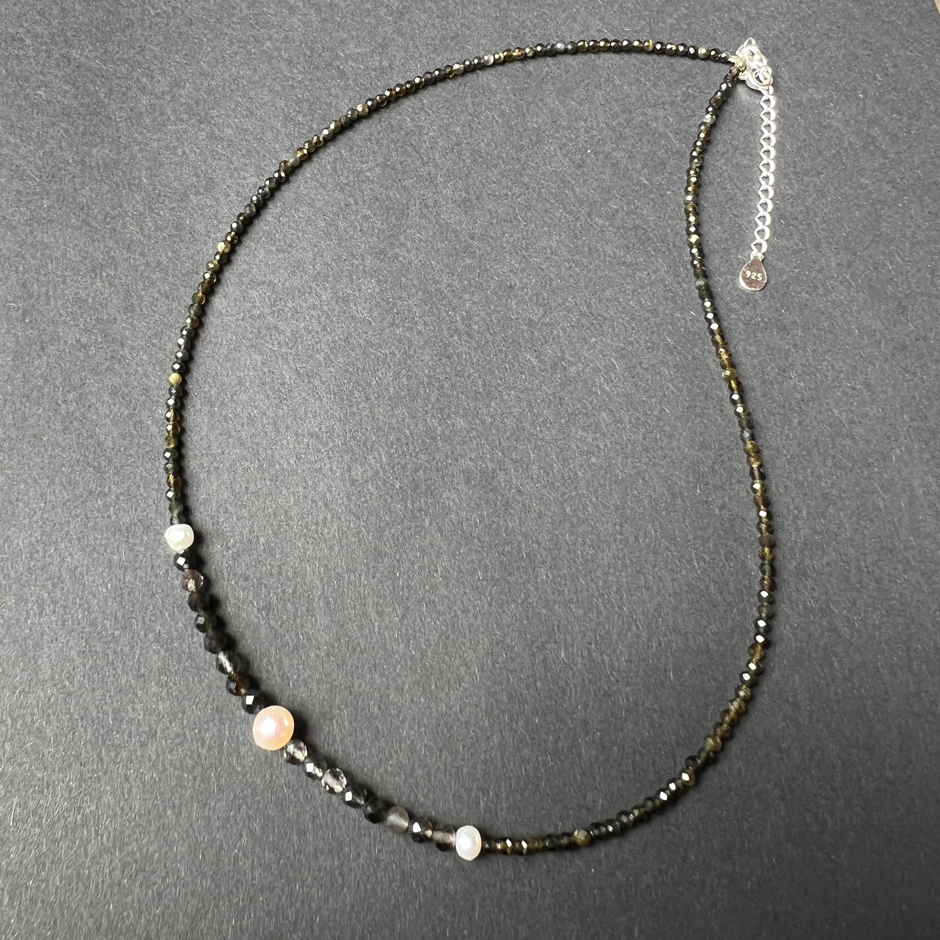 Descriere - Obszidián és gyöngy nyaklánc Silence#41