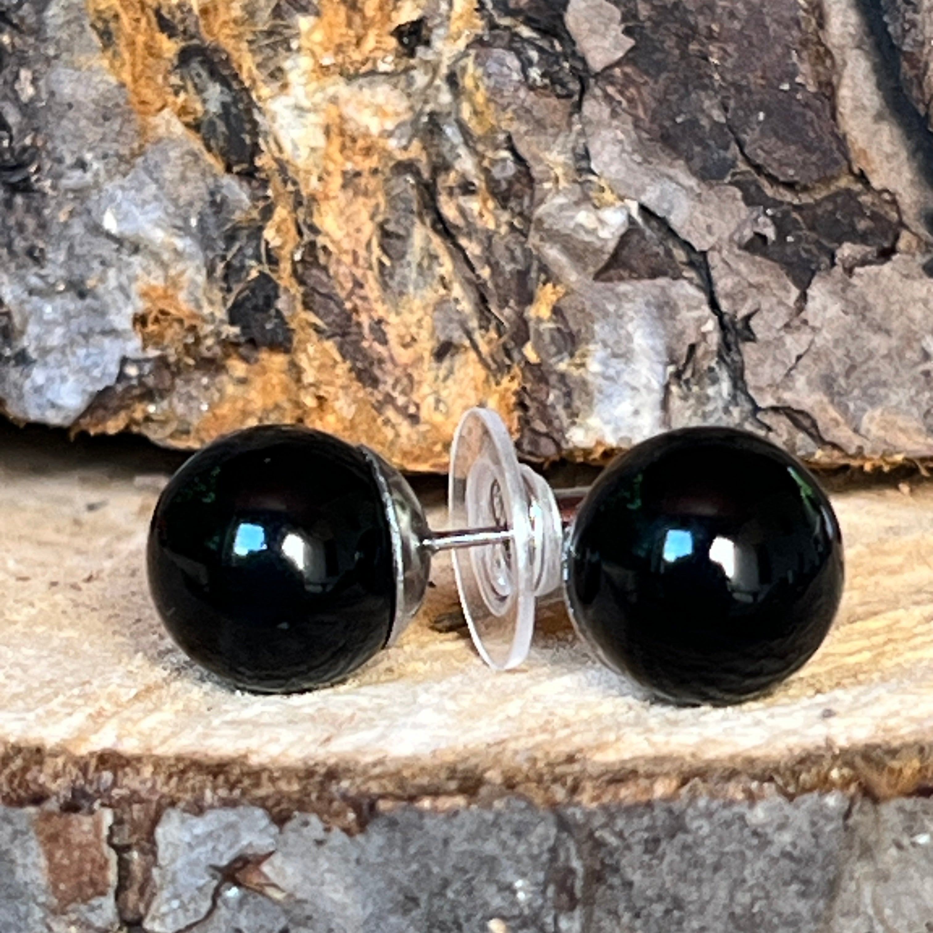 Obszidián gömb fülbevaló 10 mm-es tűs fülbevaló