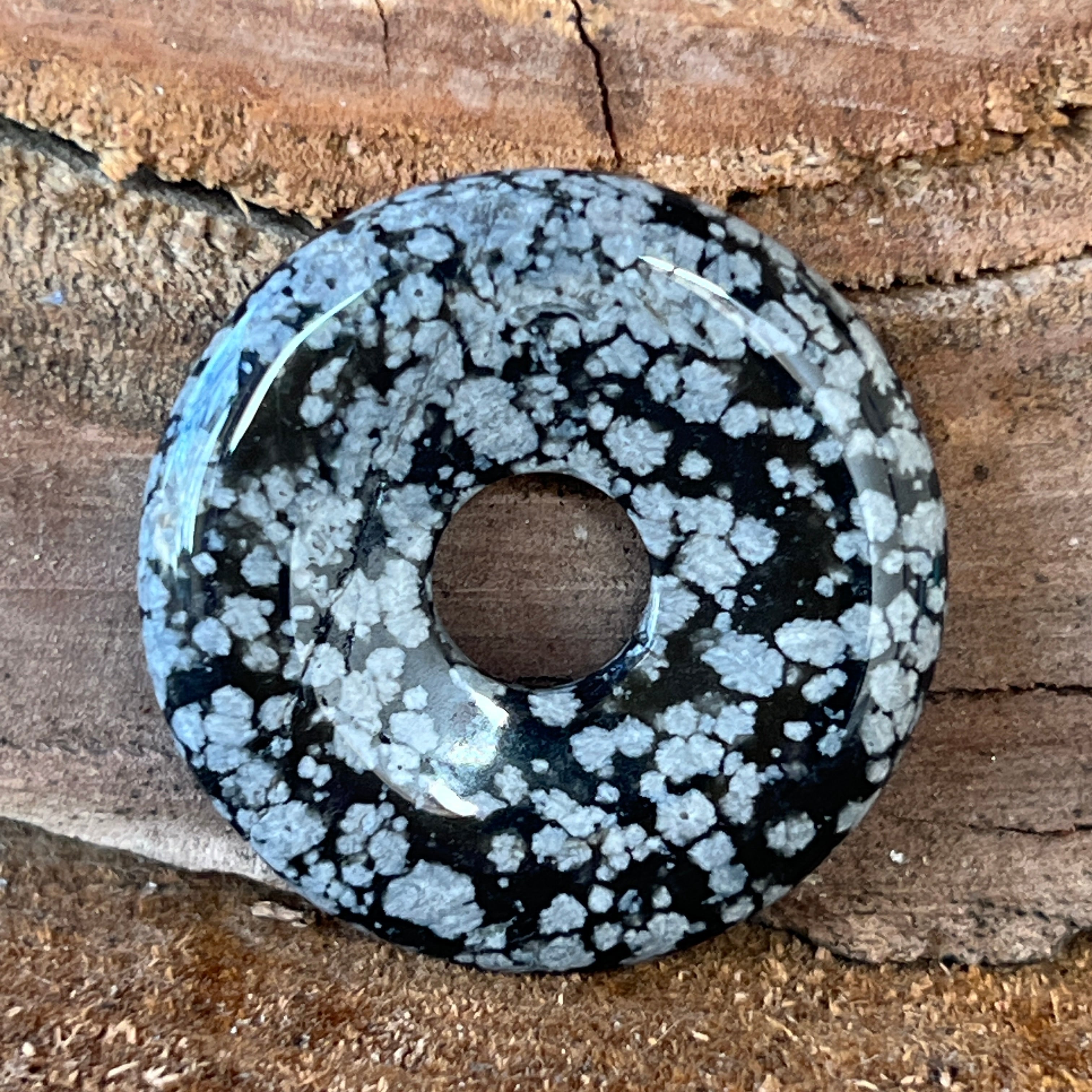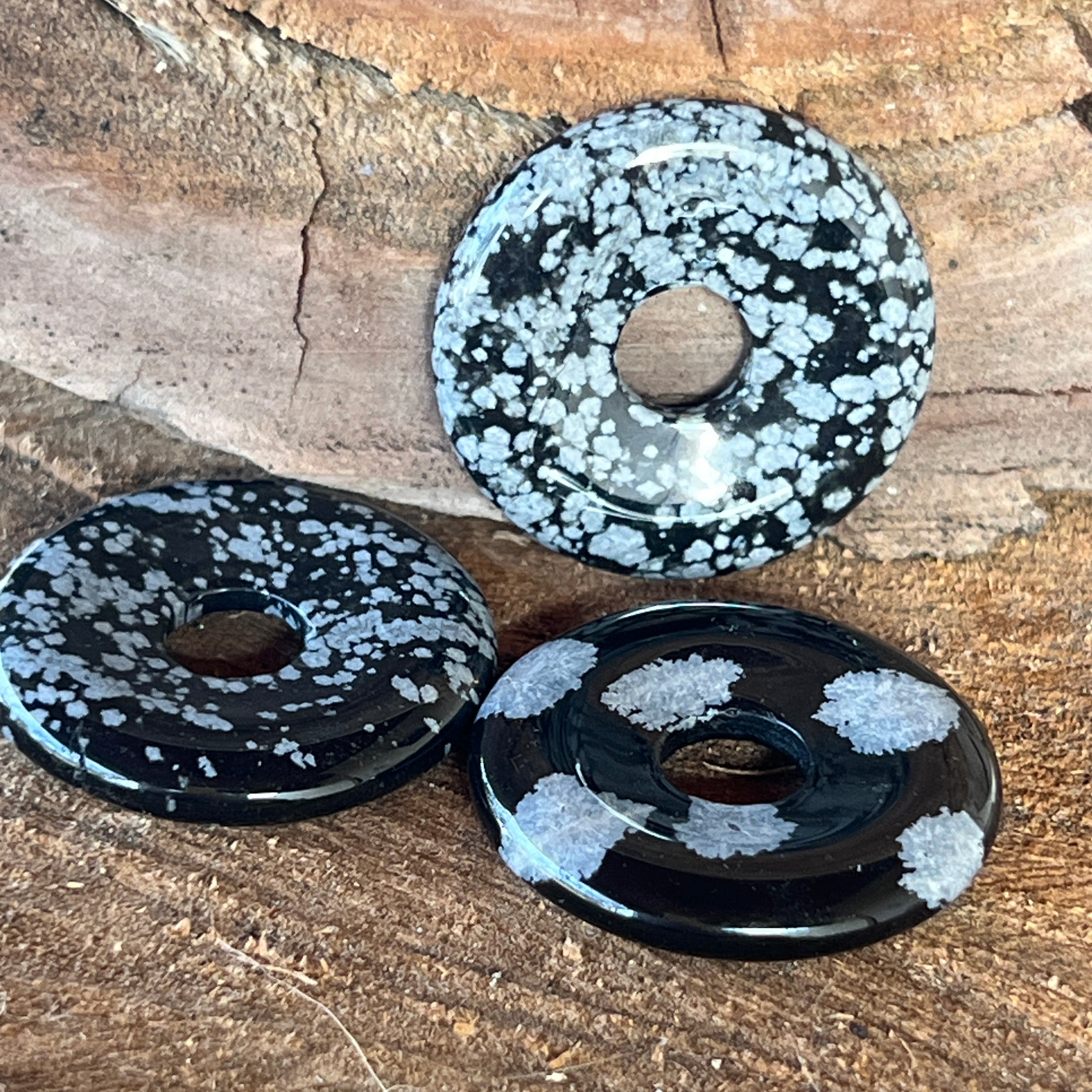 Descriere - Obszidián kő pi fánk medál hópelyhek M