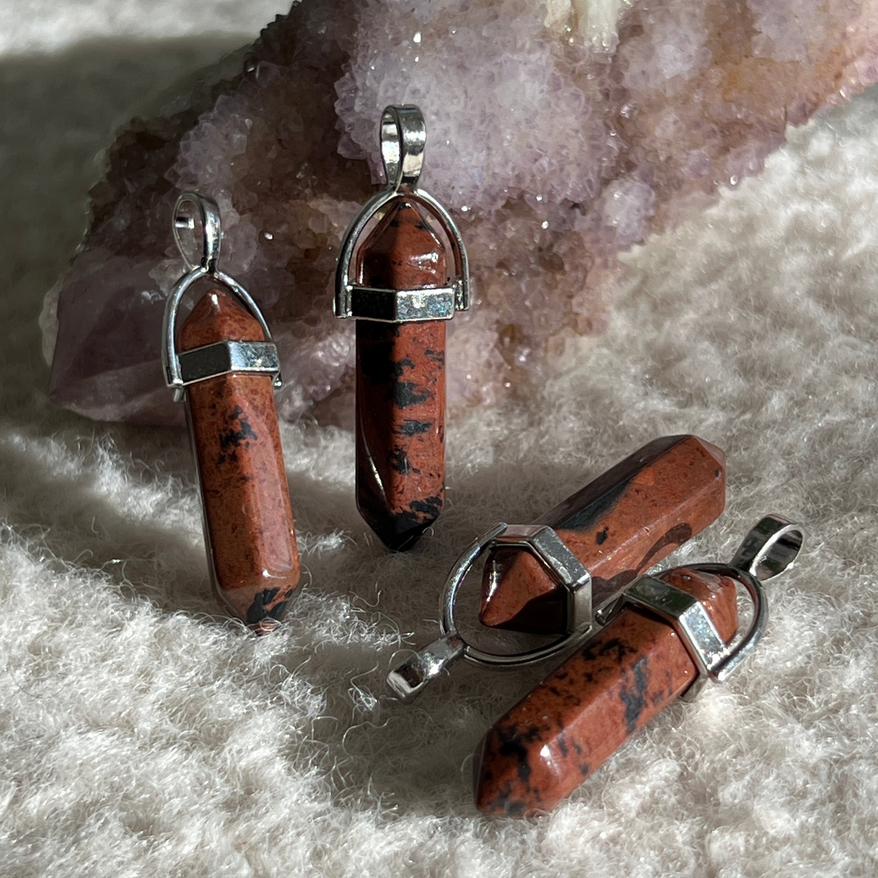 A mahagóni obszidiánt olyan kőnek tekintik, amely aktiválja a három alsó csakrát. Ösztönzi a kreativitást, a szenvedélyt, a szexualitást, és védelmező szerepe is van.