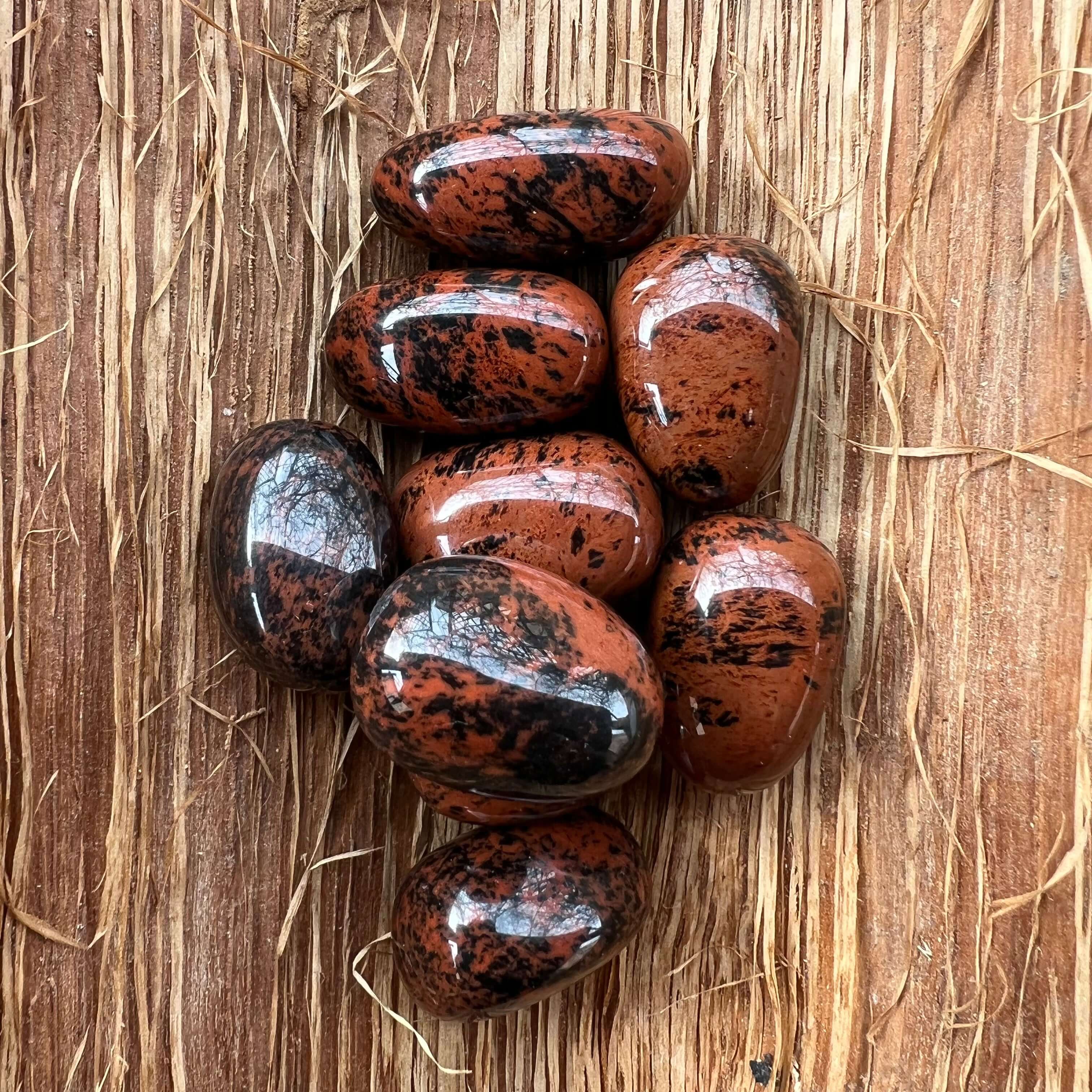 A mahagóni obszidiánt olyan kőnek tekintik, amely aktiválja a három alsó csakrát. Ösztönzi a kreativitást, a szenvedélyt, a szexualitást, és védelmező szerepe is van.