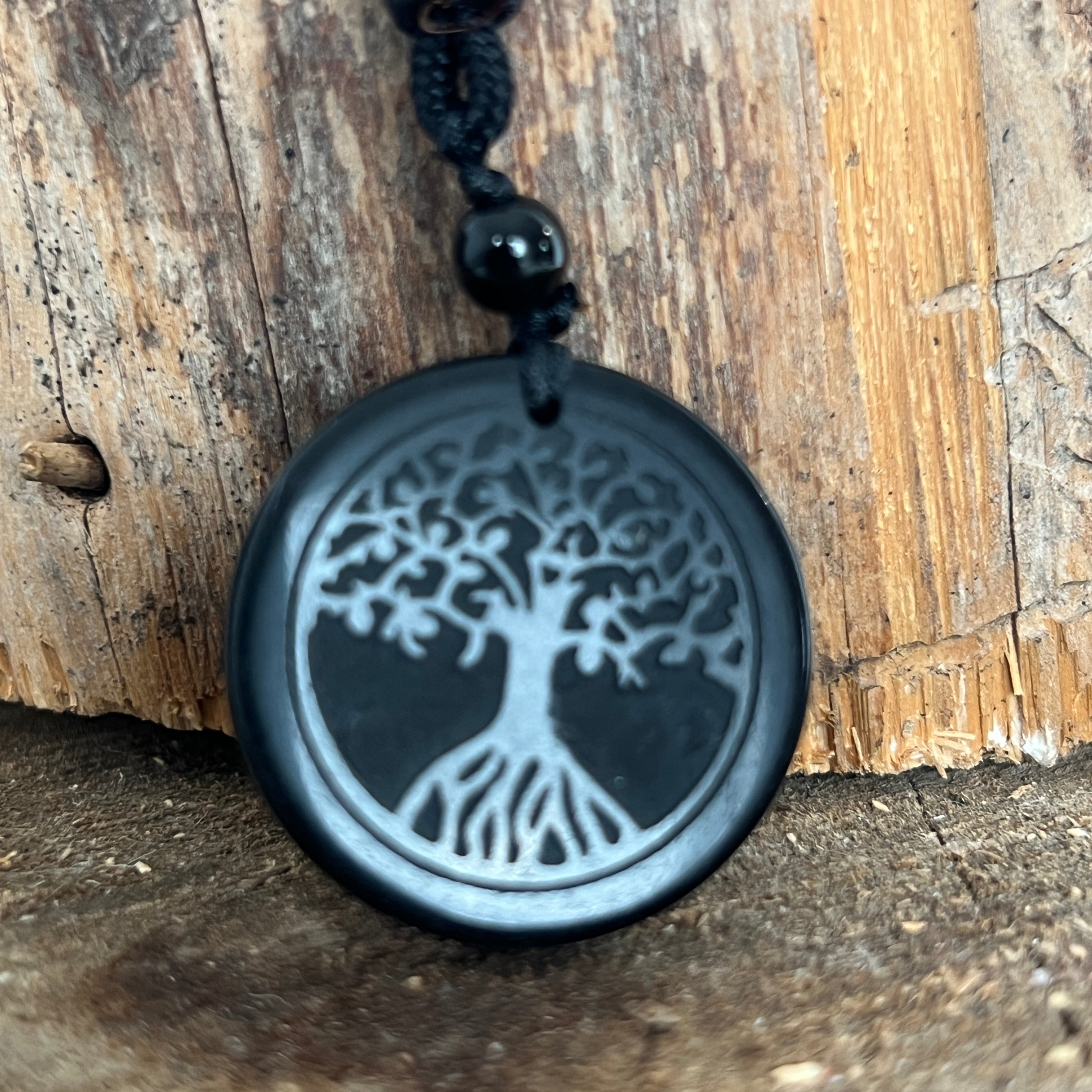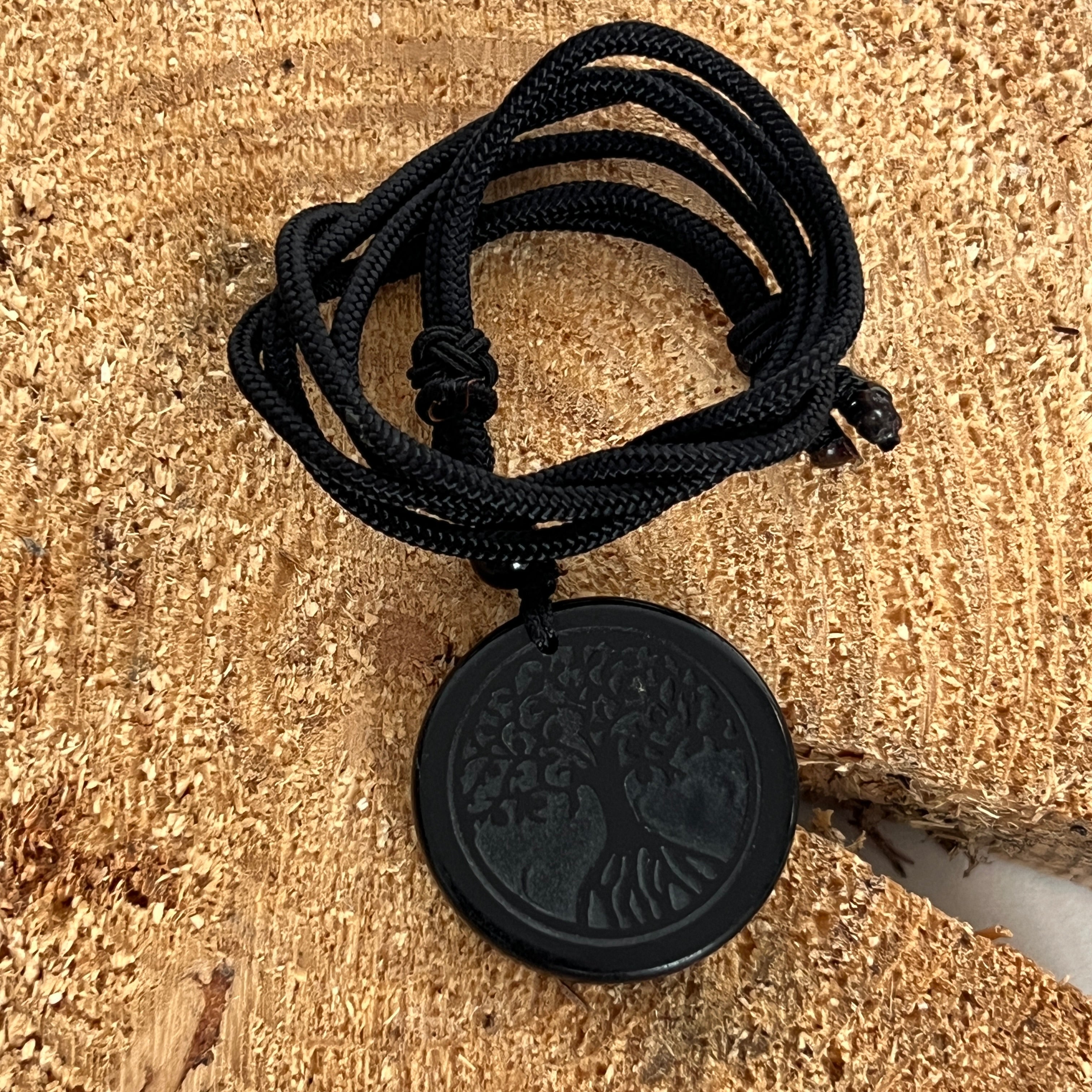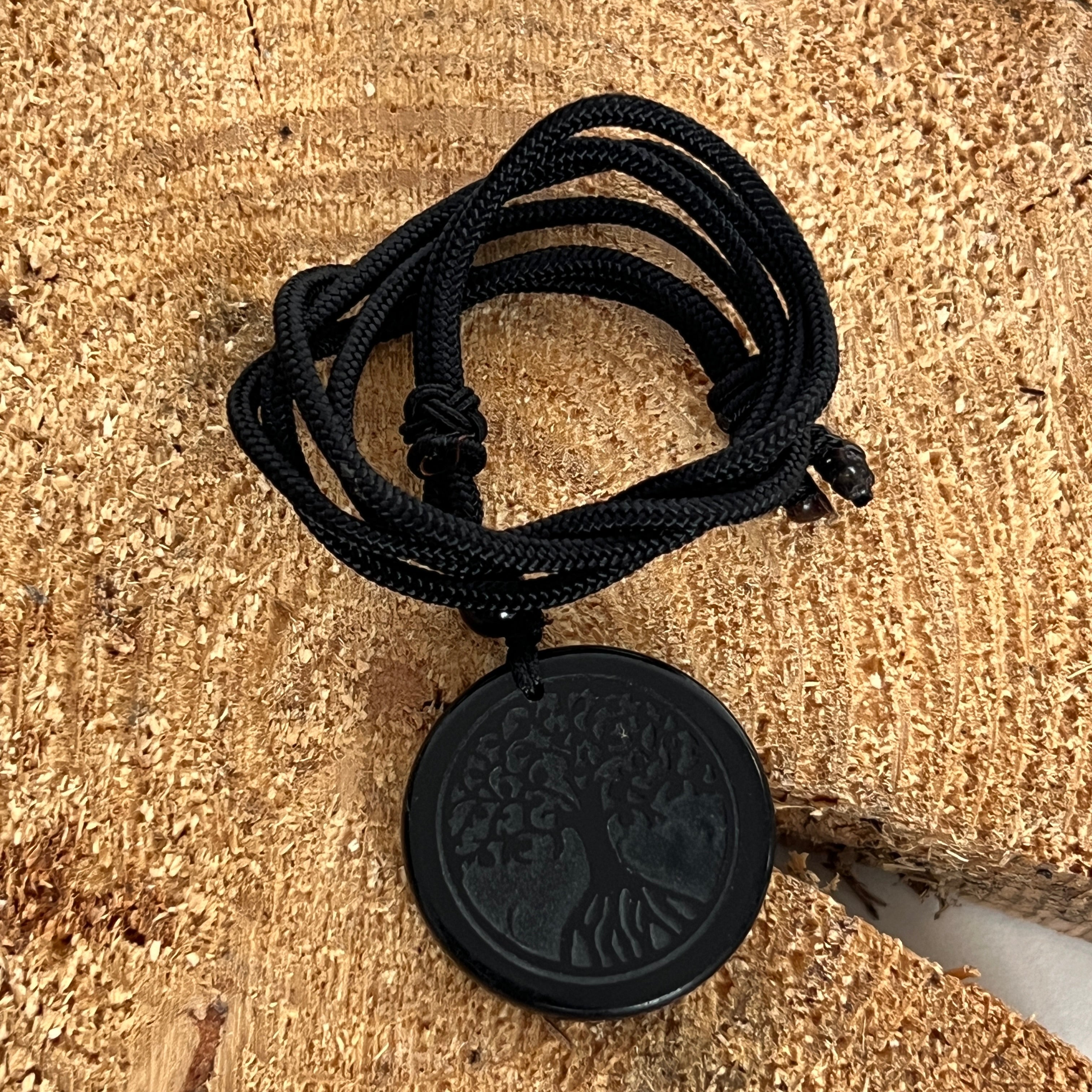 Obszidián medál zsinórral | Élet fája