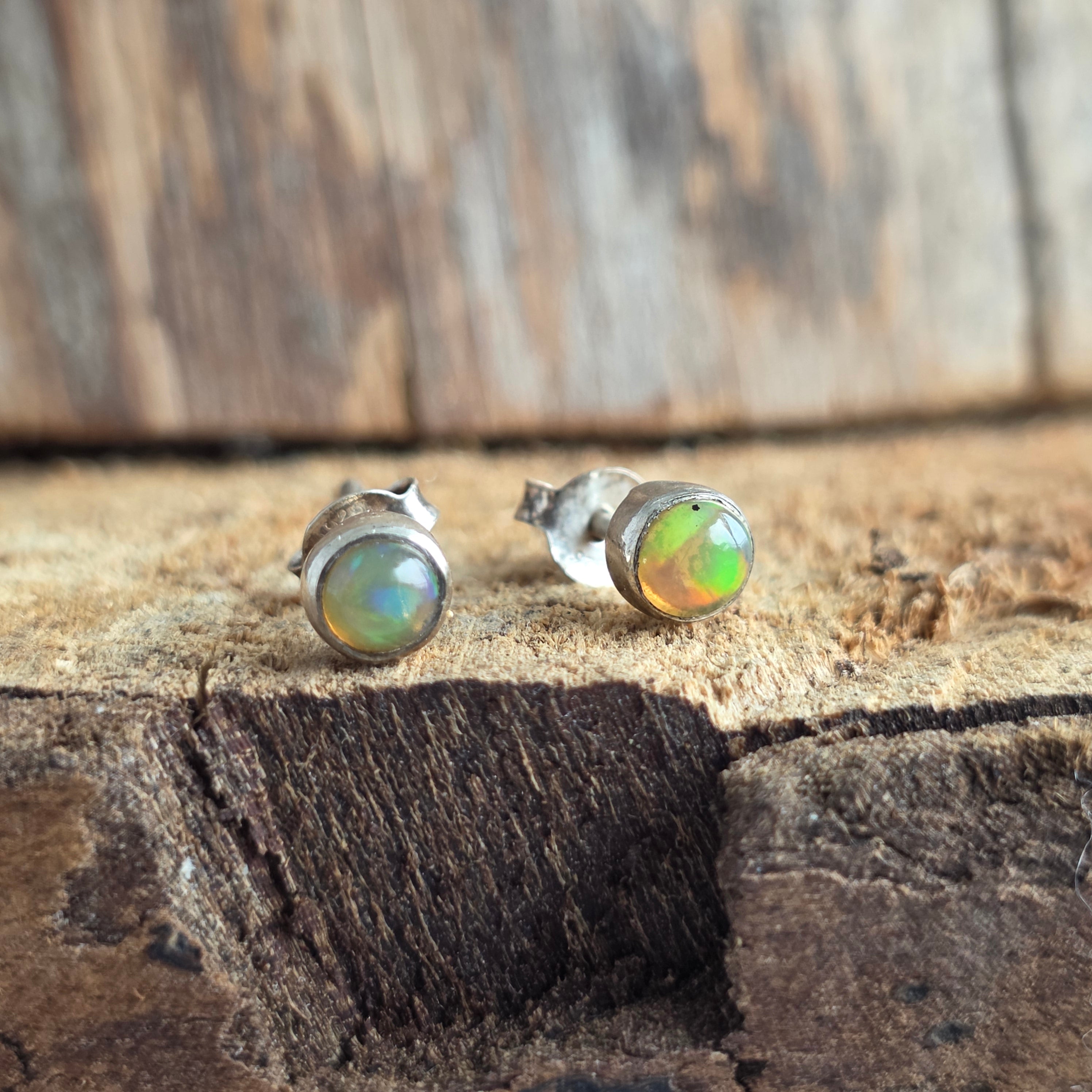 Opál bedugós ezüst fülbevaló Round | Modell 3