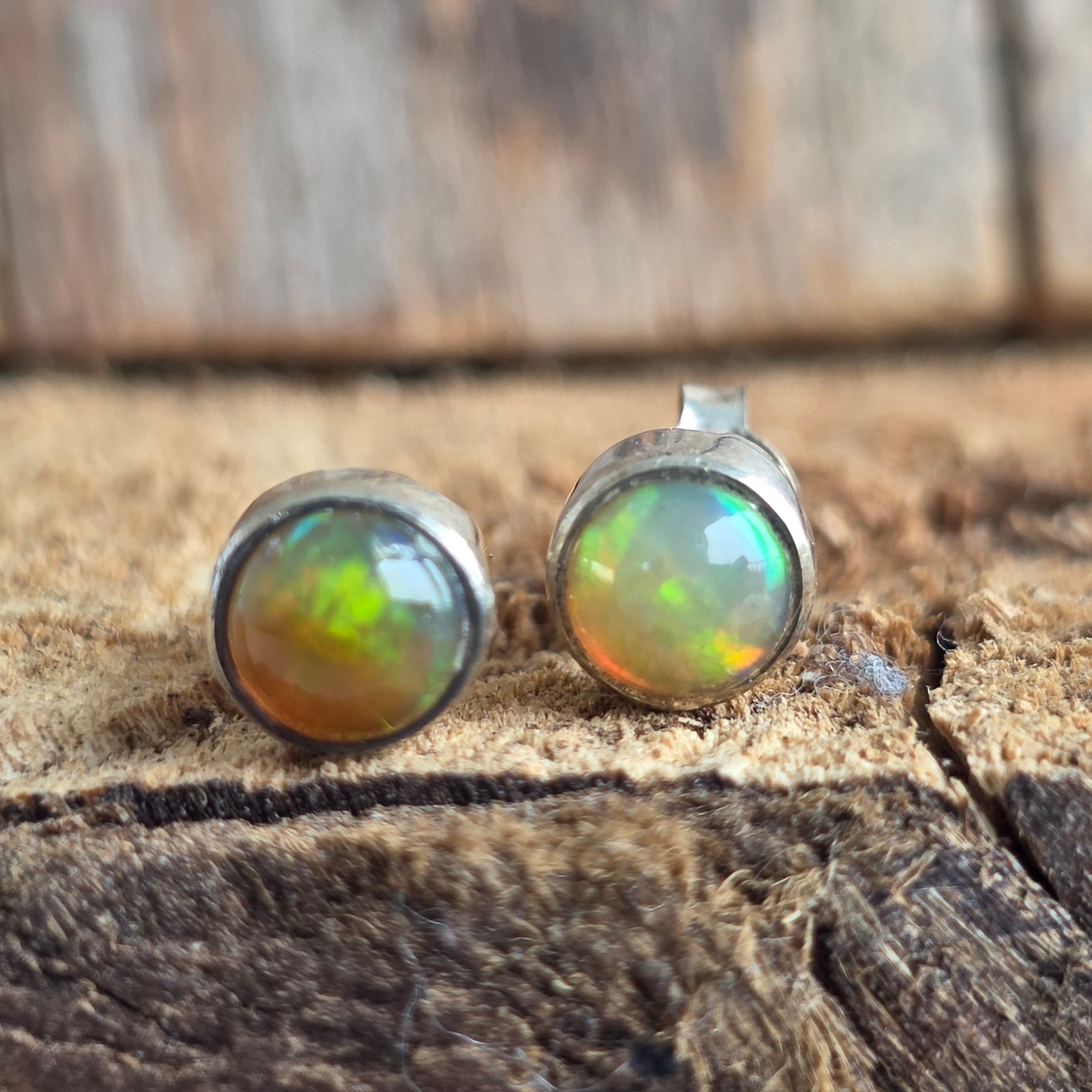 Opál stift fülbevaló ezüstből, kerek | 1. modell