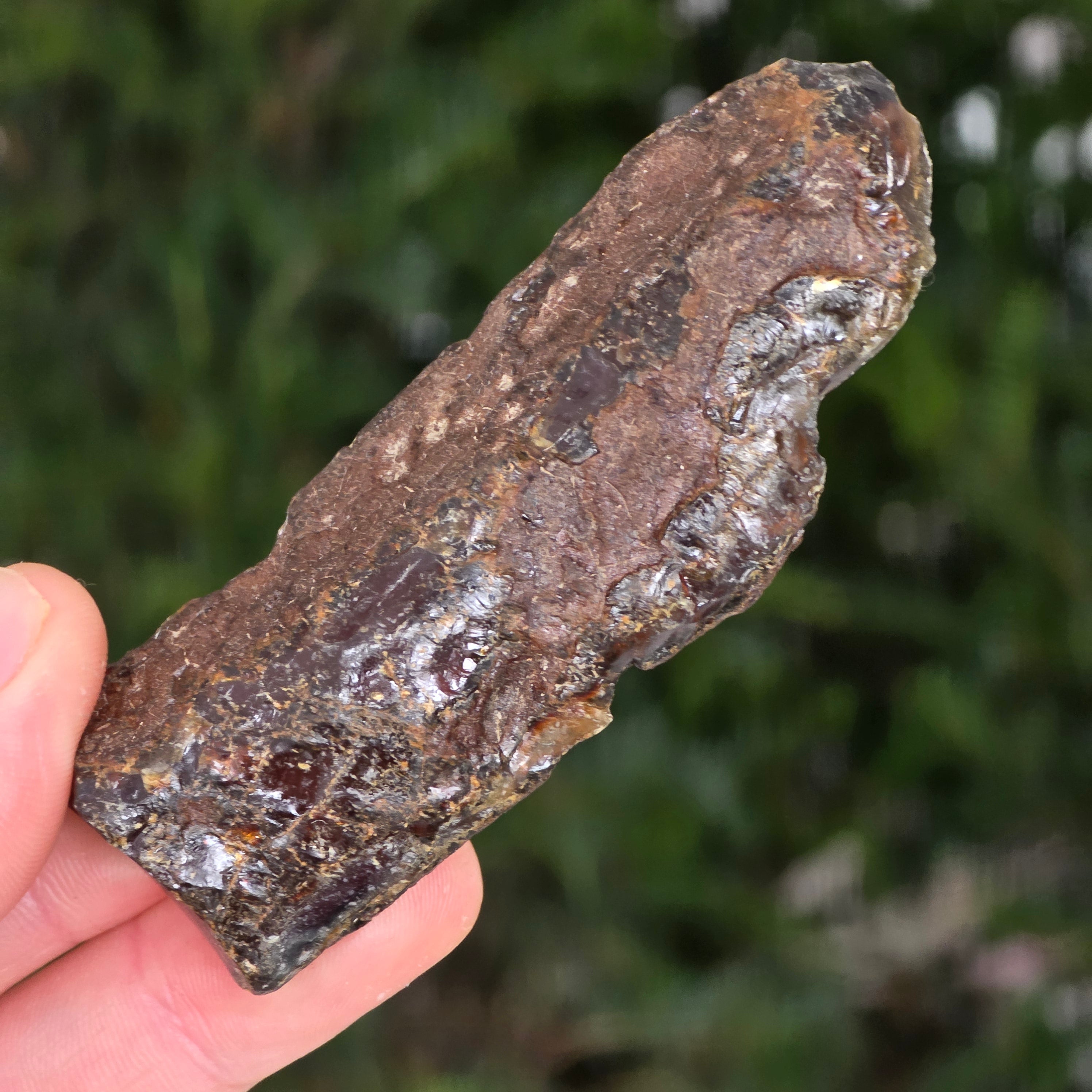 A bemutatott darab nyers, feldolgozatlan, szabálytalan felületű és természetes alakú. A színe a meleg sárgától a sötétbarnáig változik, textúrája opálos, enyhén áttetsző részekkel. Gyűjtők, geológiai érdeklődésűek vagy oktatási célú kiállítás számára ideális.