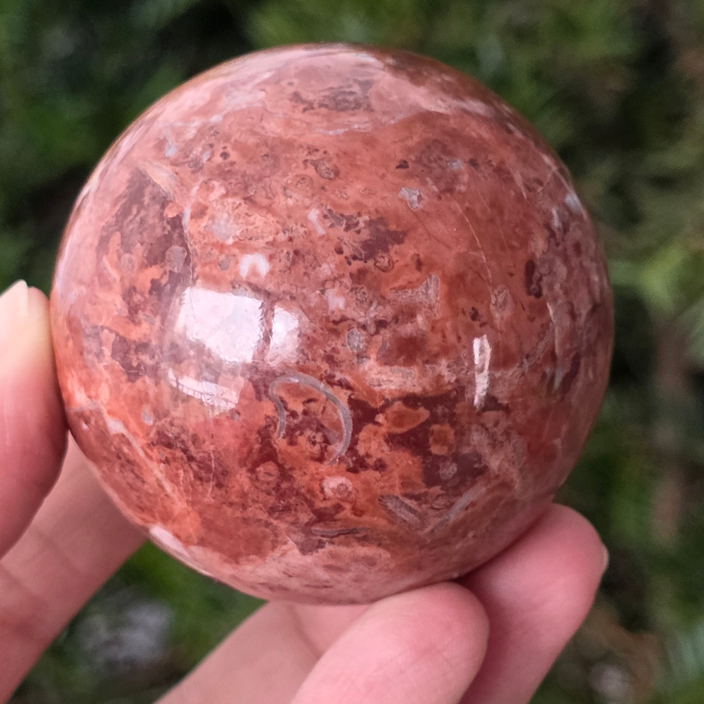 Ez a természetes vörös jázpayz gömb ez egy visszafogott, de mély jelenlét – állandó emlékeztető a földi kapcsolatra, a stabilitásra és a bátorságra, hogy az ember saját erejében összpontosítson.
