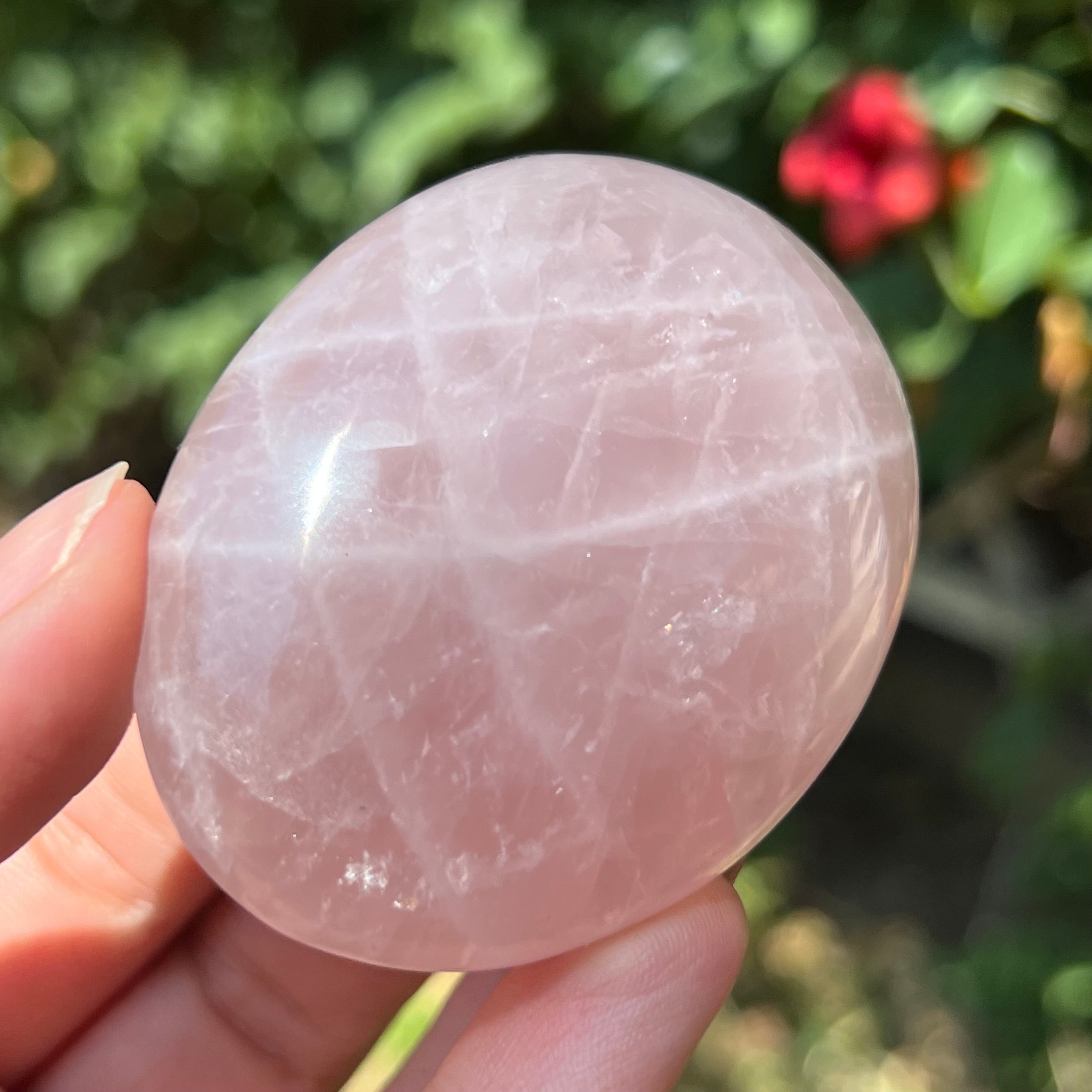Rózsakvarc pálmakő m1, méret: 6,2 * 4,7 * 2,5 cm