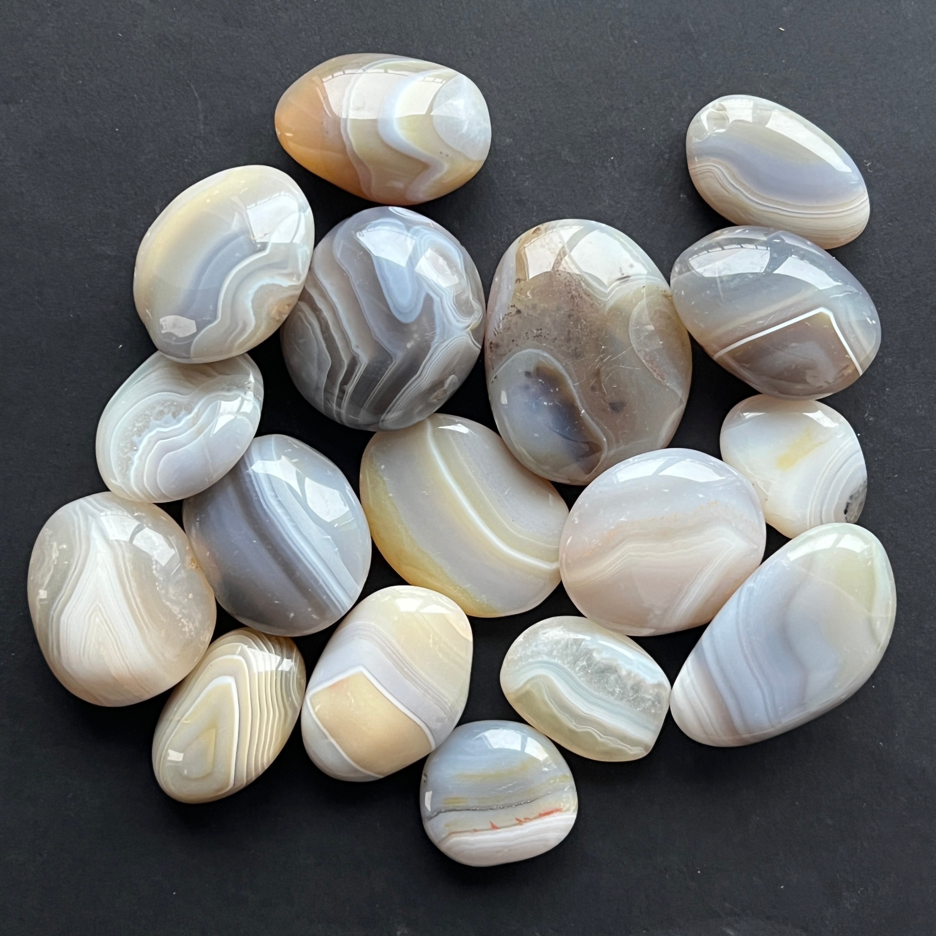 A szürke achát a mély béke és stabilitás köve, meghívás a megalapozottságra és a nyugalomra. Finom szürke tónusai áttetsző csíkokkal és gyöngyházfényű tükröződésekkel a csendes reggeli felhőkre emlékeztetnek – a semlegesség és az egyensúly szimbóluma.