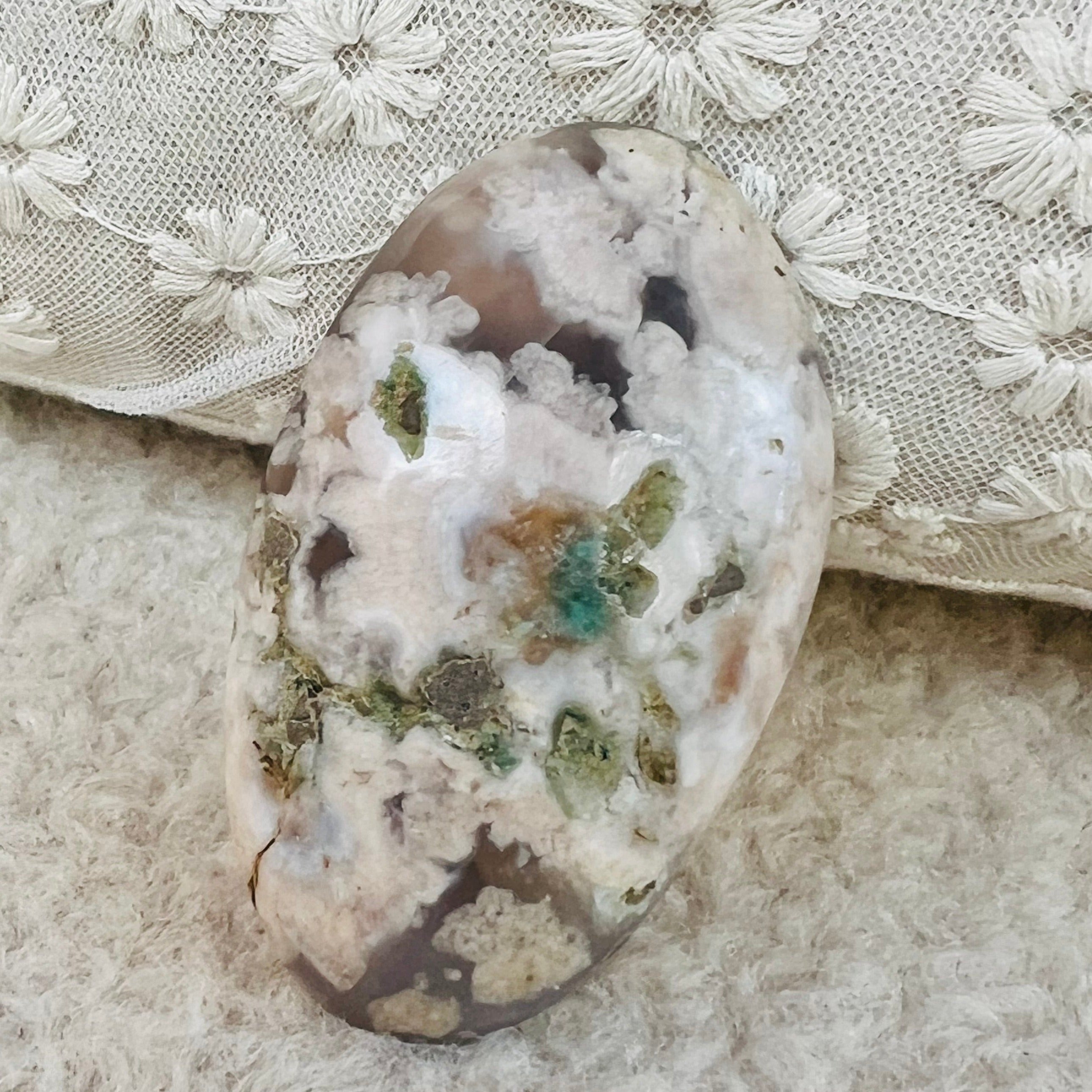 A virág achát használható meditációhoz, ékszerként vagy természetes megjelenést kölcsönözhet annak a térnek, amelyben elhelyezik.