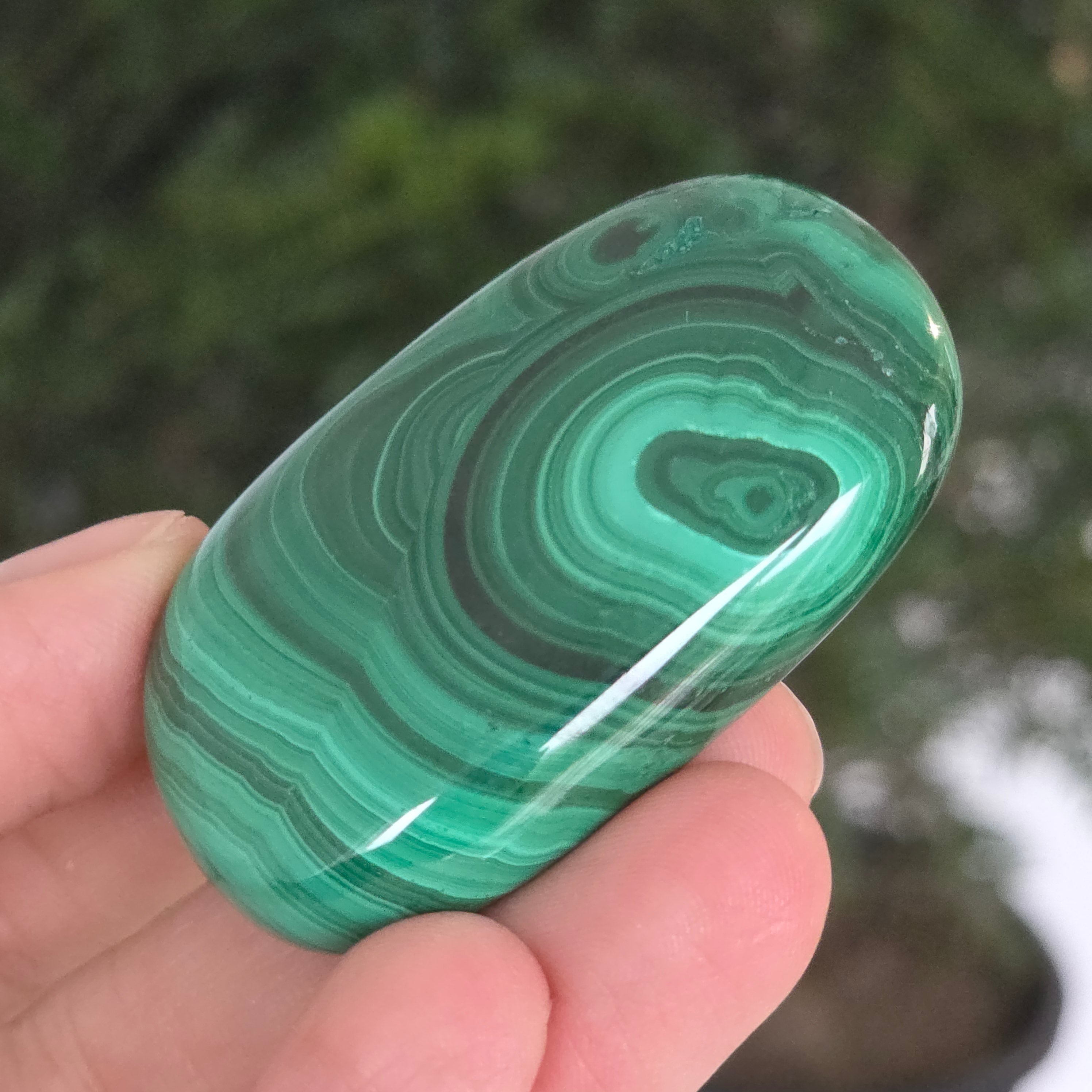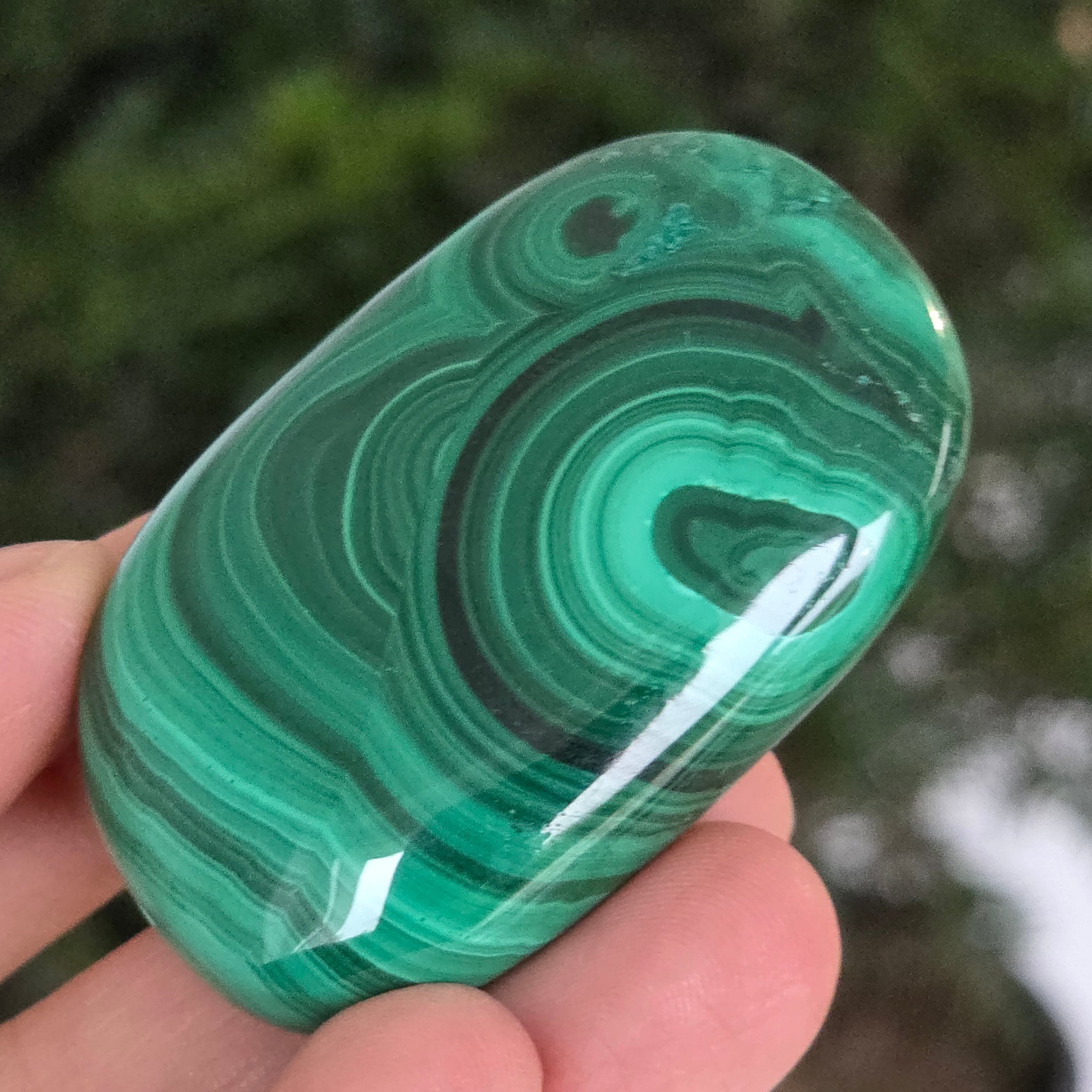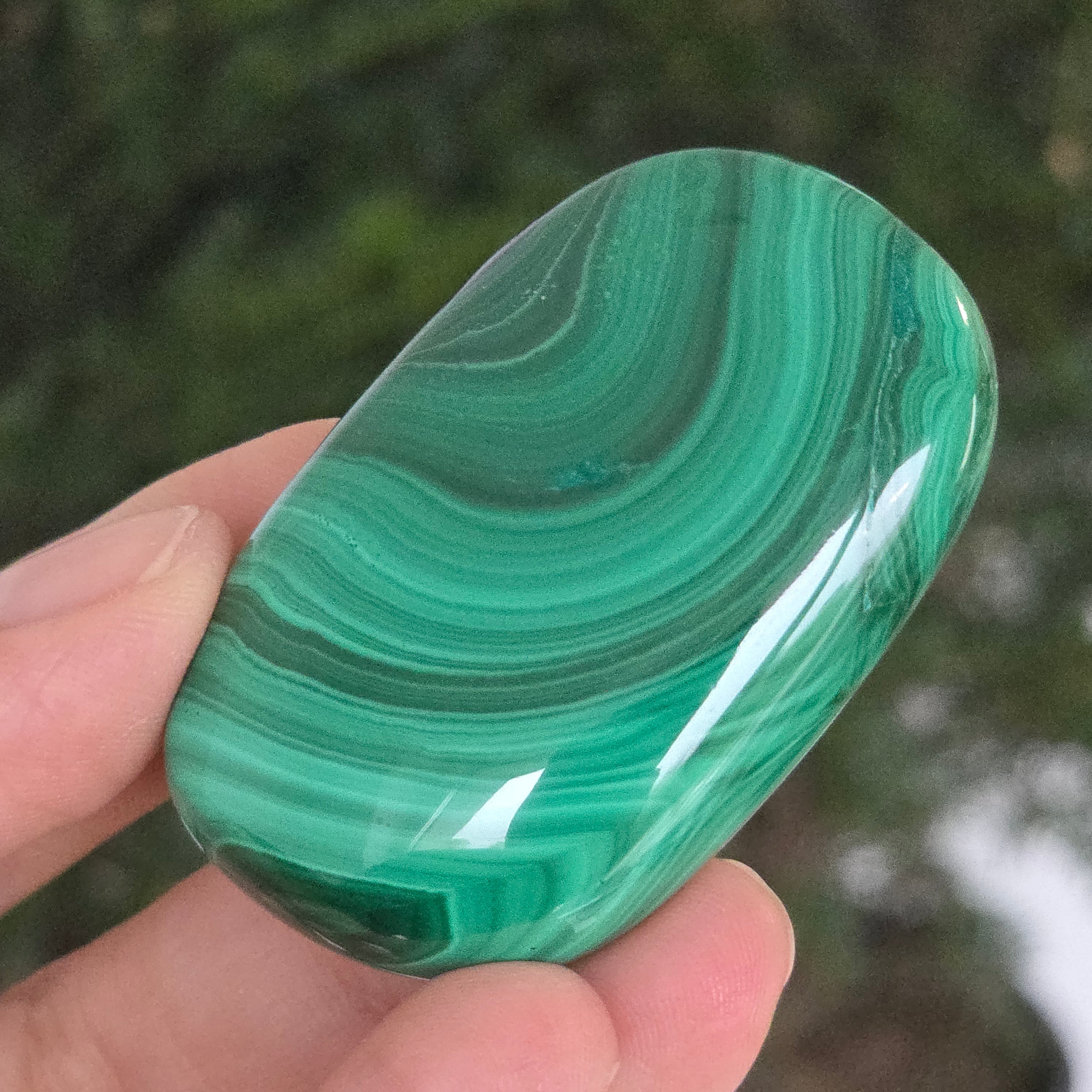 Egy palmstone, amely úgy tűnik, hogy a Föld élő energiájával lélegzik. Ez az egyedi természetes malachit darabhipnotikus hullámokat tár fel az intenzív smaragdzöld árnyalataiban, körök és koncentrikus csíkok kíséretében, mintha maga a természet faragta volna. A sima, tökéletesen csiszolt textúra kényelmesen illeszkedik a kézbe, meleg és védelmező rezgést sugározva.