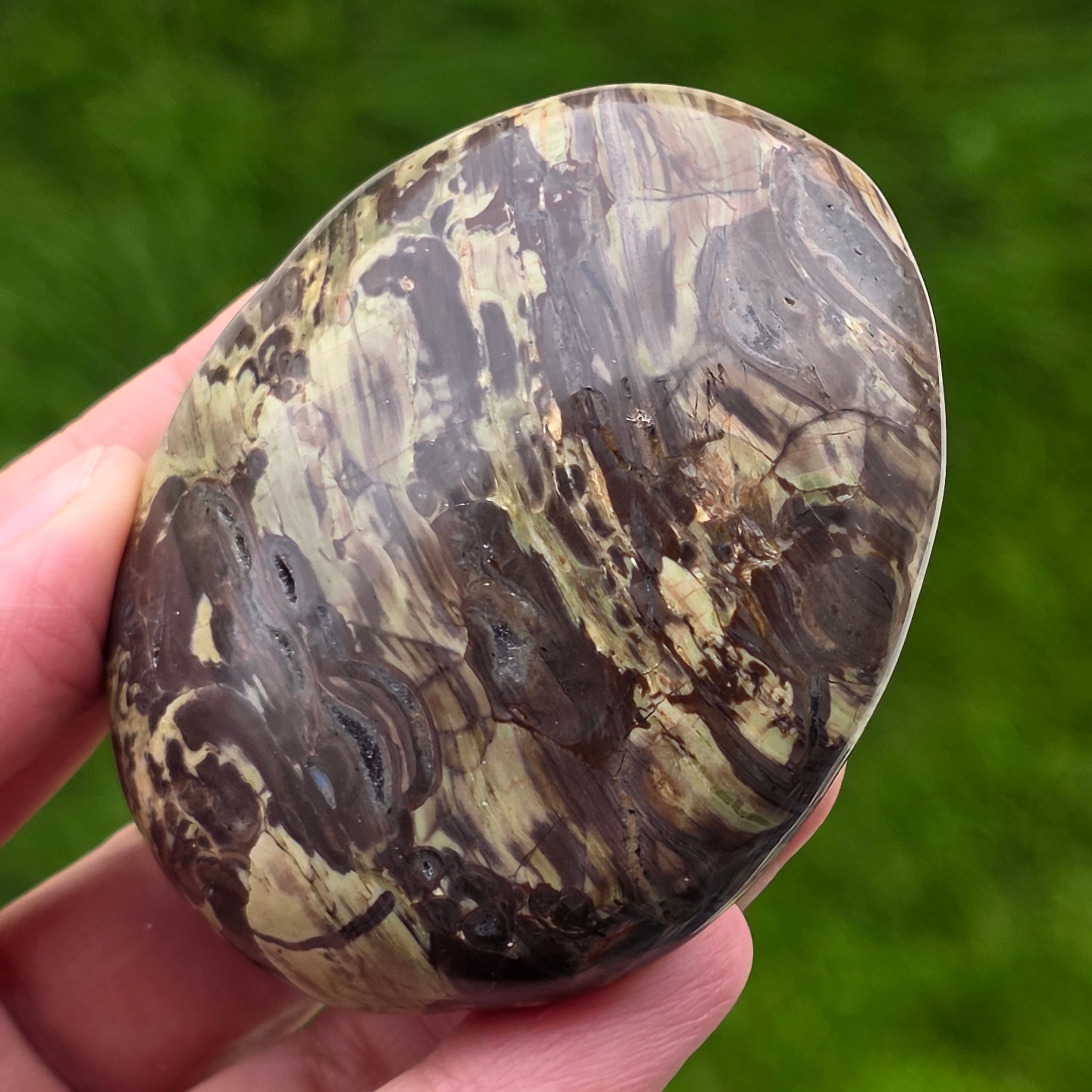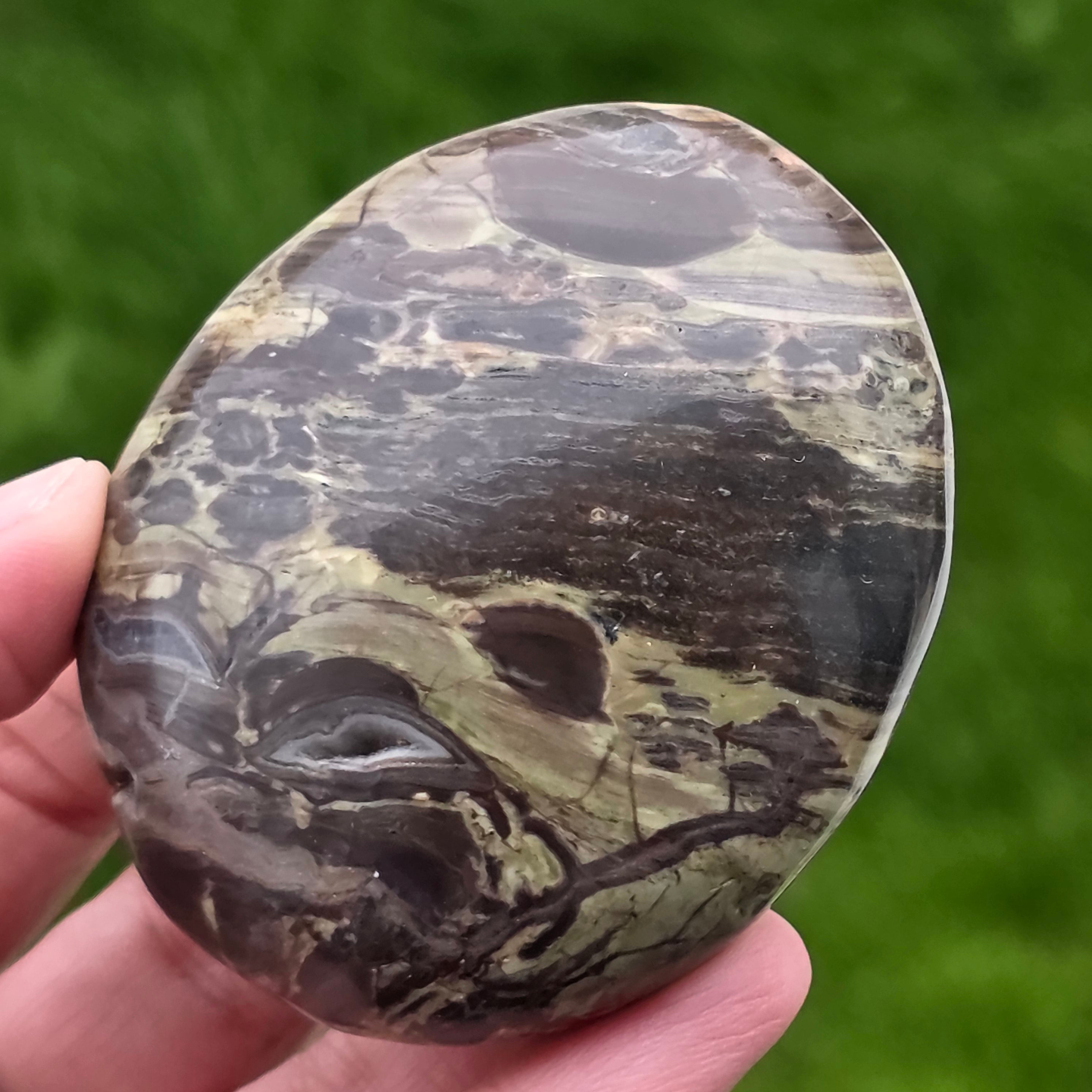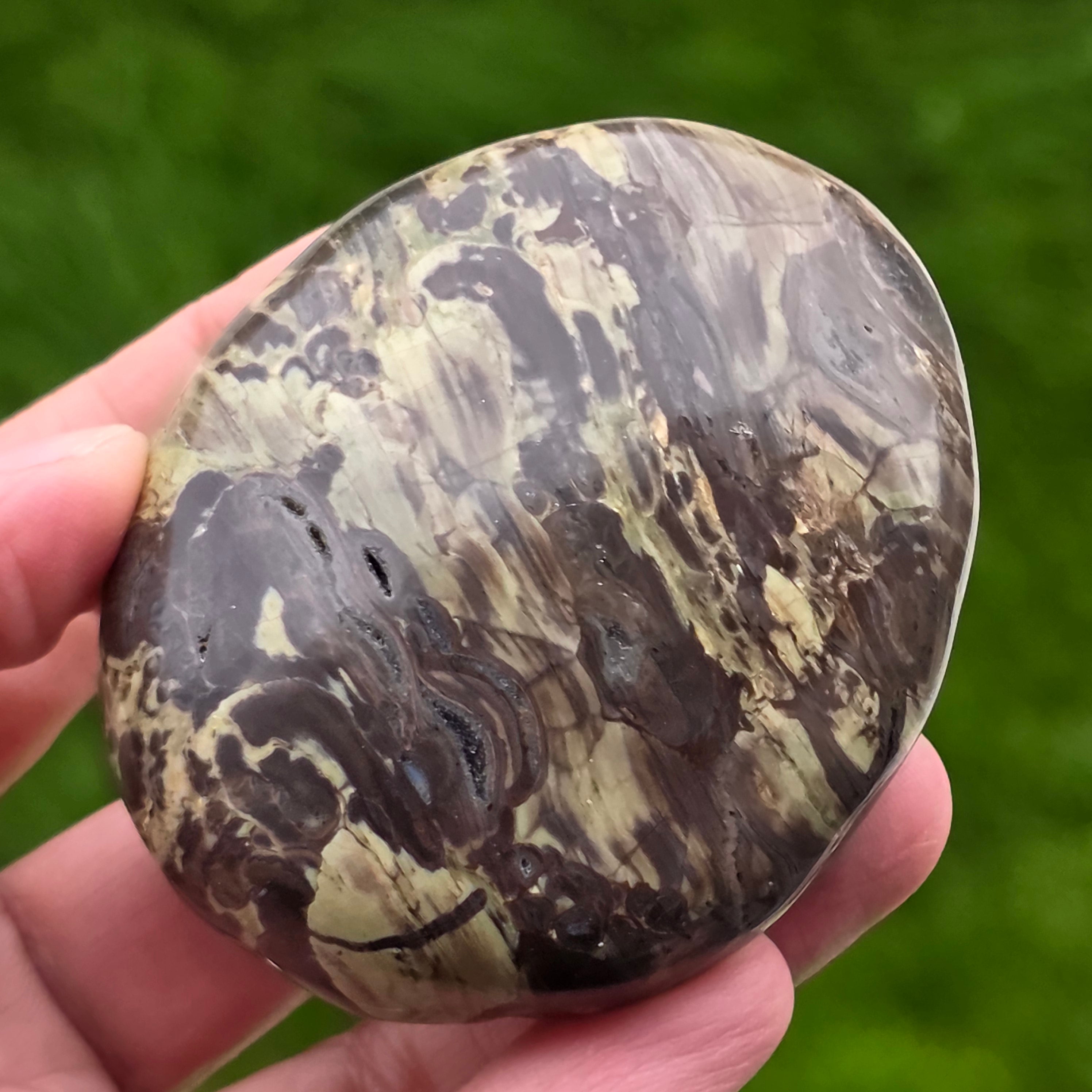 Minden palmstone egyedi, természetesen formálódott a magma áramlása és az évezredek geológiai türelme által. Ez egy földelő kő, a megújulás és a stagnáló érzelmek felszabadításának eszköze – amulett azoknak, akik saját hamvaikból szeretnének újjászületni.