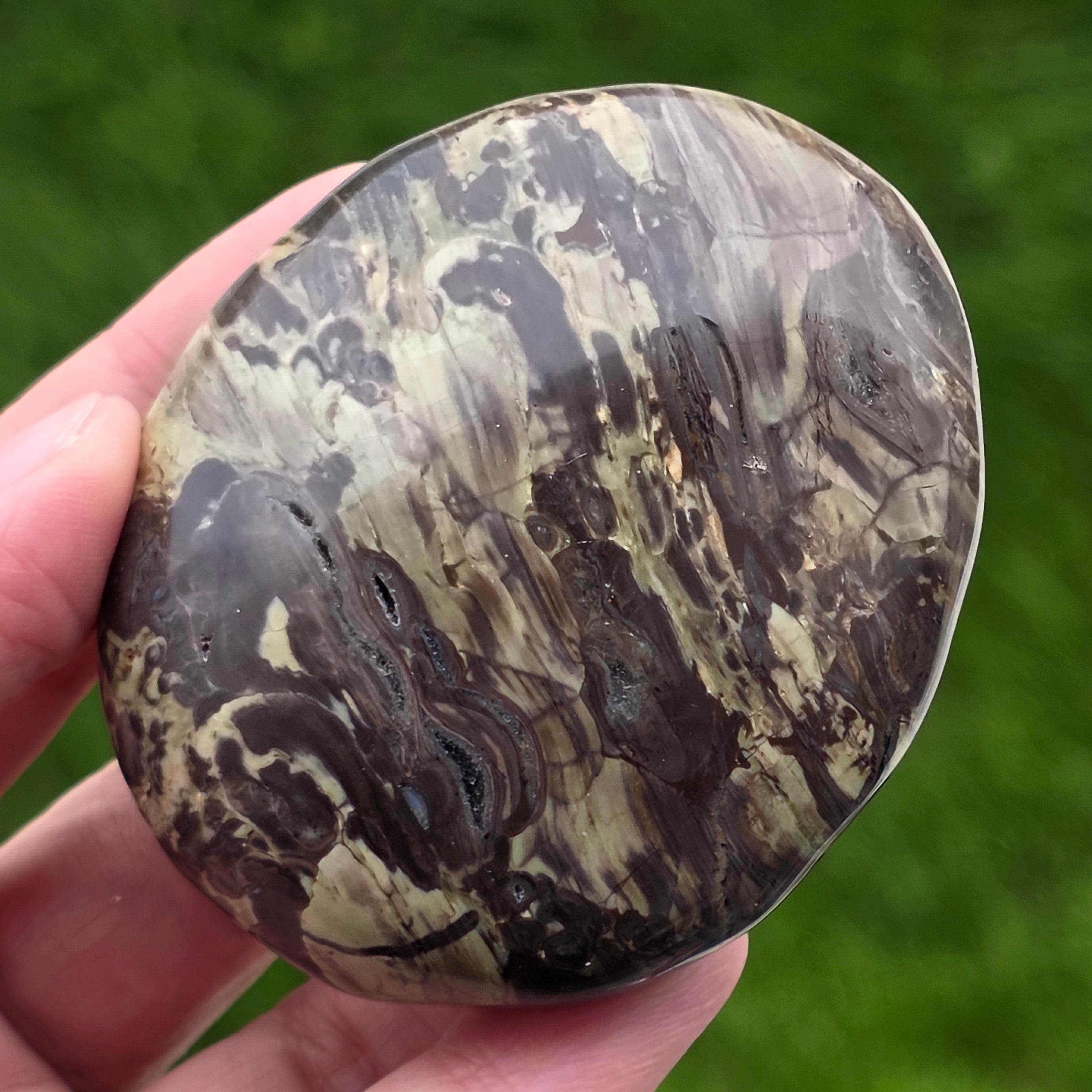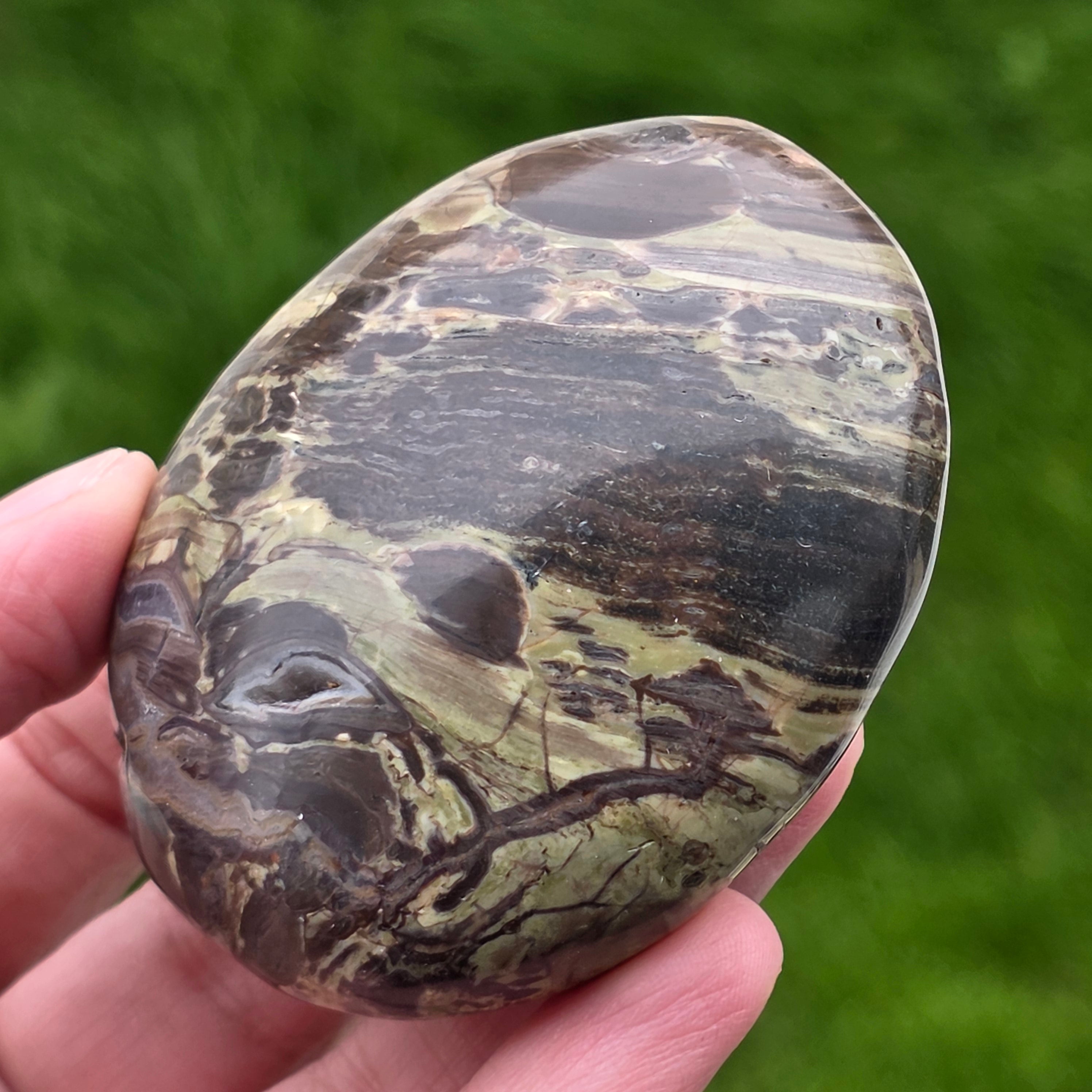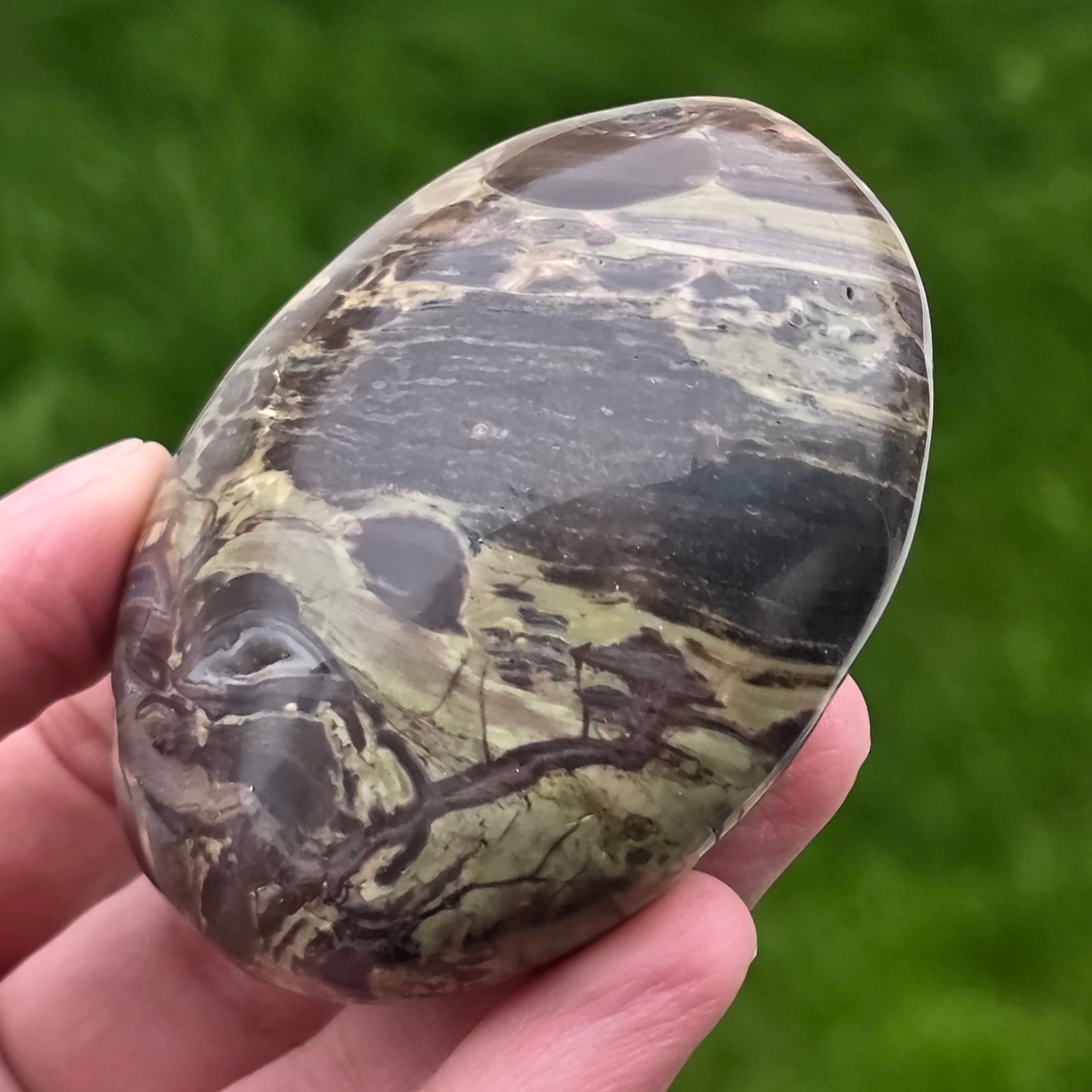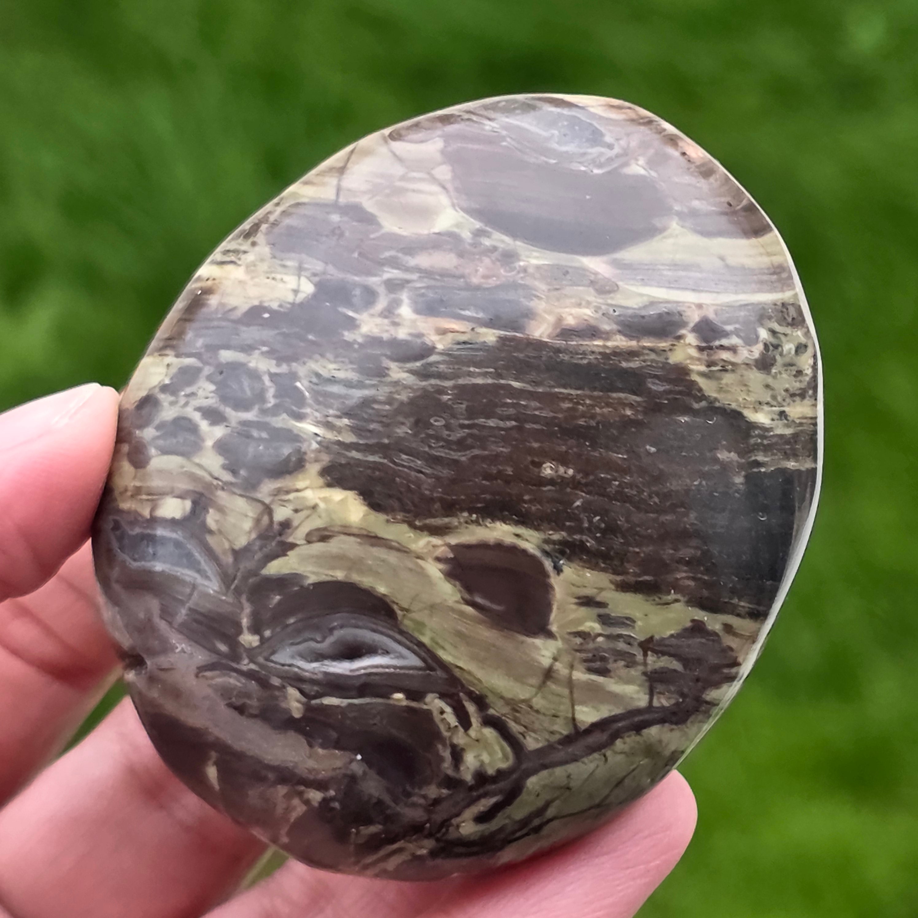 Minden palmstone egyedi, természetesen formálódott a magma áramlása és az évezredek geológiai türelme által. Ez egy földelő kő, a megújulás és a stagnáló érzelmek felszabadításának eszköze – amulett azoknak, akik saját hamvaikból szeretnének újjászületni.