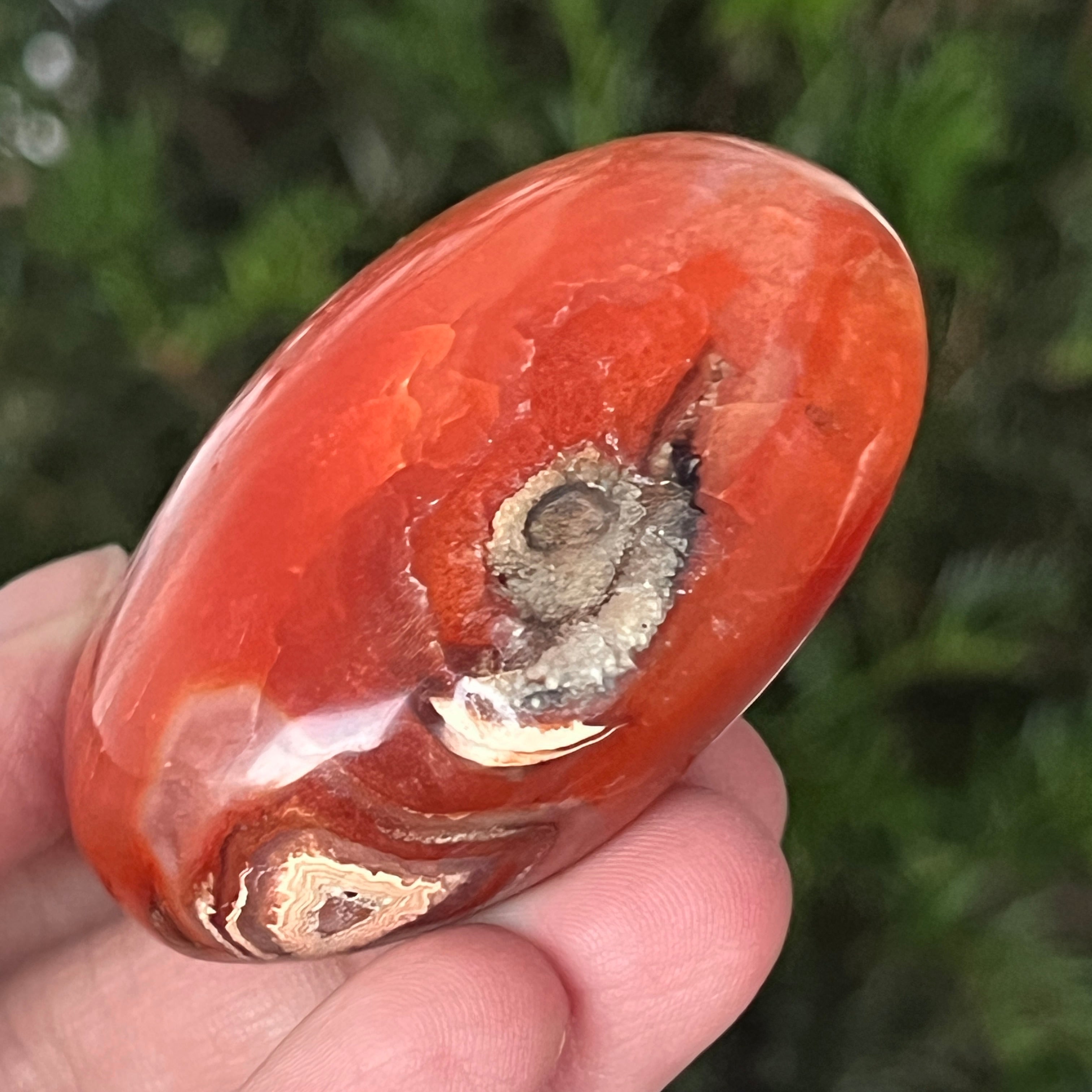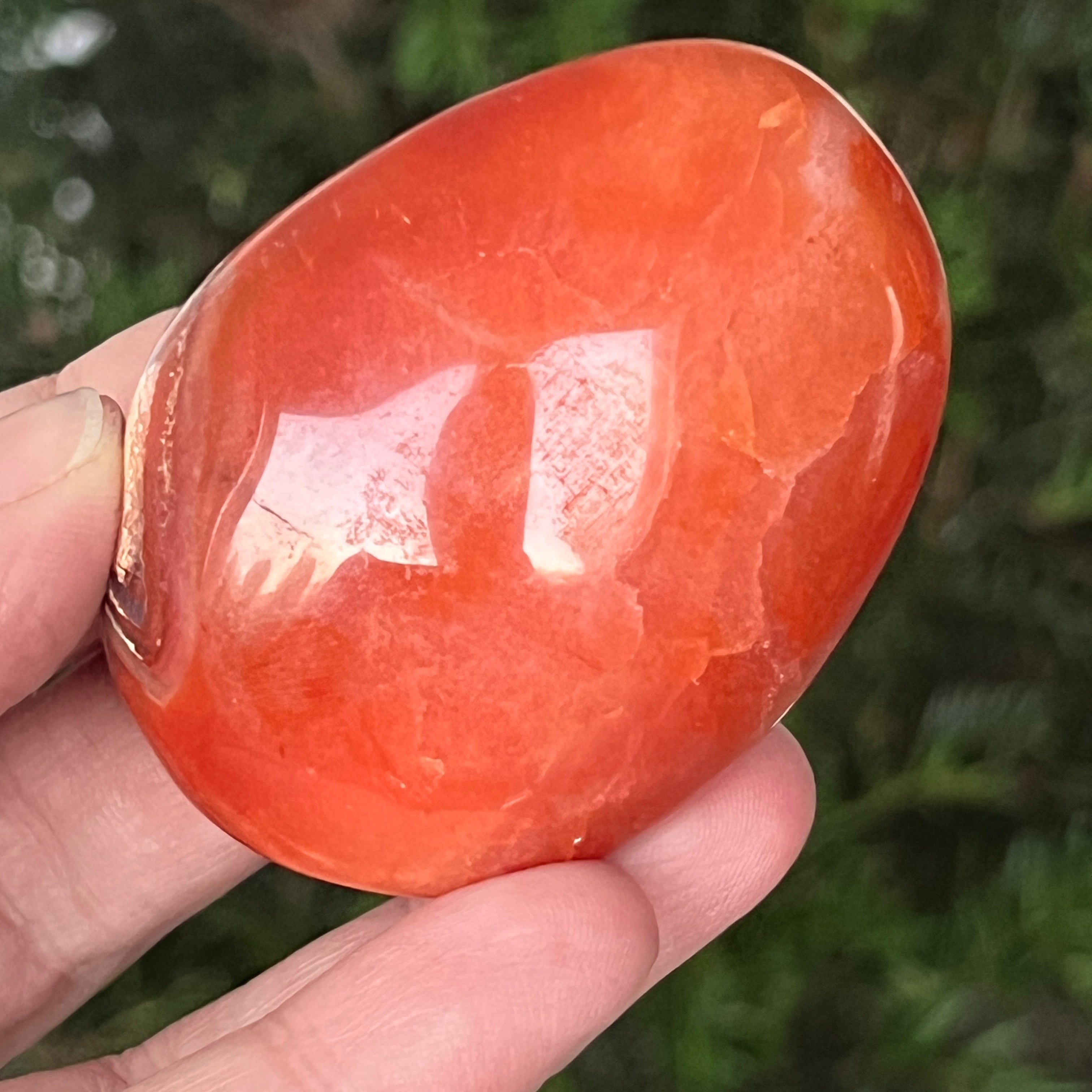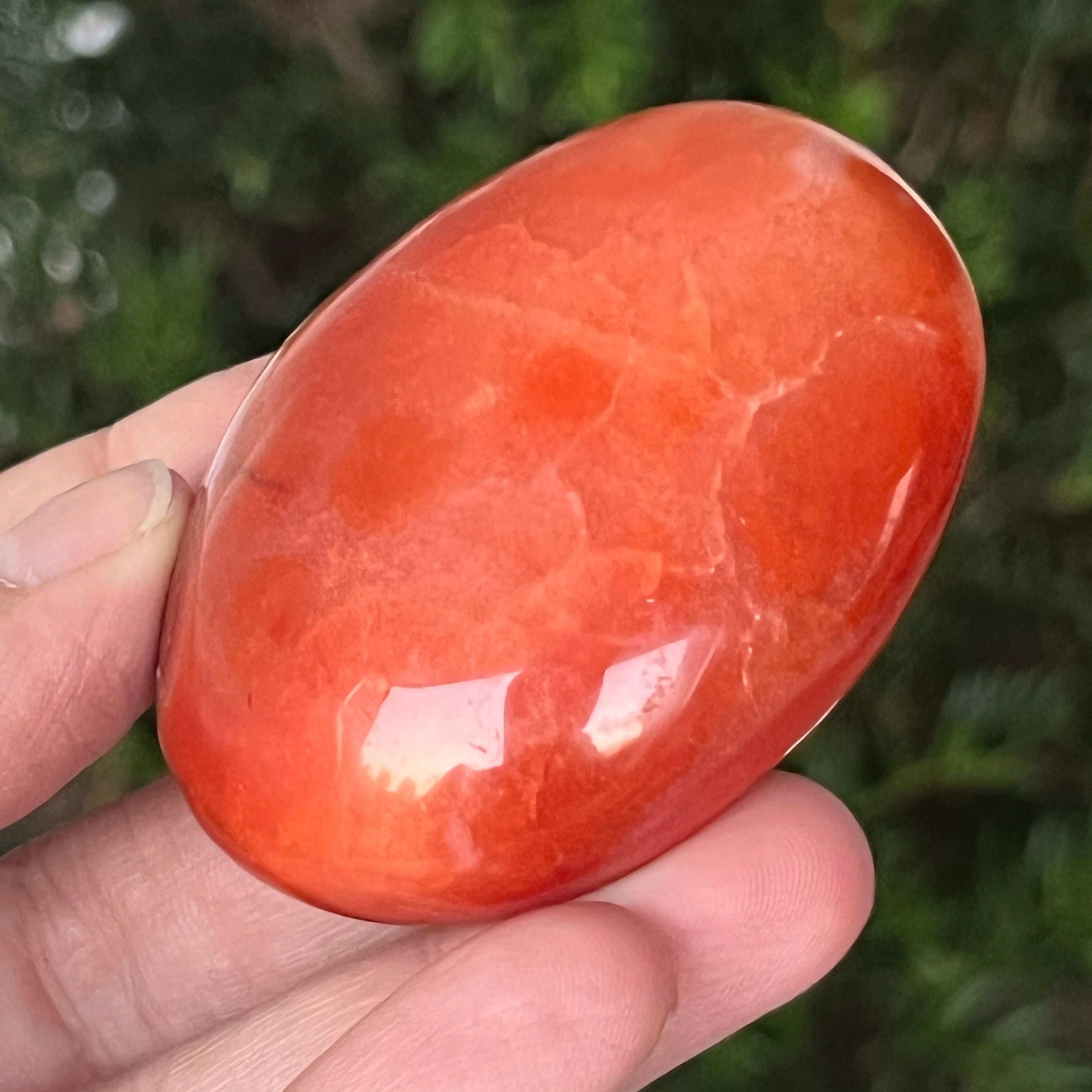 Ha a kezedben tartod, ez a természetes karneol palmstone a pozitív energia és a belső tisztaság eszközévé válik. Használható meditációhoz, földelő gyakorlatokhoz, vagy egyszerűen dekoratív tárgyként, amely meleget, optimizmust és gyengéd erőt sugároz.