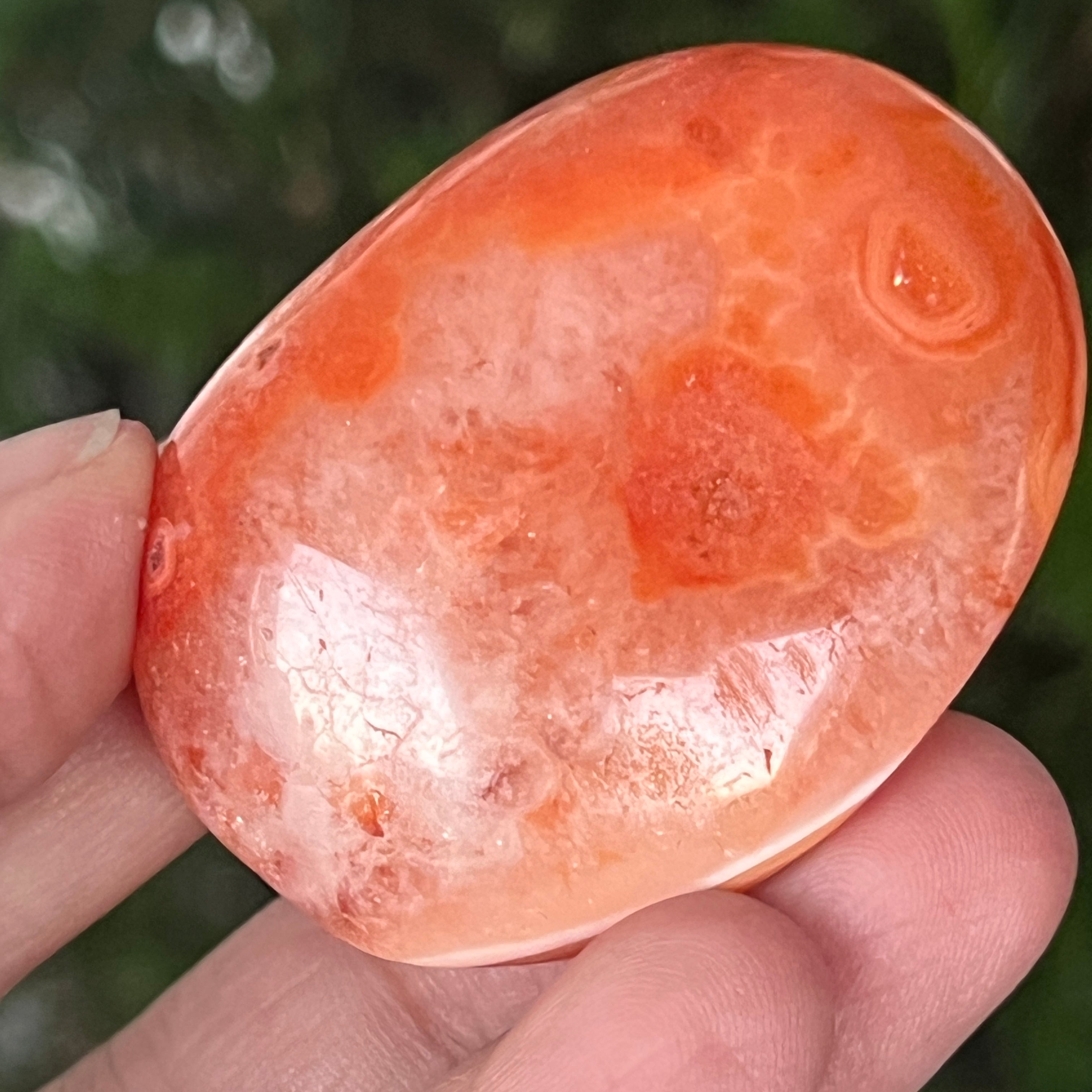 Ha a két tenyered közé fogod, ez a természetes karneol palmstone a pozitív energia és a belső tisztánlátás eszközévé válik. Használható meditációhoz, földelési gyakorlatokhoz, vagy egyszerűen dekorációs tárgyként, amely meleget, optimizmust és enyhe erőt sugároz.