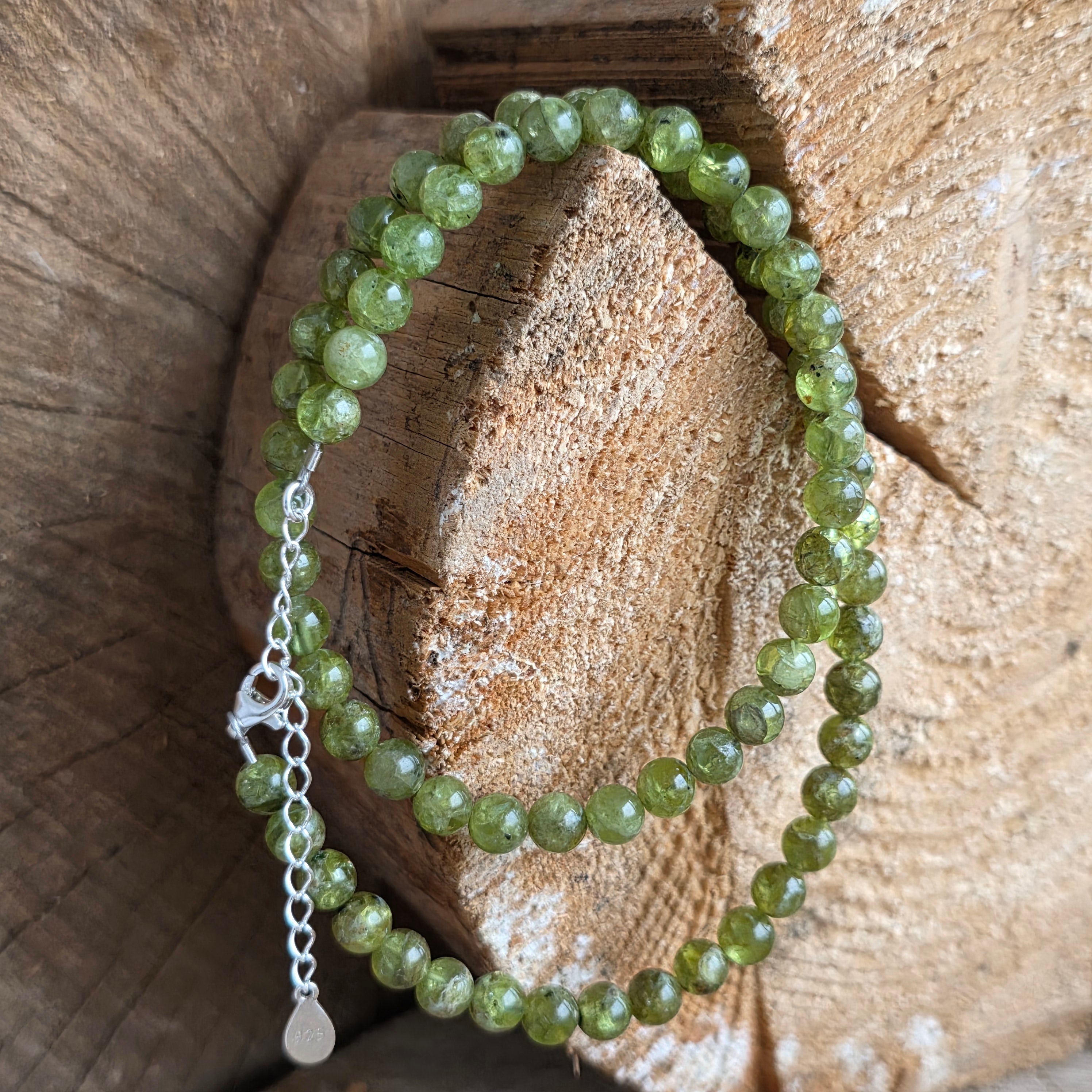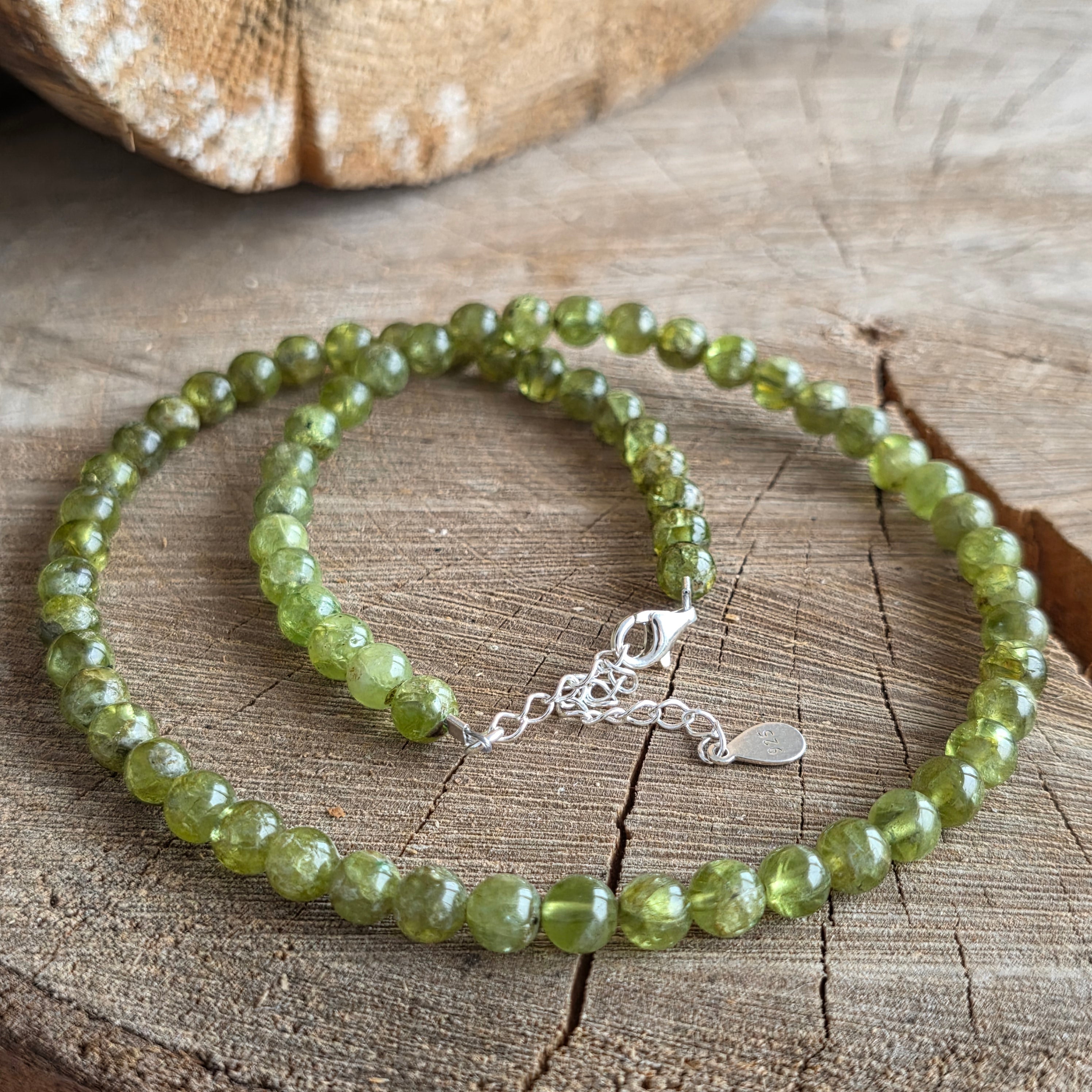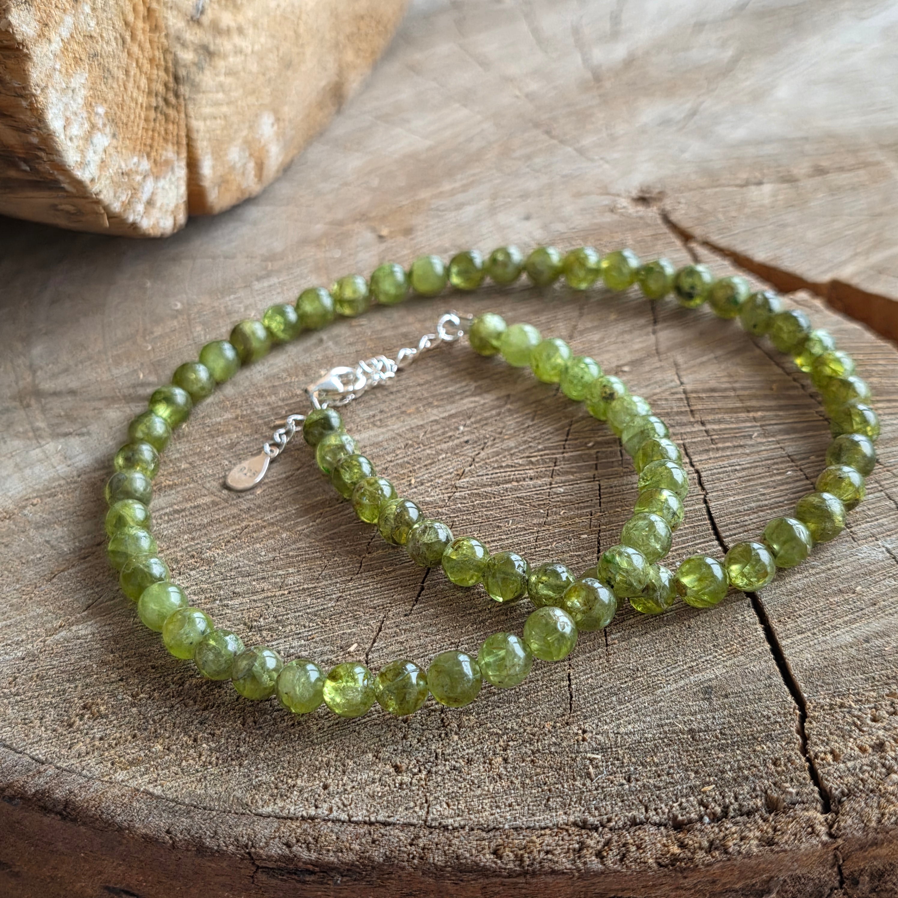 Anyagok: természetes peridot, AAA minőség, 6 mm-es gyöngyök, 925-ös ezüst