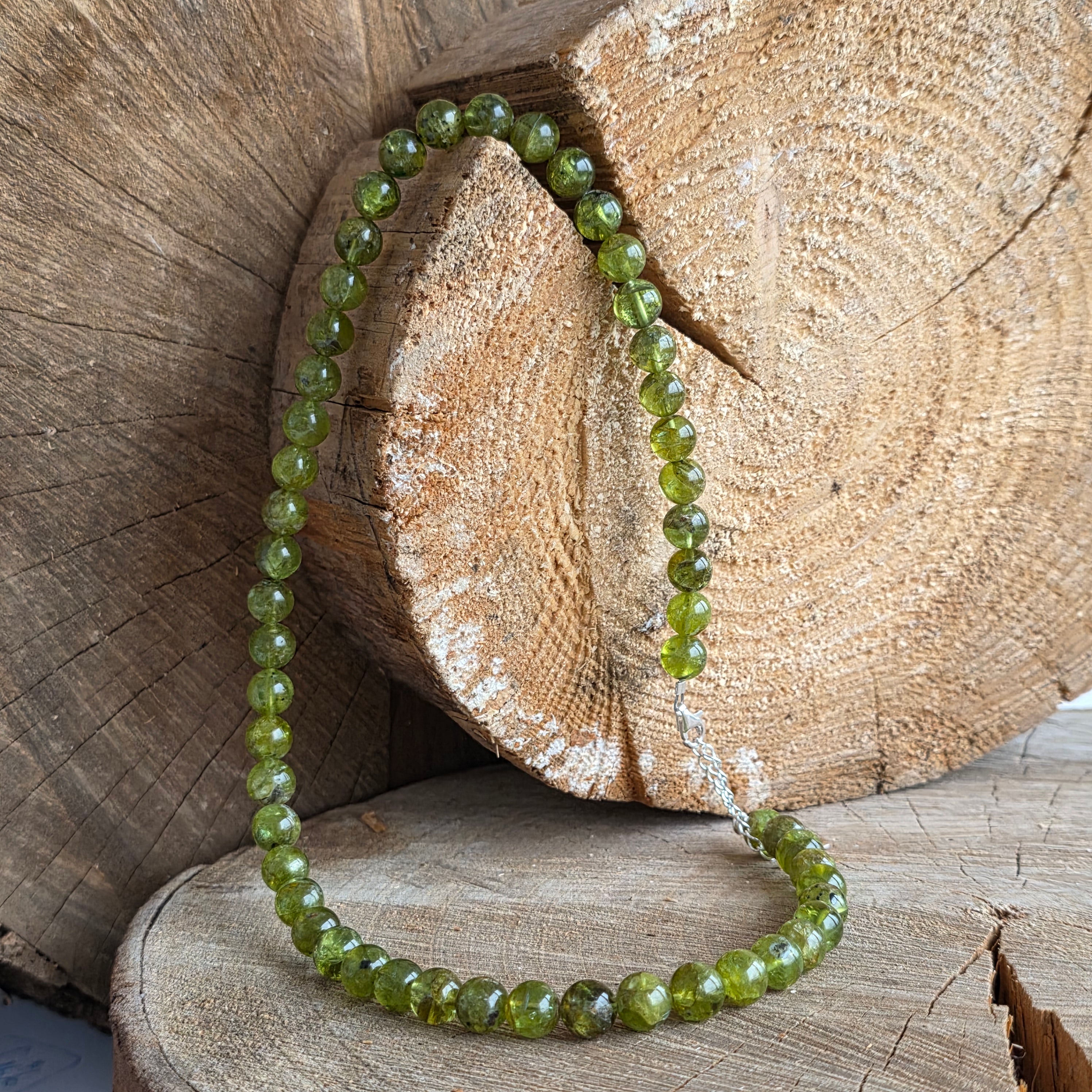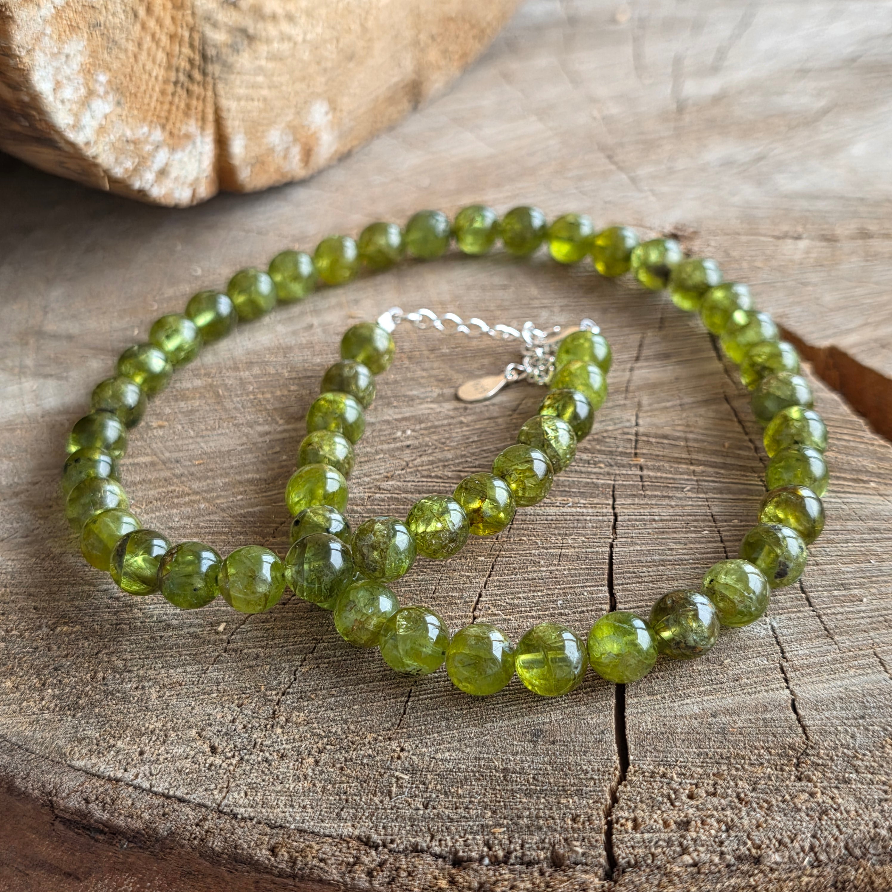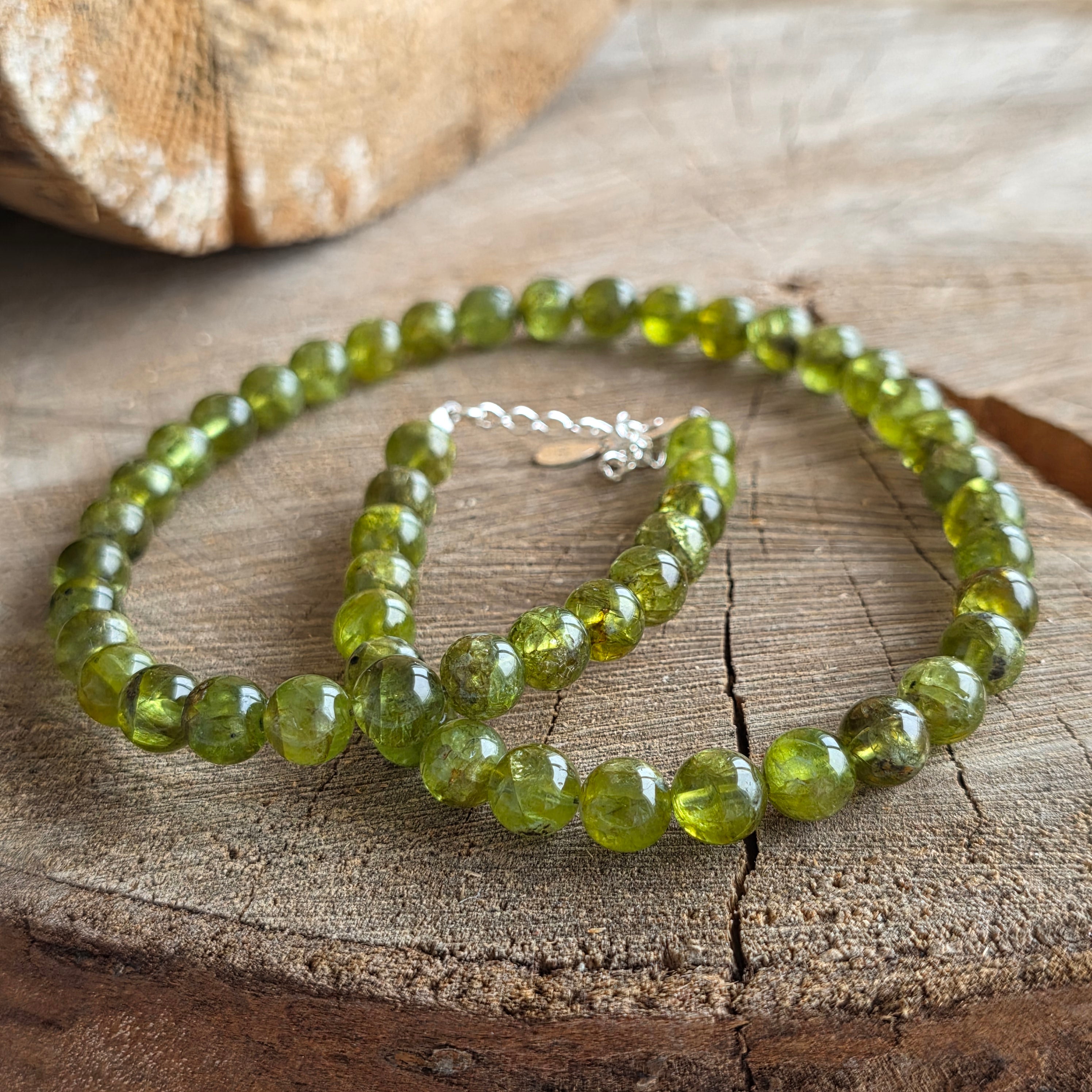 Anyagok: természetes peridot, AAA minőség, 8 mm-es gyöngyök, 925 ezüst
