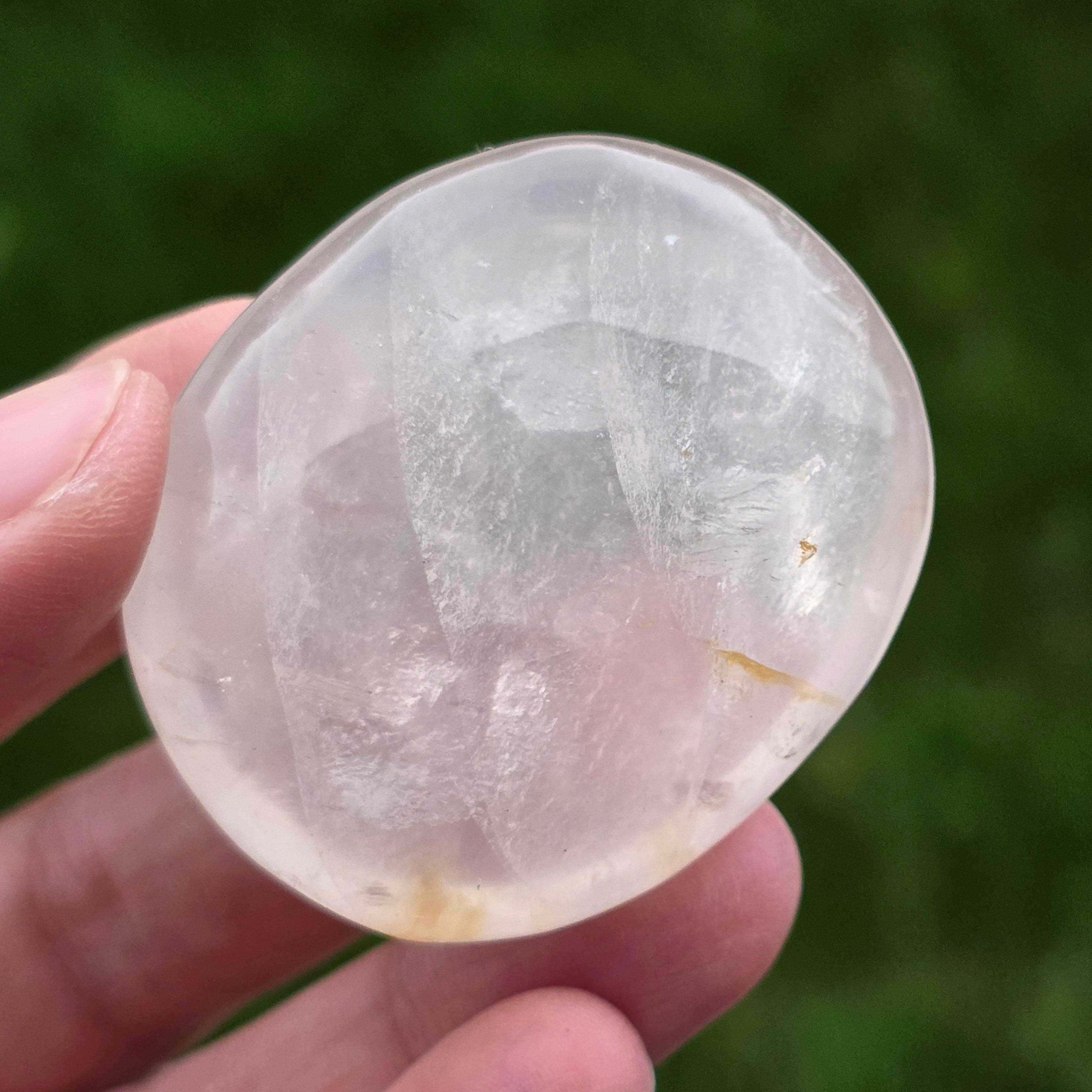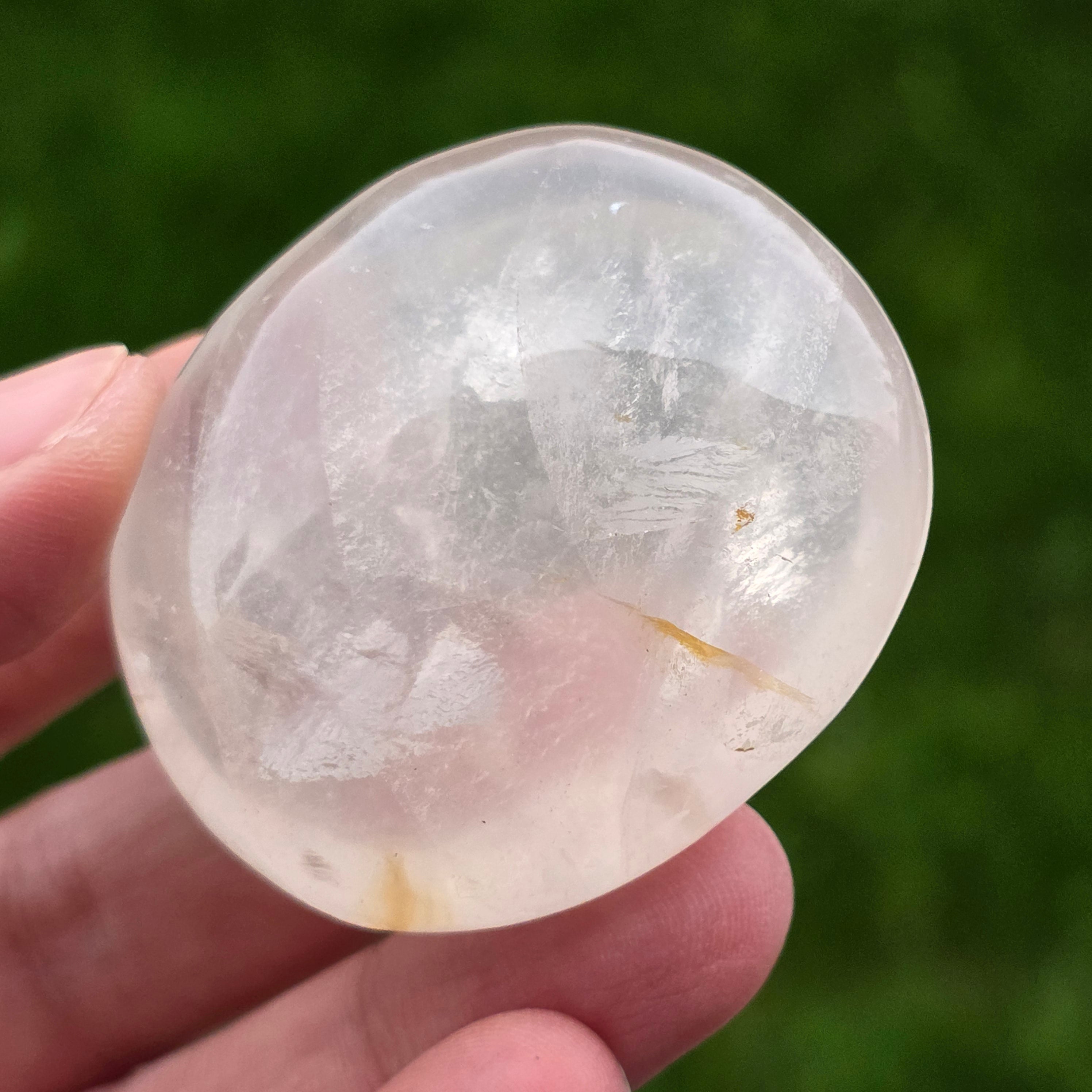 Perlázzal díszített napkő kvarc tenyérkő, 9p modell