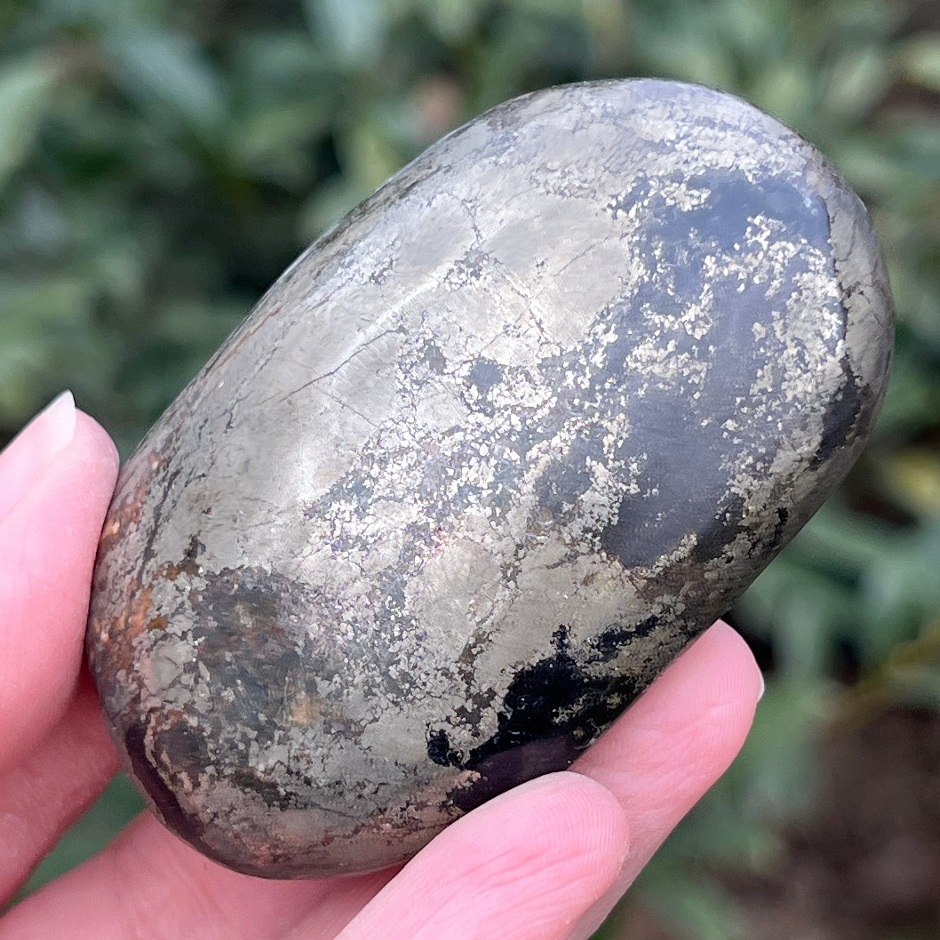 A Pharaoh-kő ritka és lenyűgöző anyag, fekete bazaltból áll, amelyet látványosan átszőnek az aranyszínű piritbetétek.