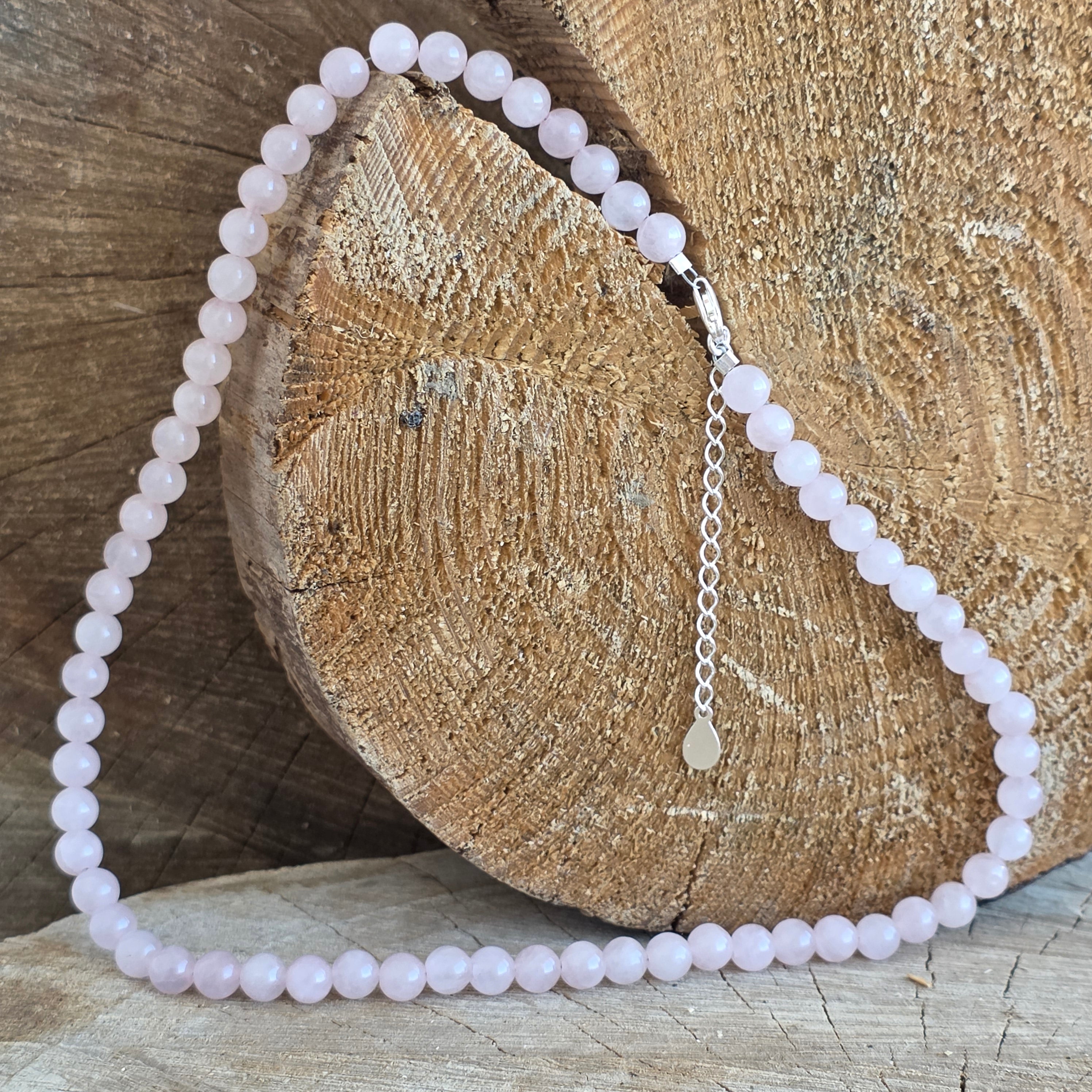Egy nyaklánc, amely meleg és kifejező megjelenést kelt, 4 mm-es fazettás tulit gyöngyökből készült, kiegyensúlyozott és élénk vonalat rajzolva a nyakán. Mély rózsaszín árnyalatok, enyhén szabálytalan természetes díszítésekkel, autentikus jellemet ad az ékszernek, a furcsar pedig diszkrét tükröződéseket ad, kiemelve a kő élénk textúráját. A dizájn tiszta és jól arányos, kiemelve a tullite színét és természetes szerkezetét.