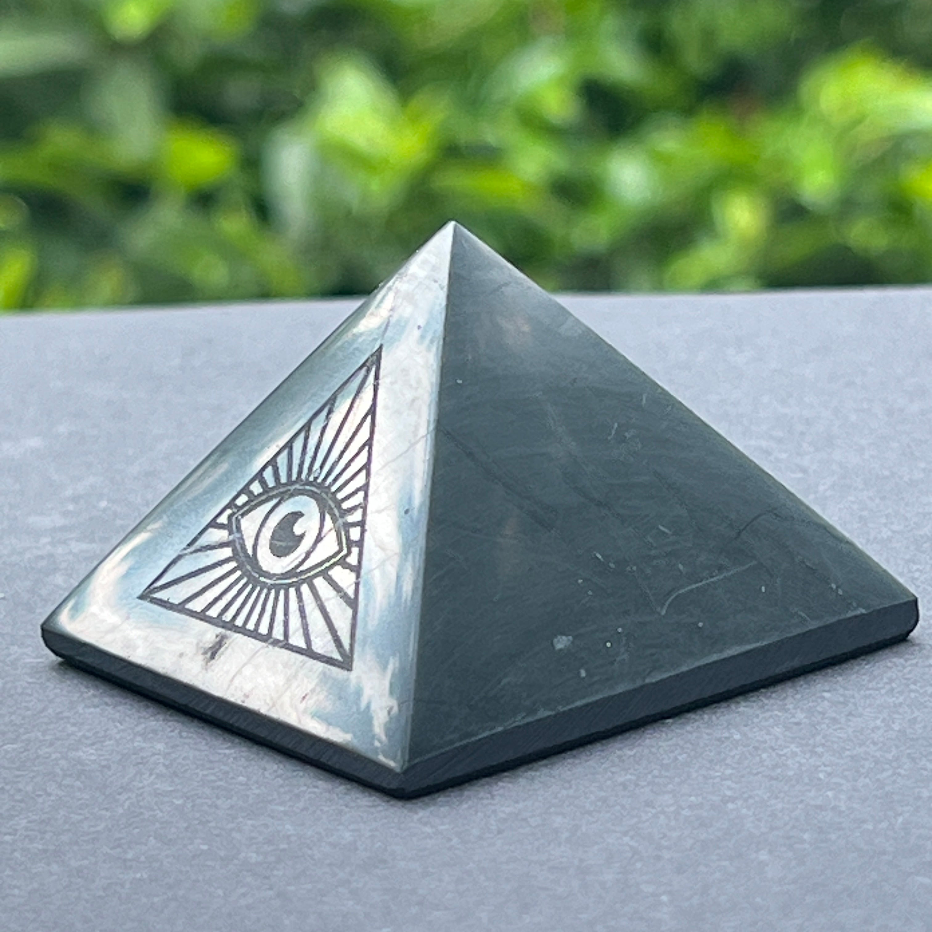Descriere - Pirmanida csiszolt shungit ALL SEEING EYE 5 CM