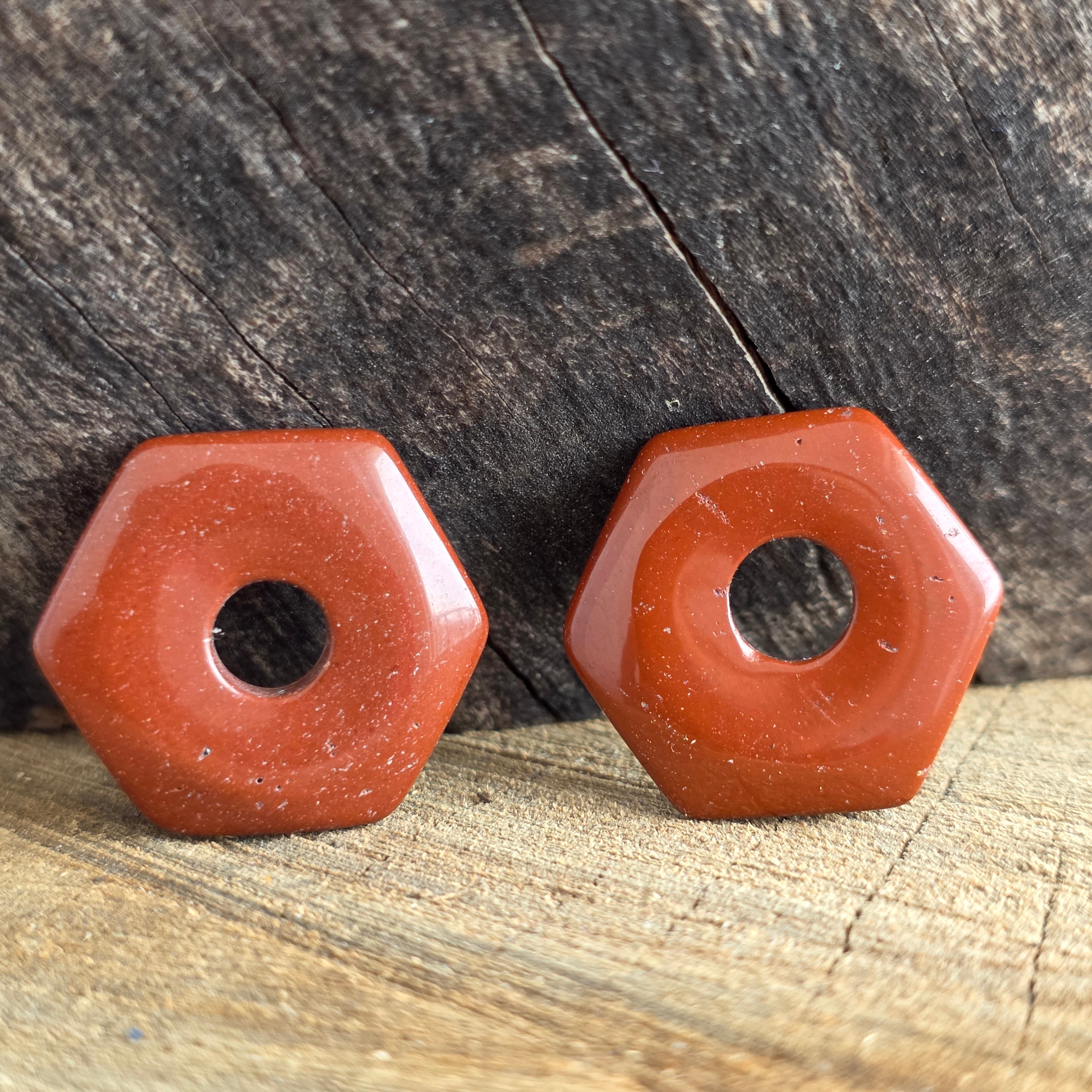 Leírás - Piros jáspis hatszögletű pi fánkkő medál