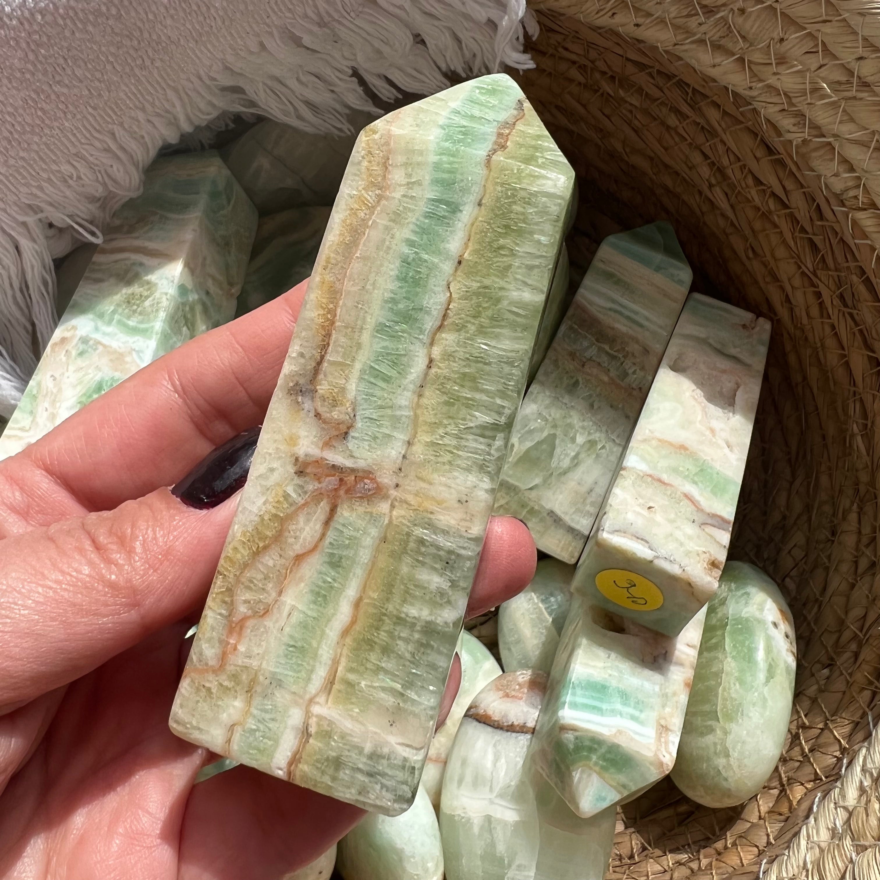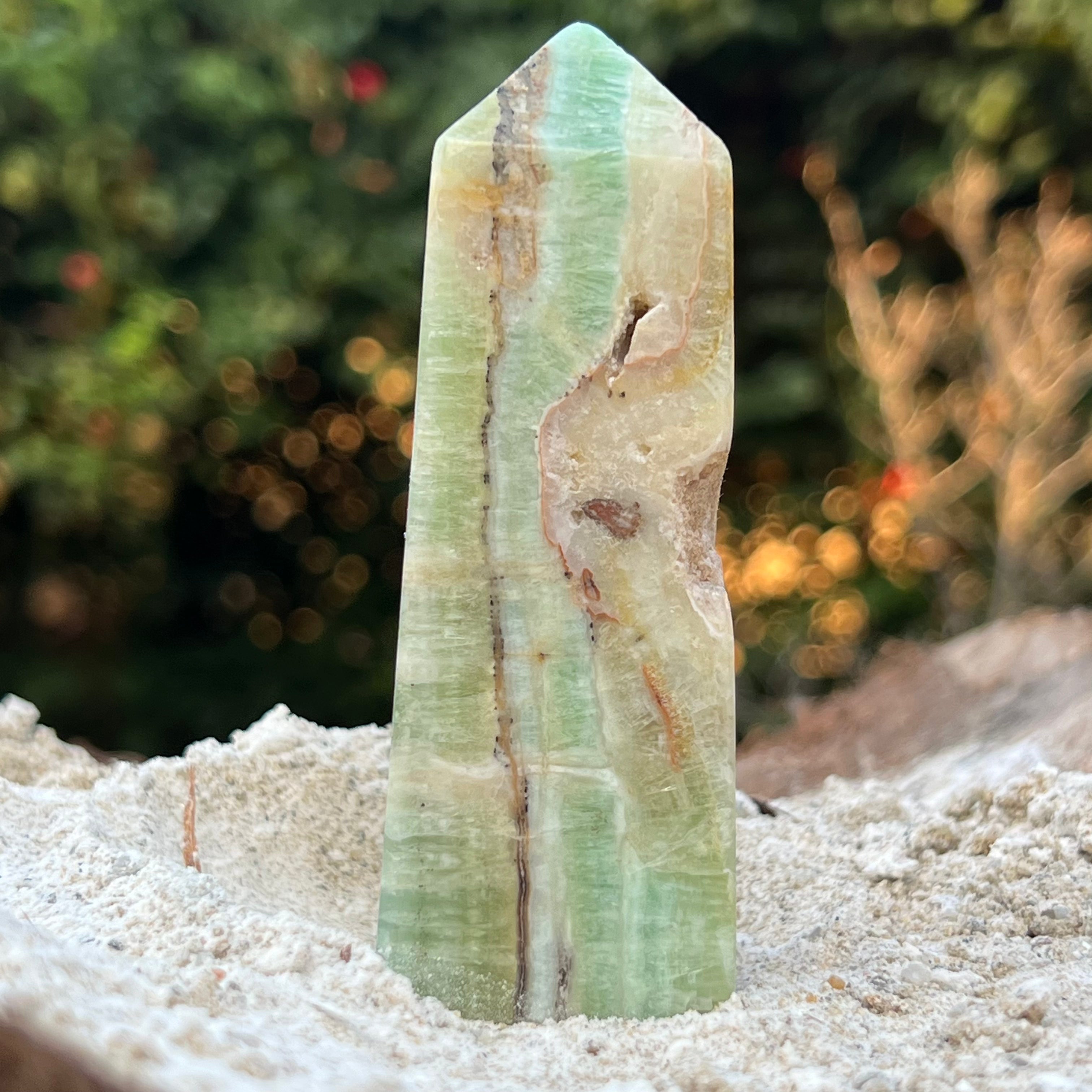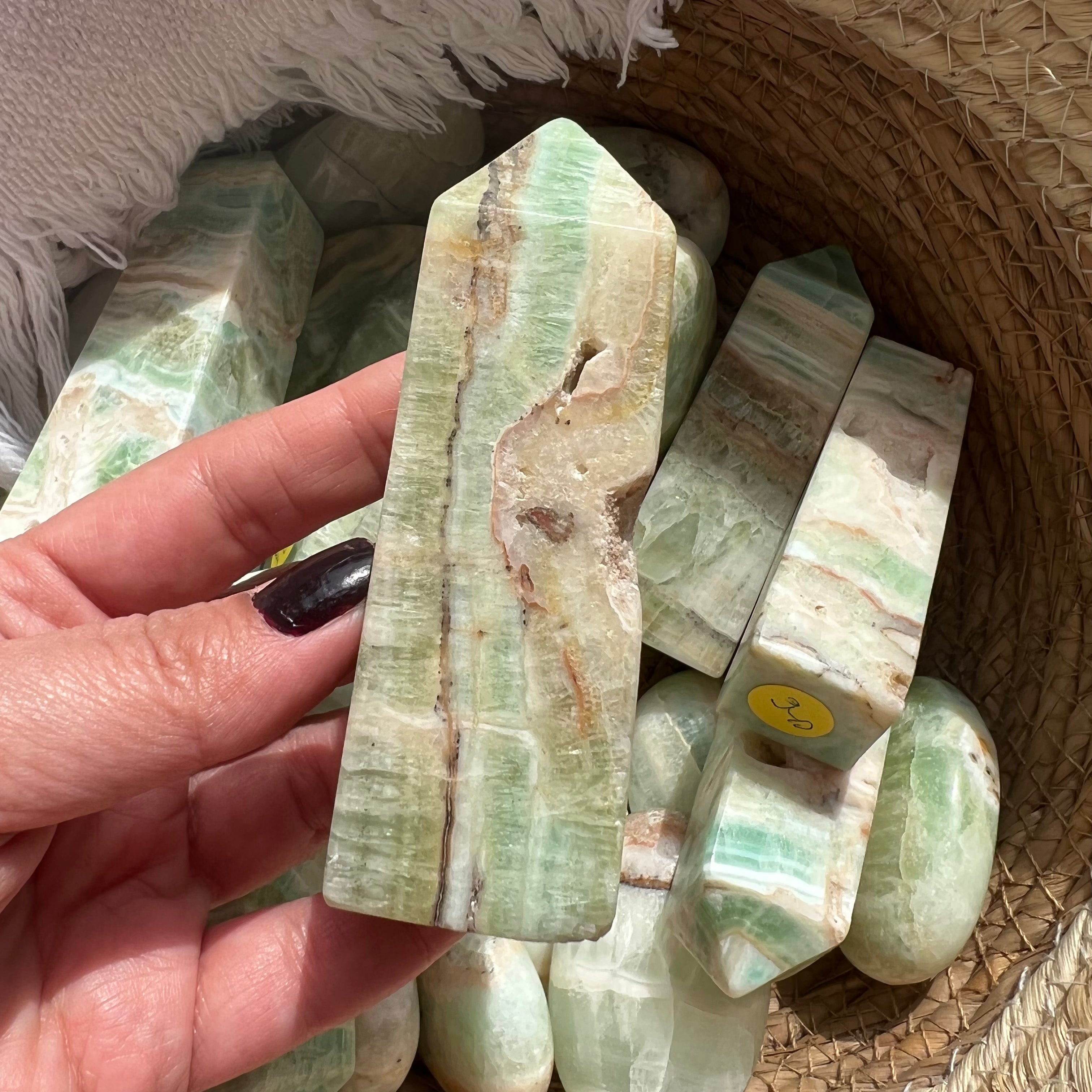 Pisztácia kalcit torony/obeliszk 9-10 cm