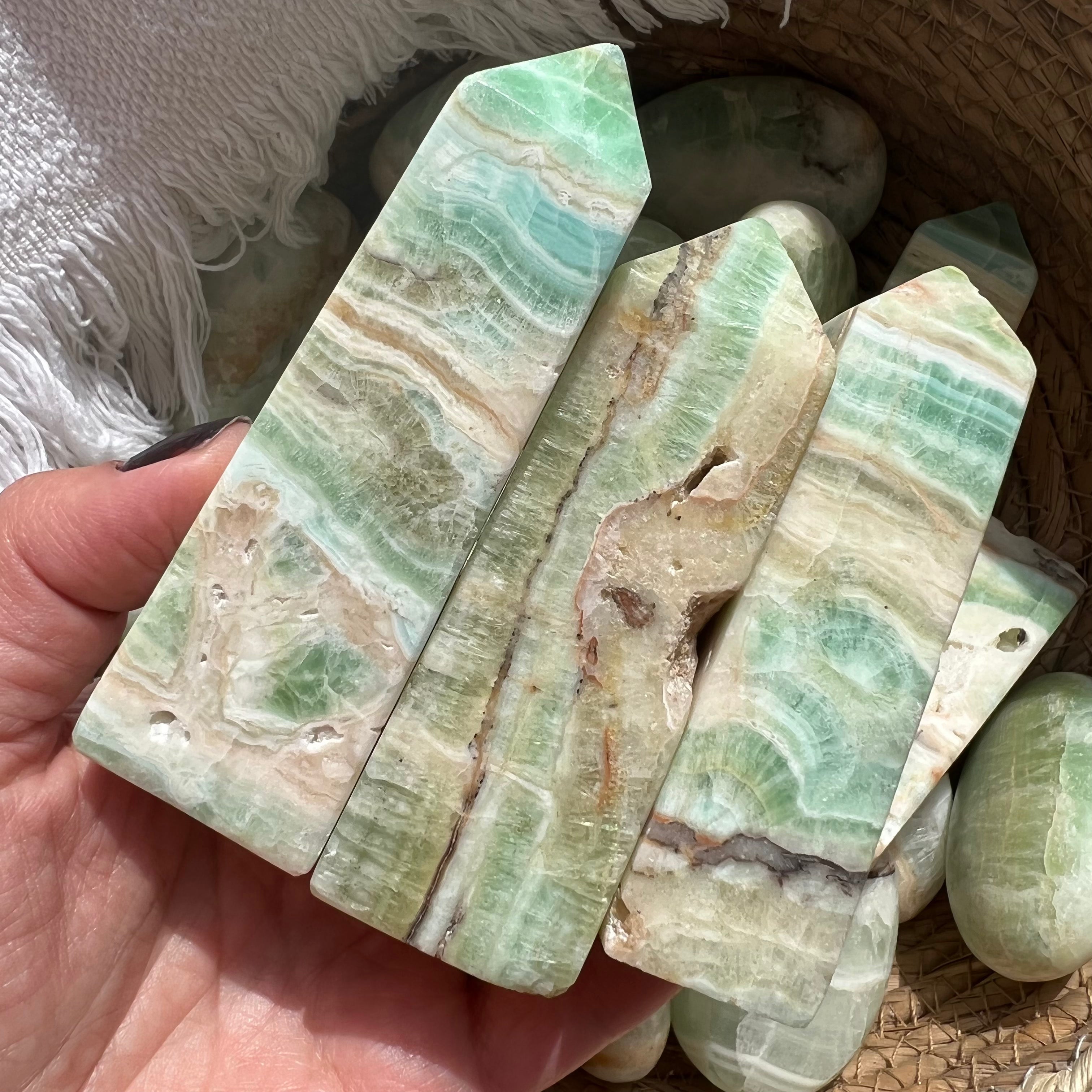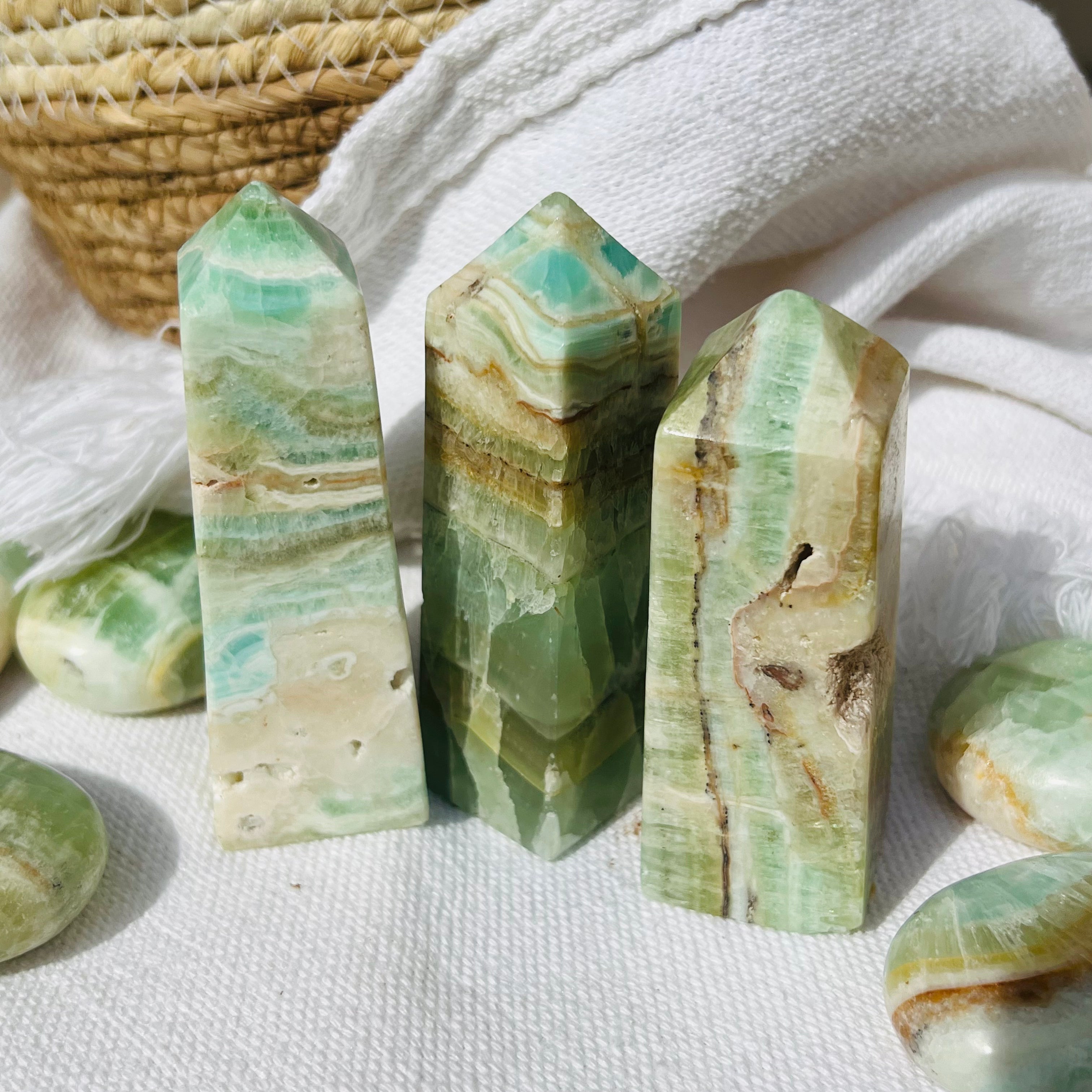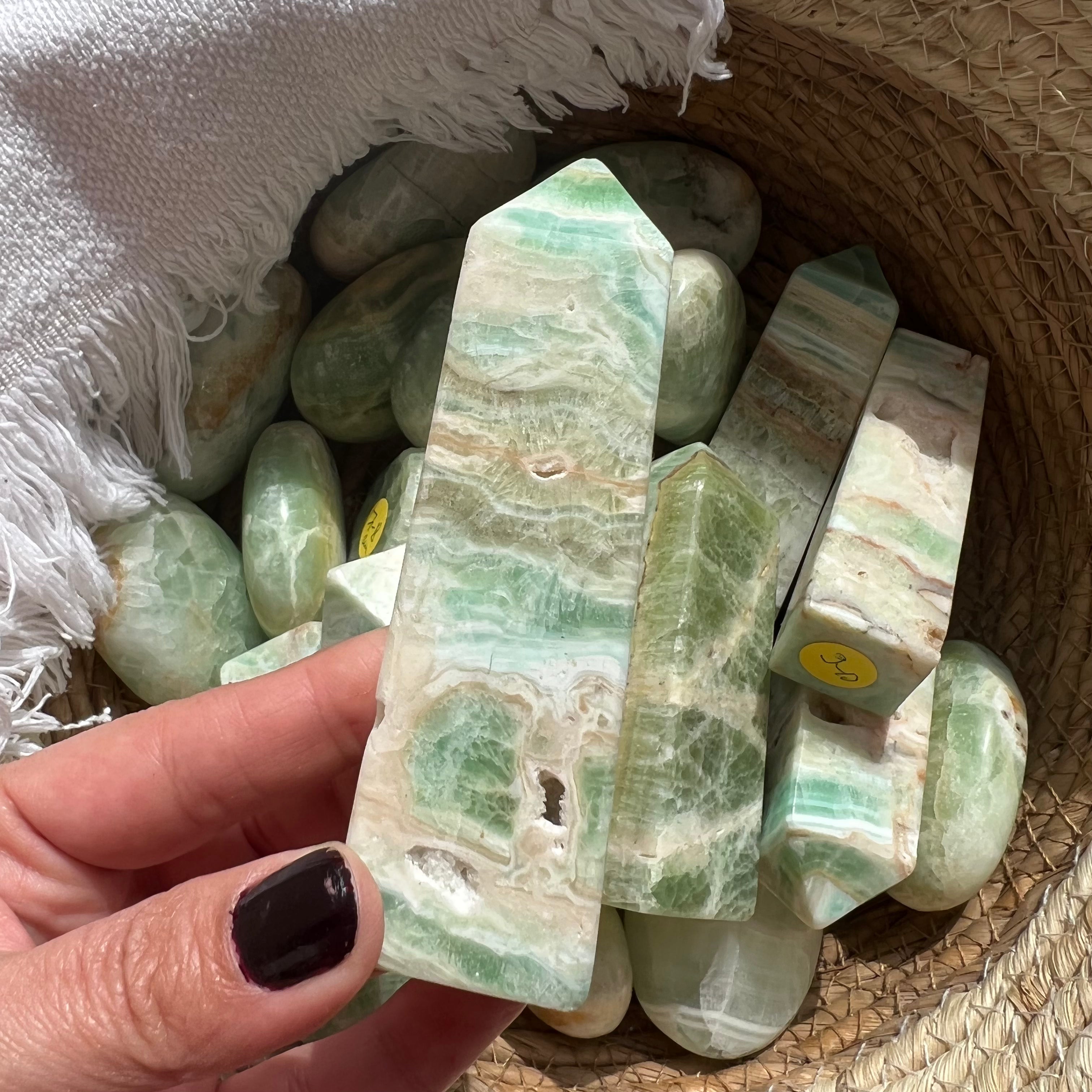 Pisztácia kalcit torony/obeliszk 9-10 cm