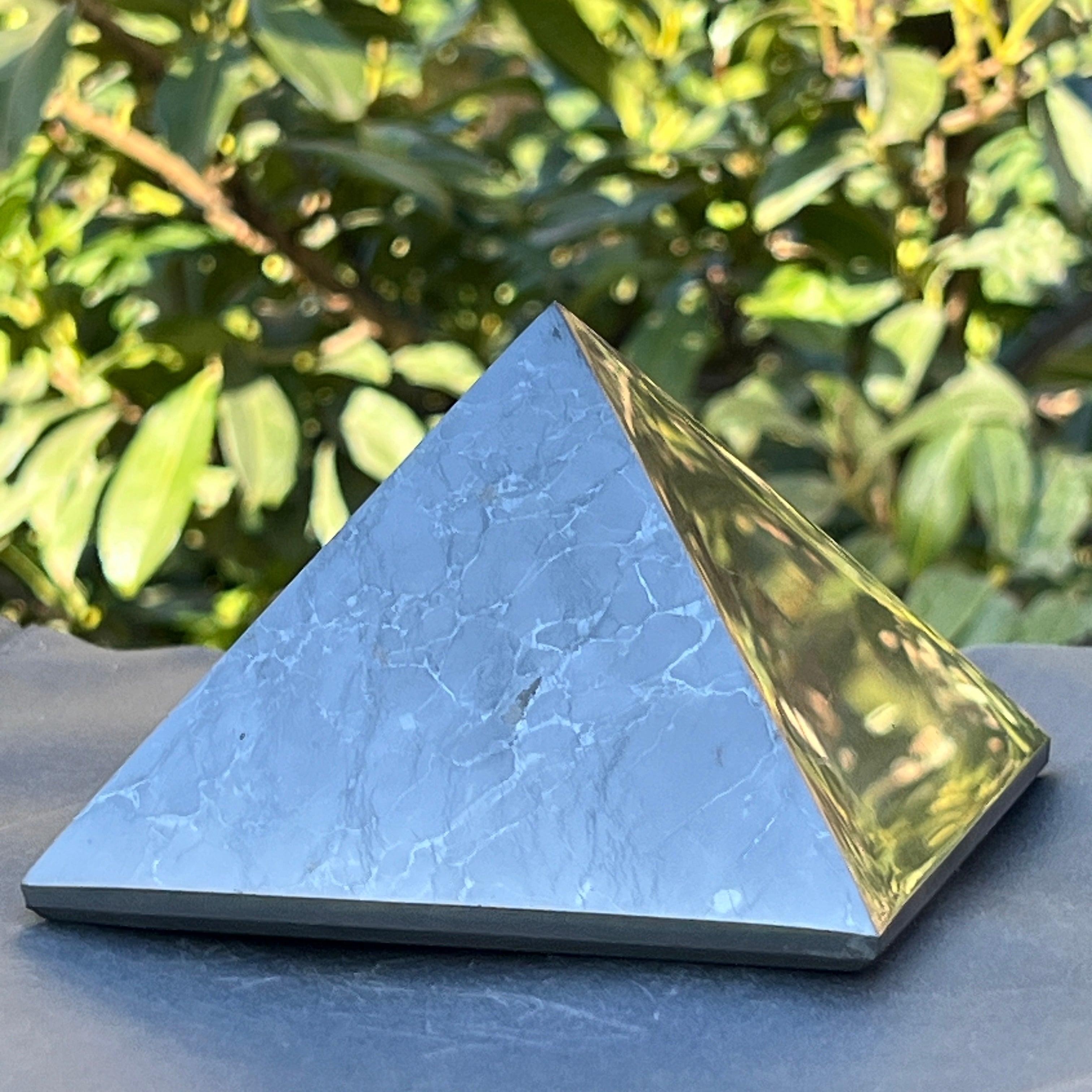 Polírozott 10 cm-es shungit piramis, méret: 10 cm